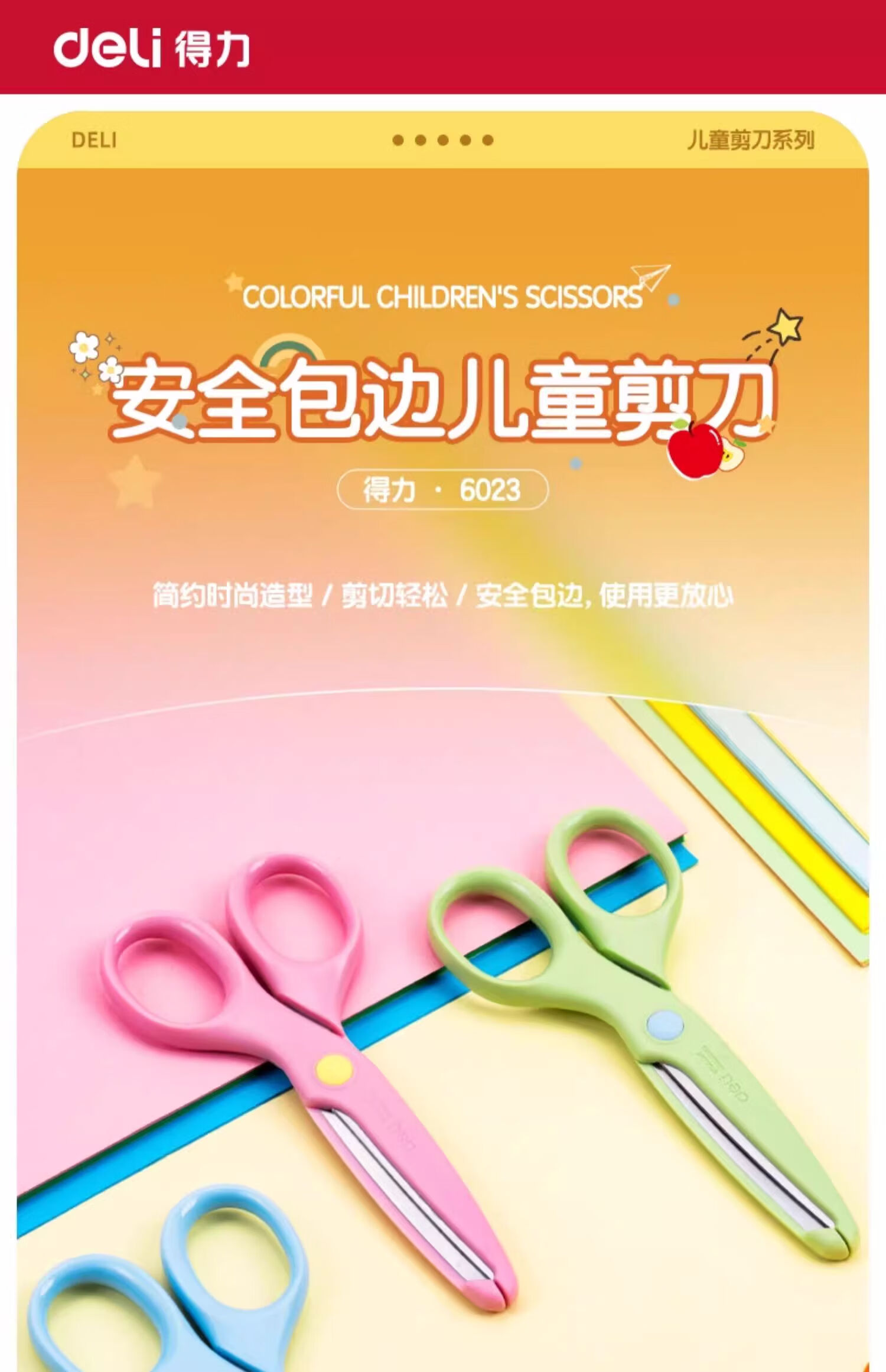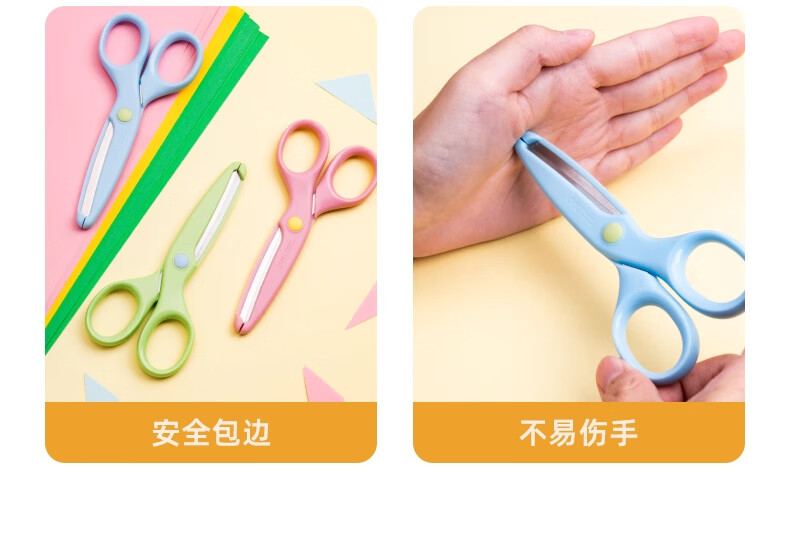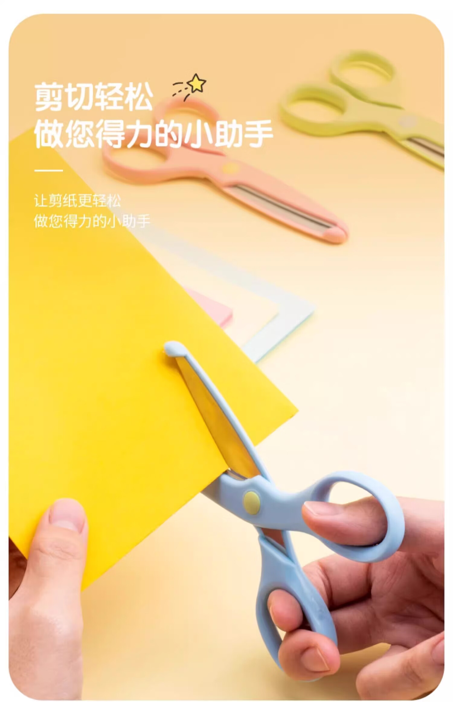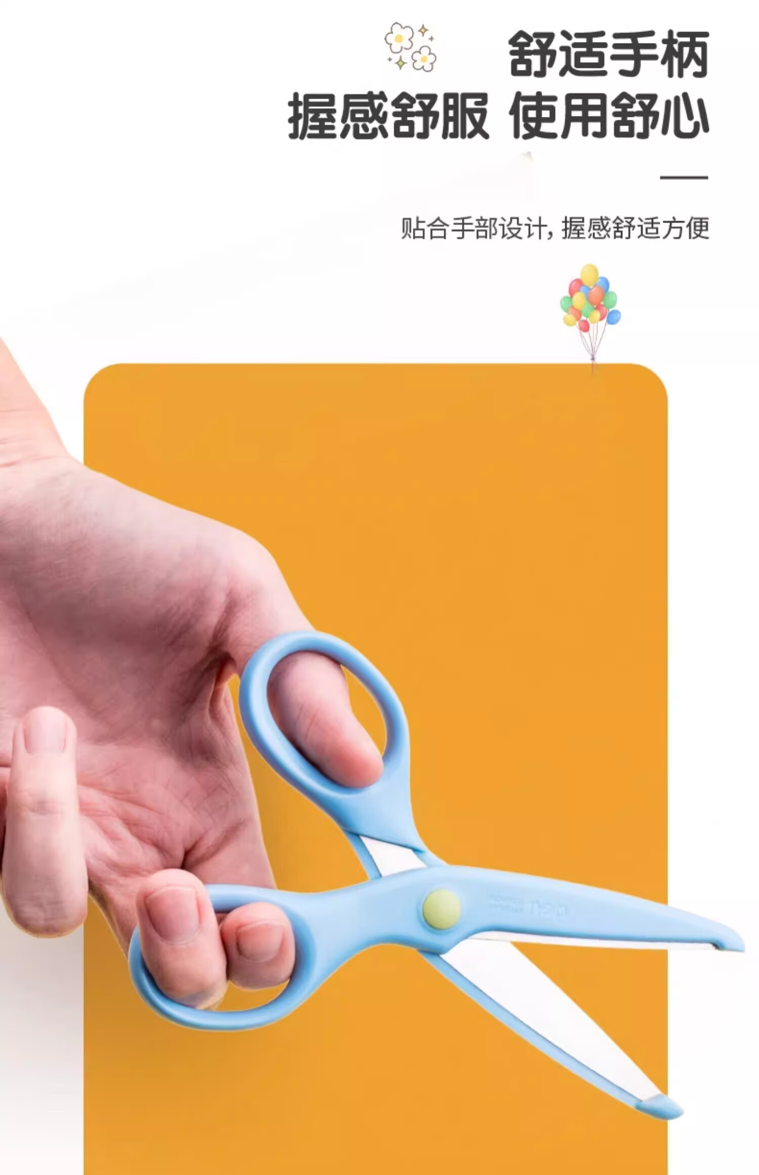 得力儿童剪刀手工安全剪刀小学生diy剪纸折纸剪子美术专用幼儿园手工专用圆头便携式圆头塑料剪子 1把【包边款】云朵粉 无规格