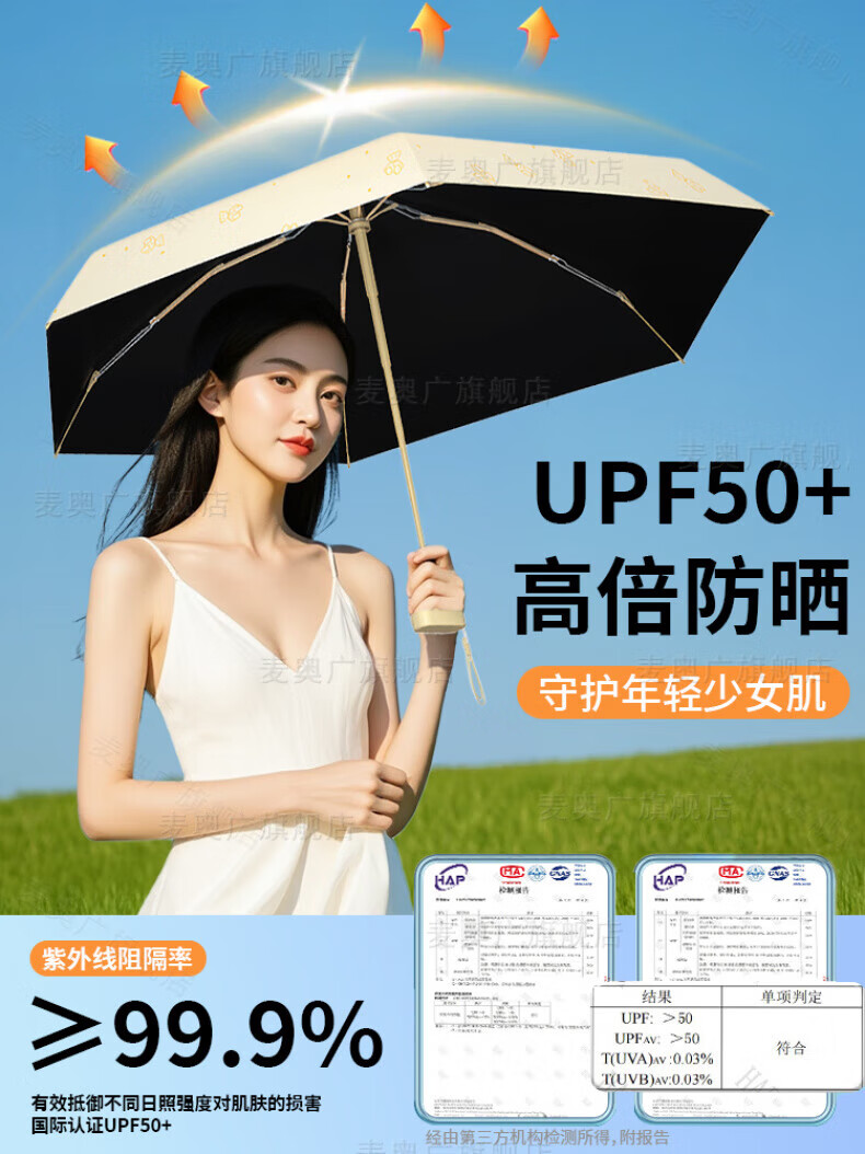 蕉下(beneunder)太阳伞防紫外线夏季遮阳伞晴雨两用伞双层三折防晒伞防晒小黑伞 【经典大花】月雾