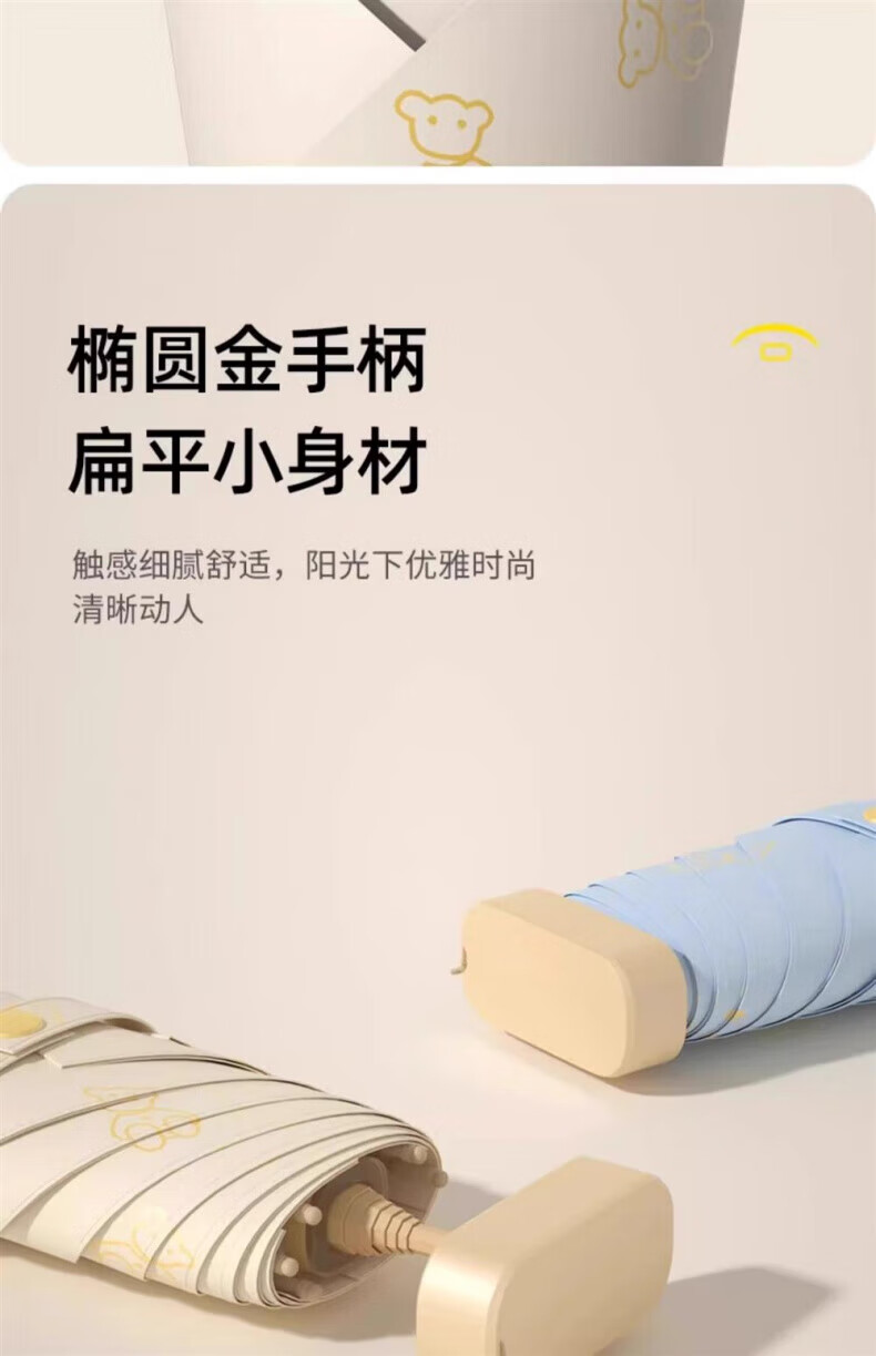 AILUKI日本七折防晒伞防紫外线女黑胶双层小巧遮阳晴雨两用超轻便携口袋 七折烫金小熊【黑色】防晒加倍