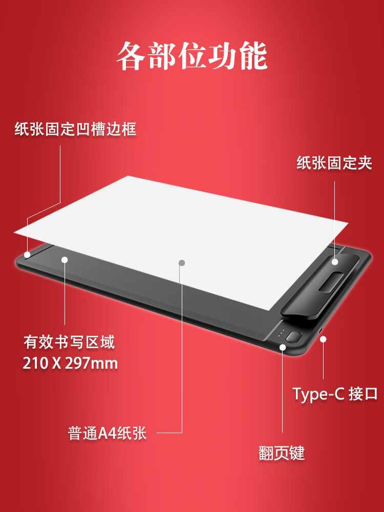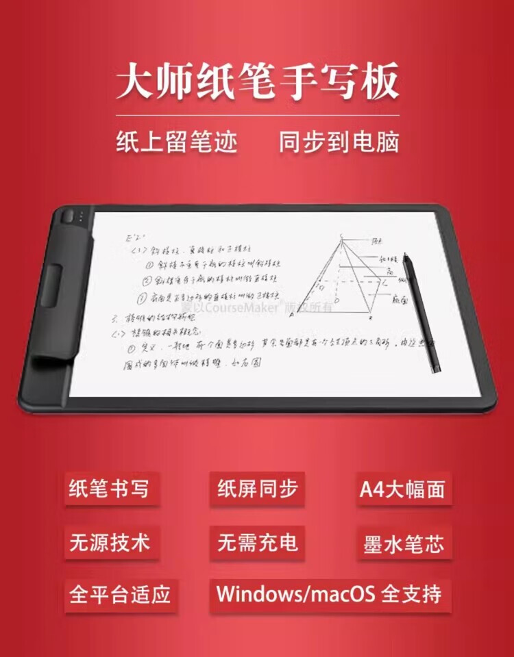 蒙以大师纸笔手写板数位板A4幅面无源电磁技术网上教学录微课录题录PPT网课直播电脑专用 大师纸笔手写板 35x24cm(A4幅面)