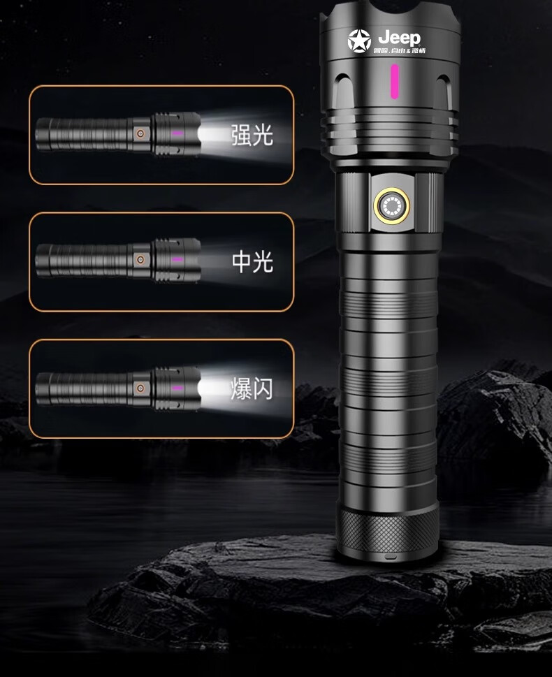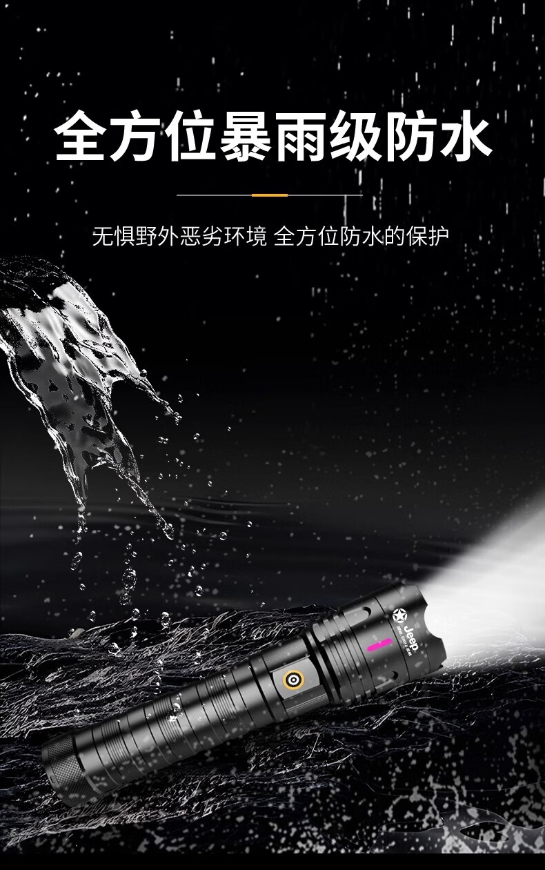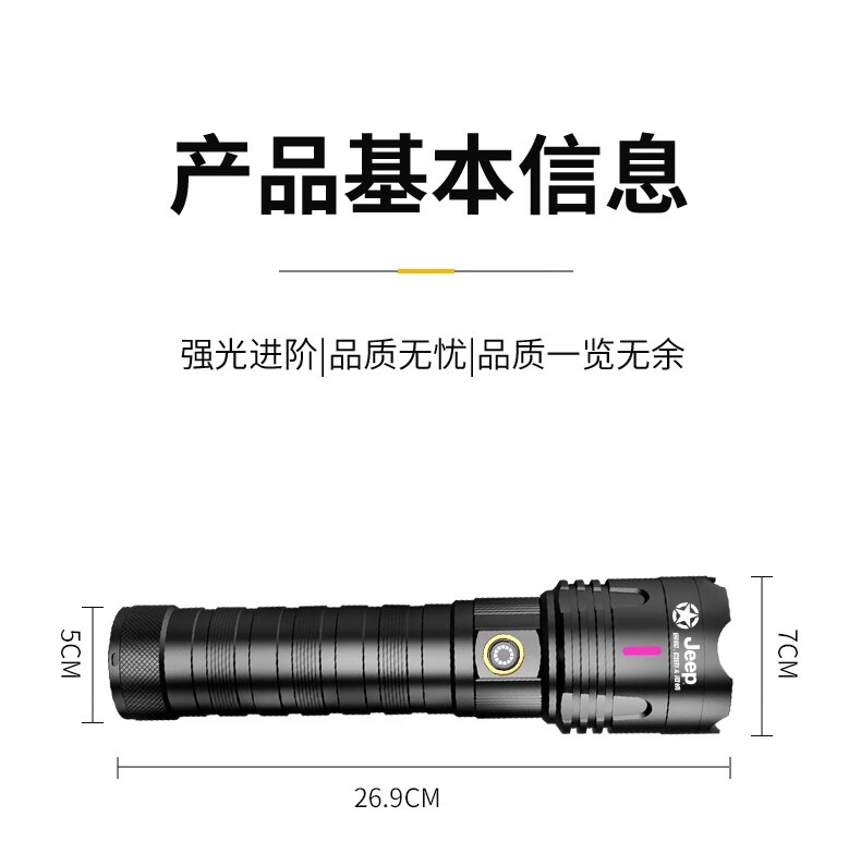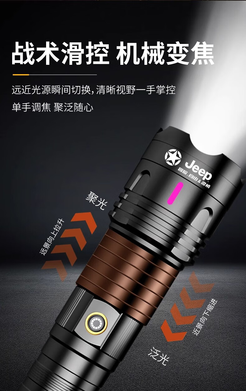 吉普手电筒强光充电小型便携强光超亮手电筒超长续航大容量吉普手电筒 【铝合金款】续航6小时+伸缩变焦
