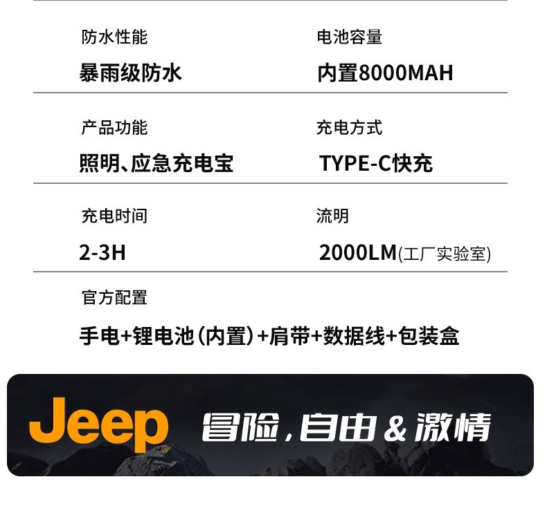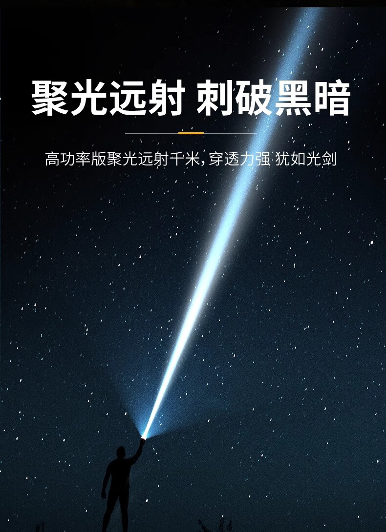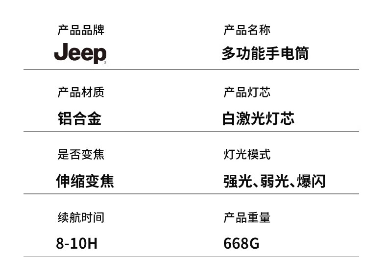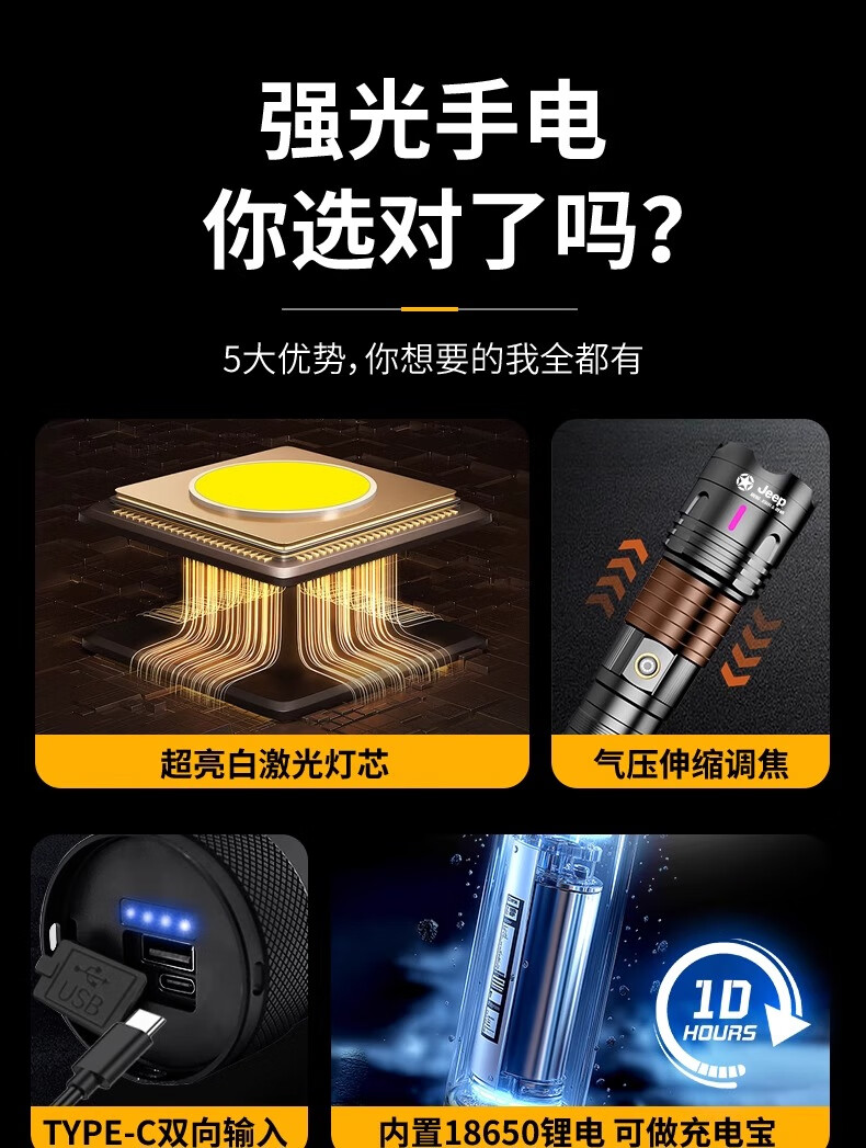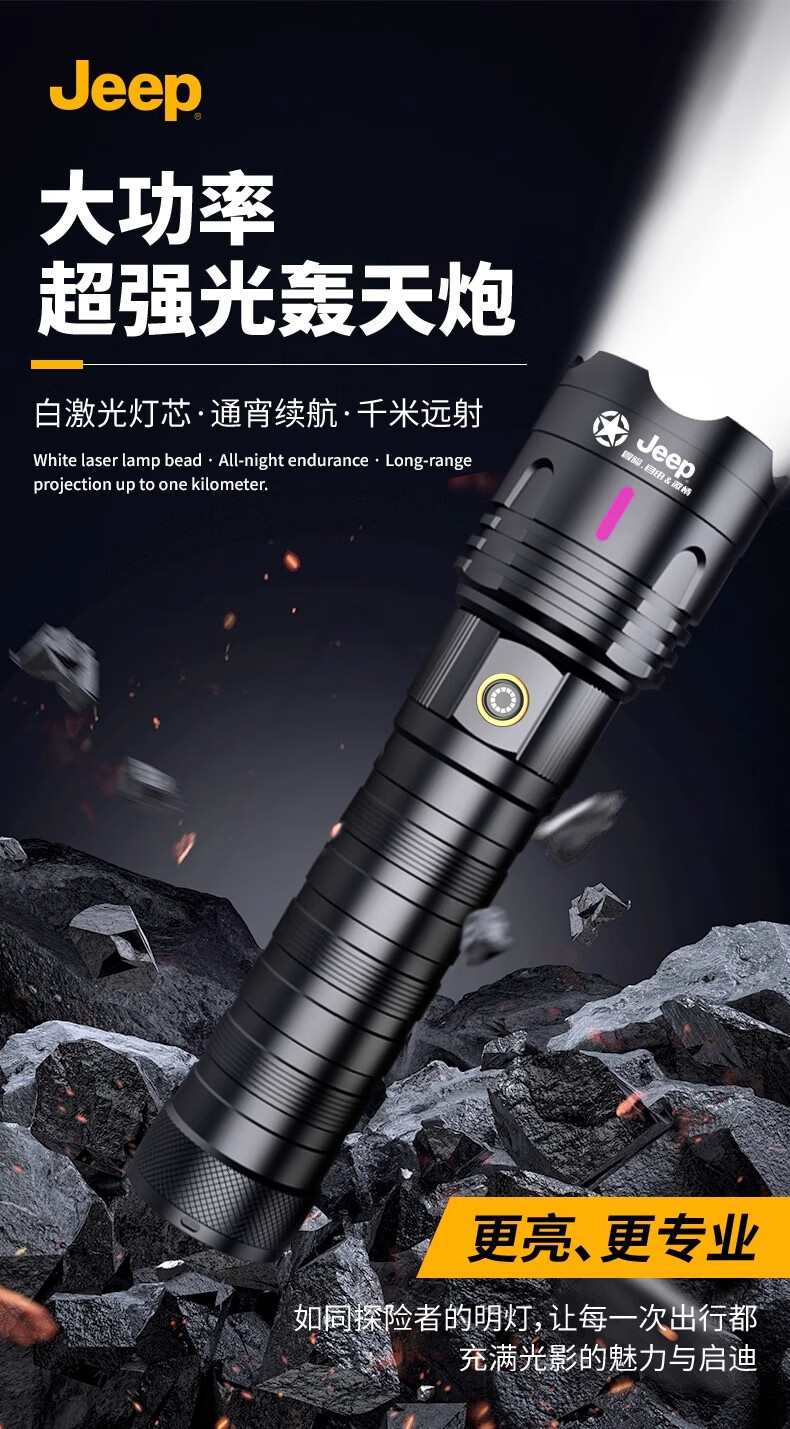 吉普手电筒强光充电小型便携强光超亮手电筒超长续航大容量吉普手电筒 【铝合金款】续航6小时+伸缩变焦