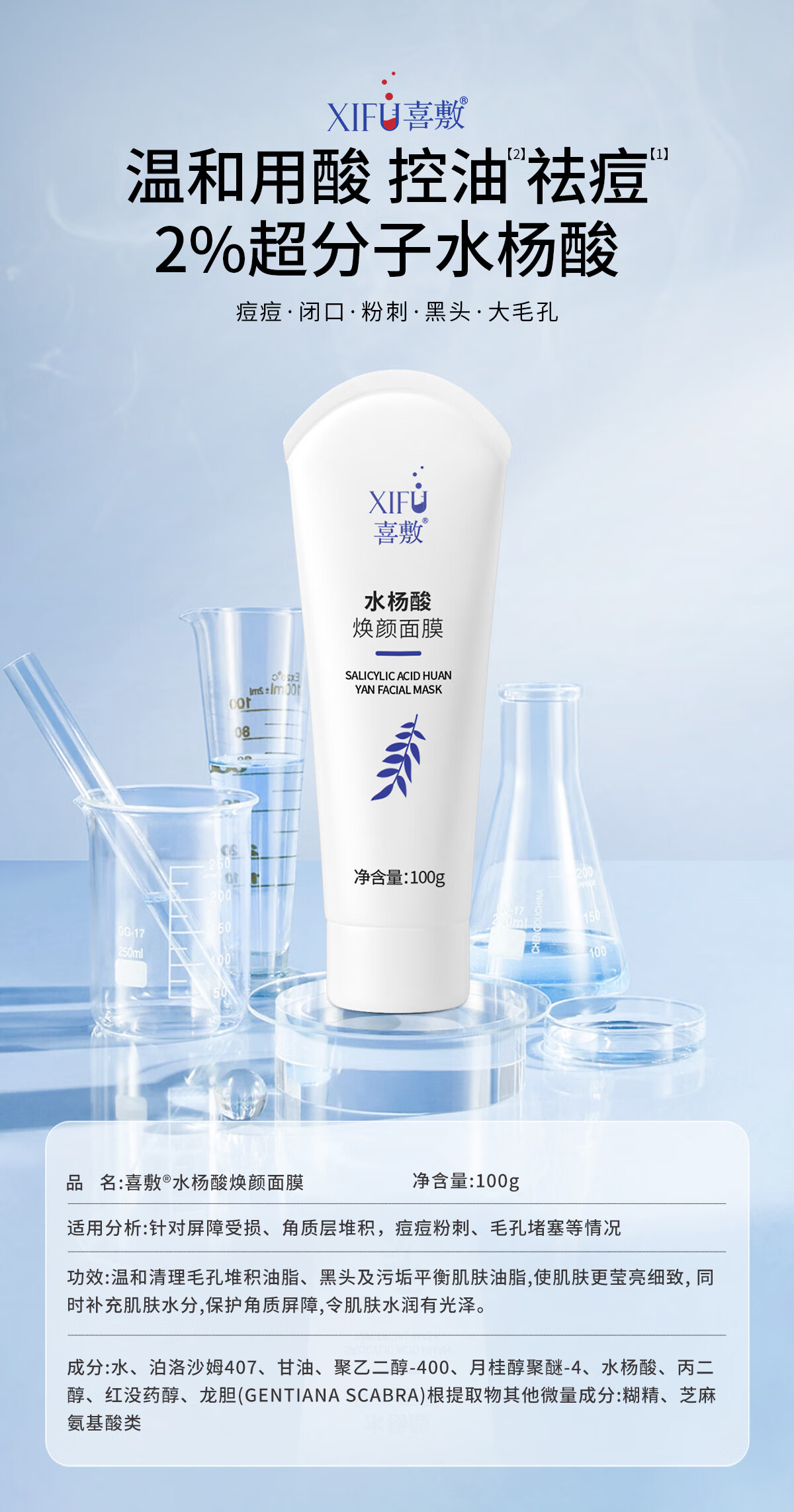 喜敷水杨酸焕颜面膜祛痘痘闭口粉刺祛黑头疏通收缩毛孔控油涂抹面膜 水杨酸面膜100g【赠旅行装2支】