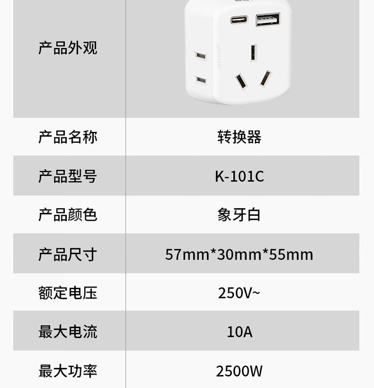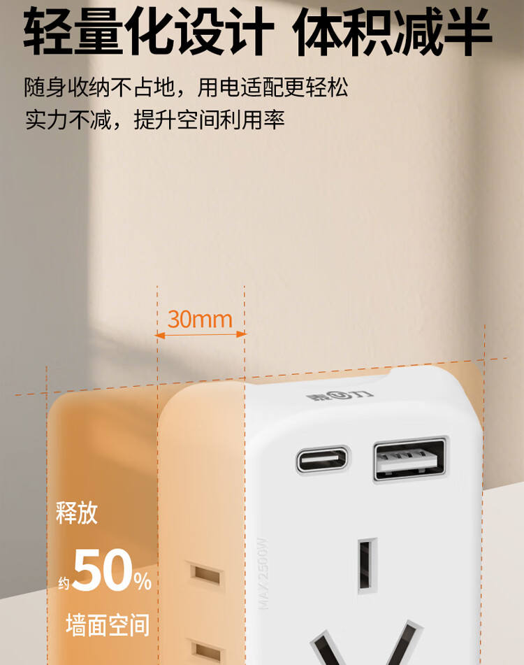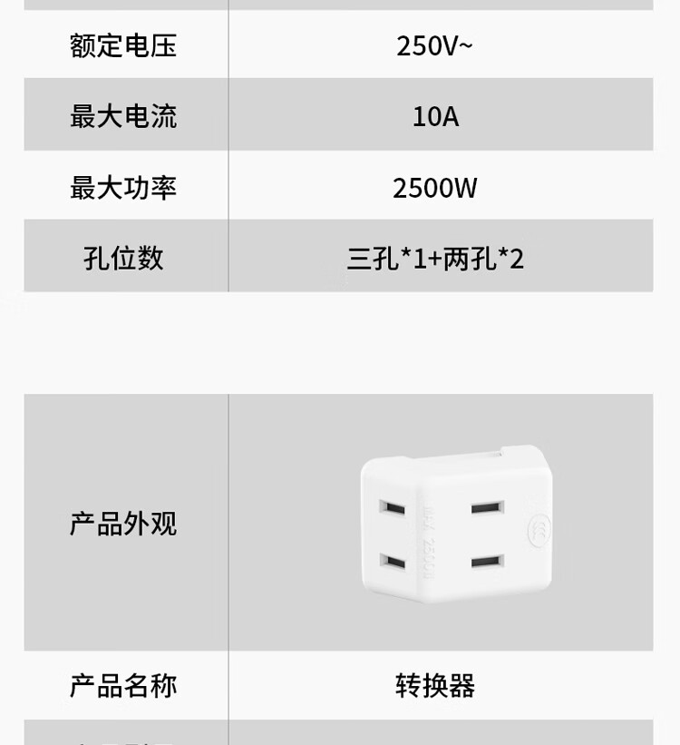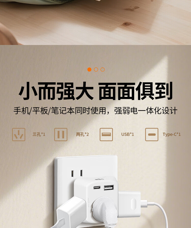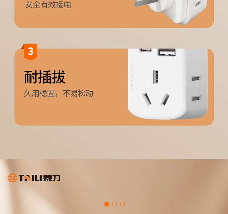 泰力插座转换器 无线扩展转换插头宿舍用 迷你一转三插座 usb插头多口扩展器 1转5转换器