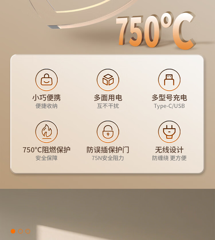 达聚科柔性插座转换器无线插排小夜灯多孔家用USB充电多功能一转多电源接线板USB充电安全门适用于卧室 柔性品字形一转六【插位款】