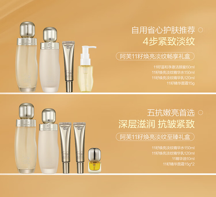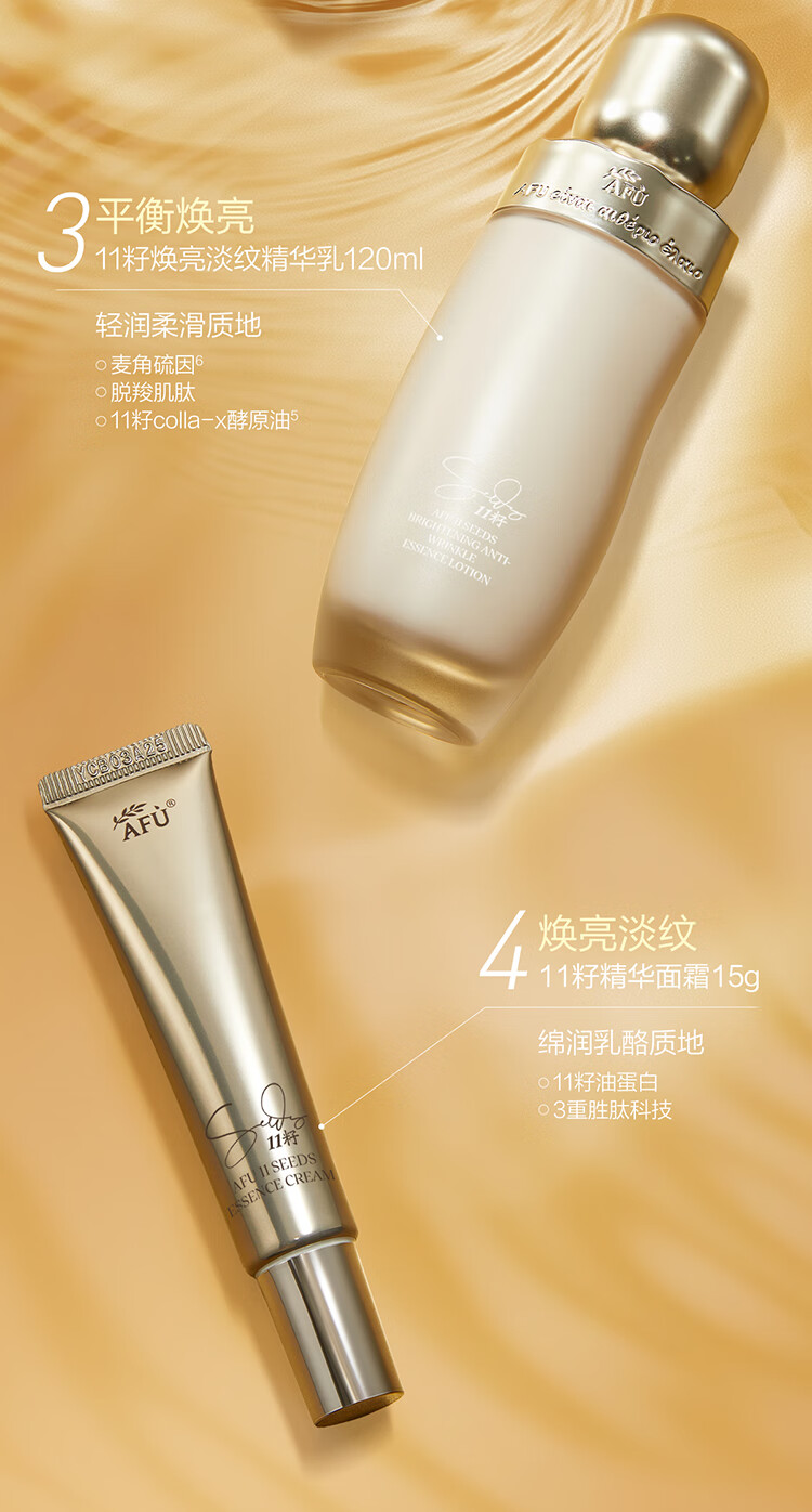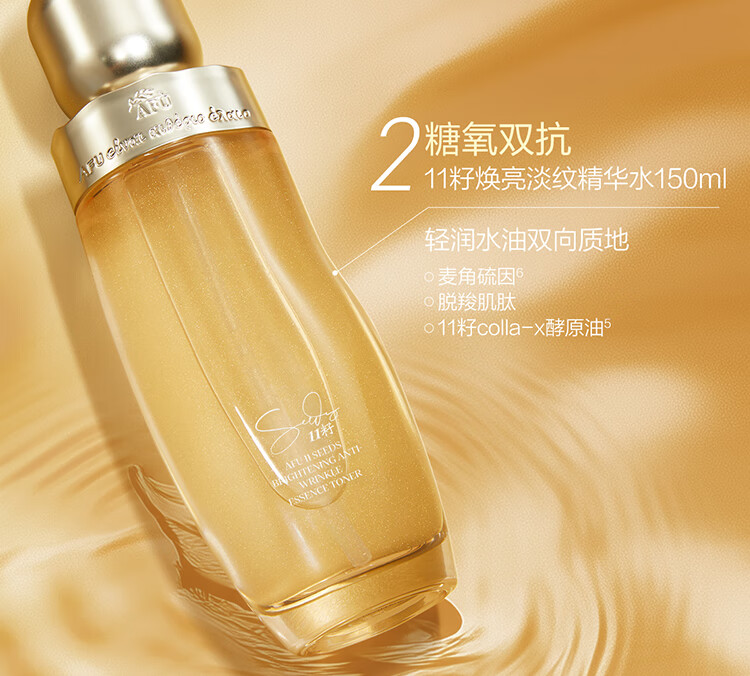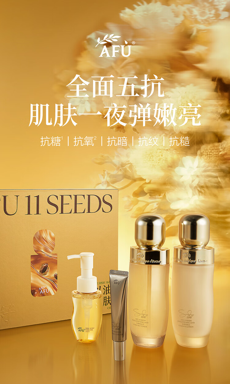 阿芙(AFU)11籽精华水乳面部护肤套装抗糖抗氧焕亮淡纹保湿圣诞节送礼物 超抗至臻礼盒(水150ml+乳120g+精华油10ml+霜15g*2)