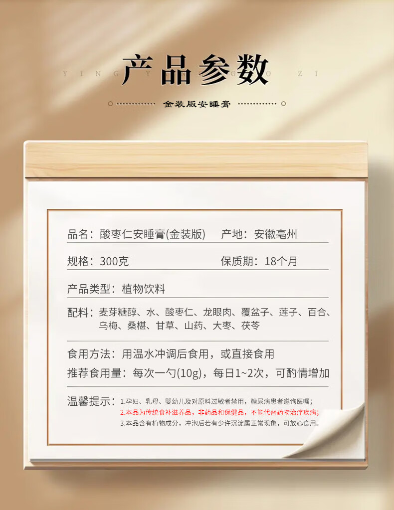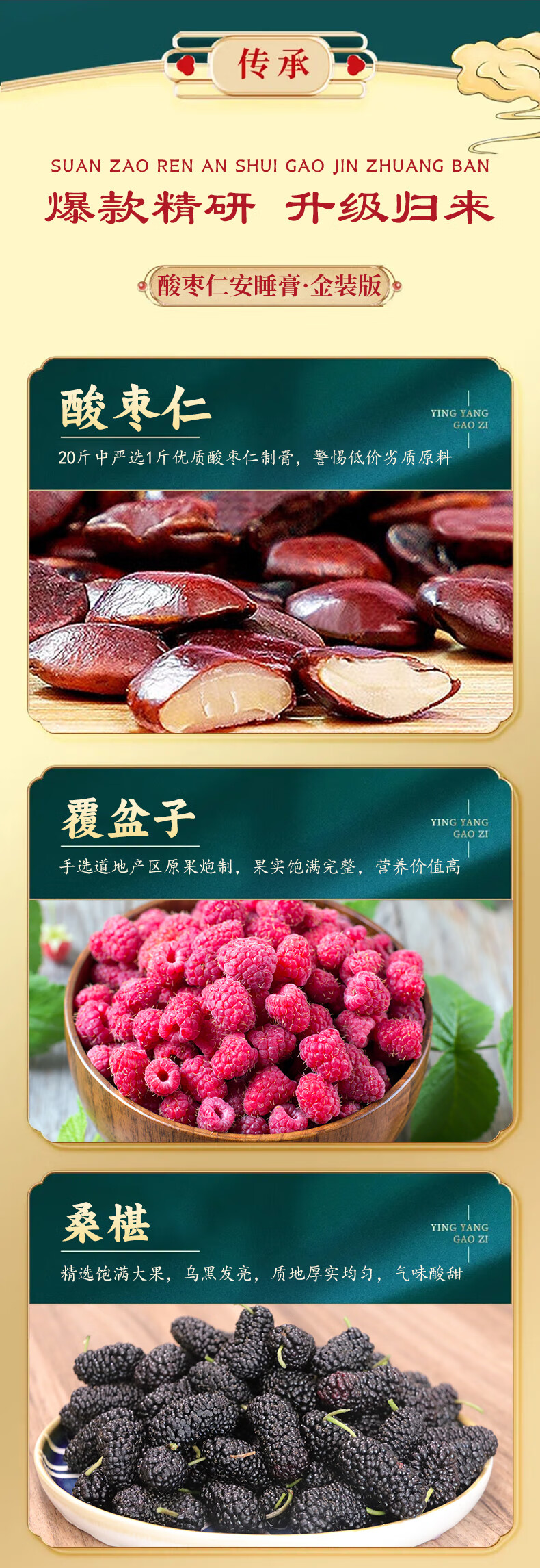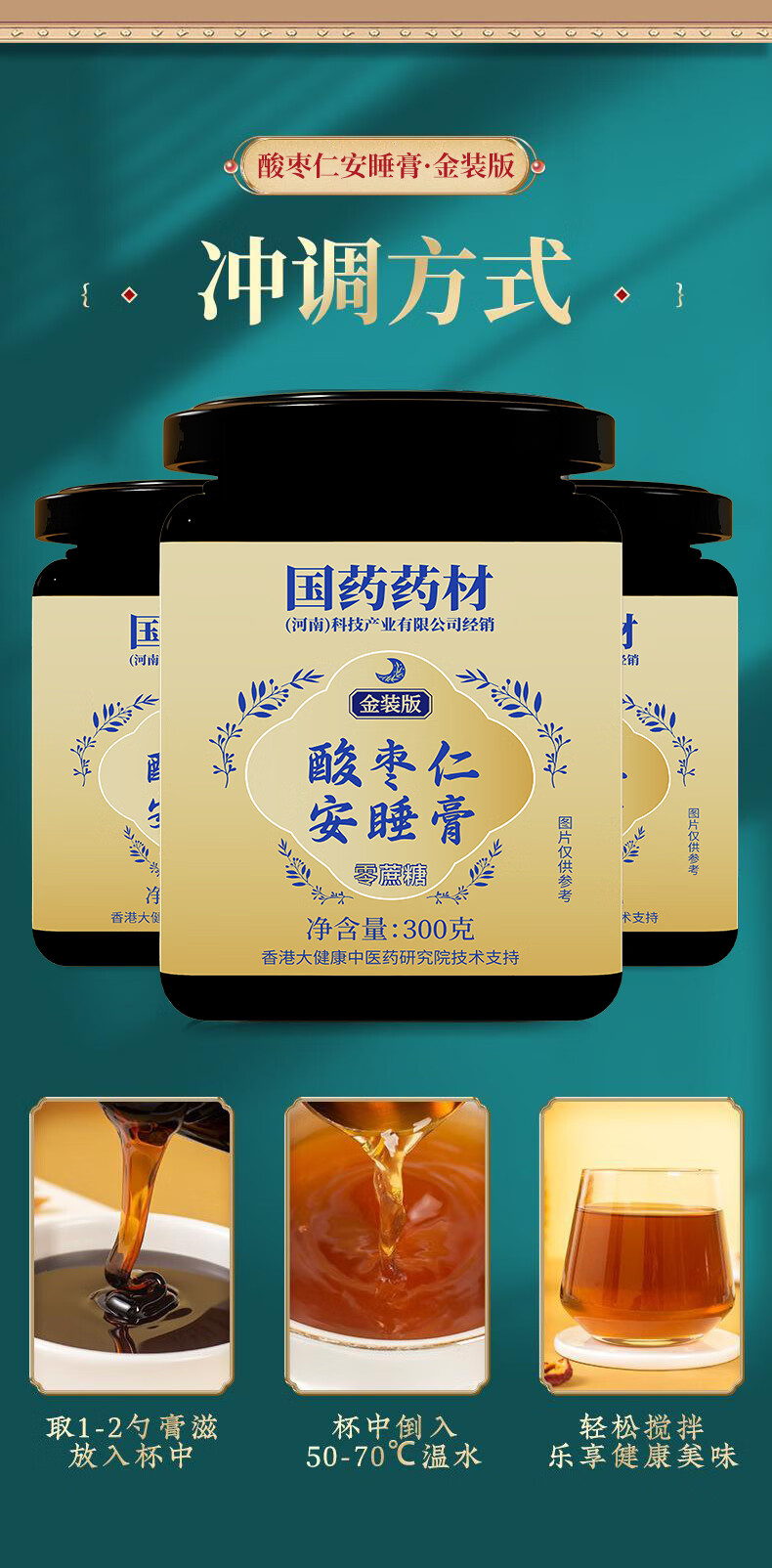 禾博尔药材药材酸枣仁安睡膏金装升级版无蔗糖茯苓百合莲子桑葚药食同源 【金装版】10瓶*300g【升级囤货装】