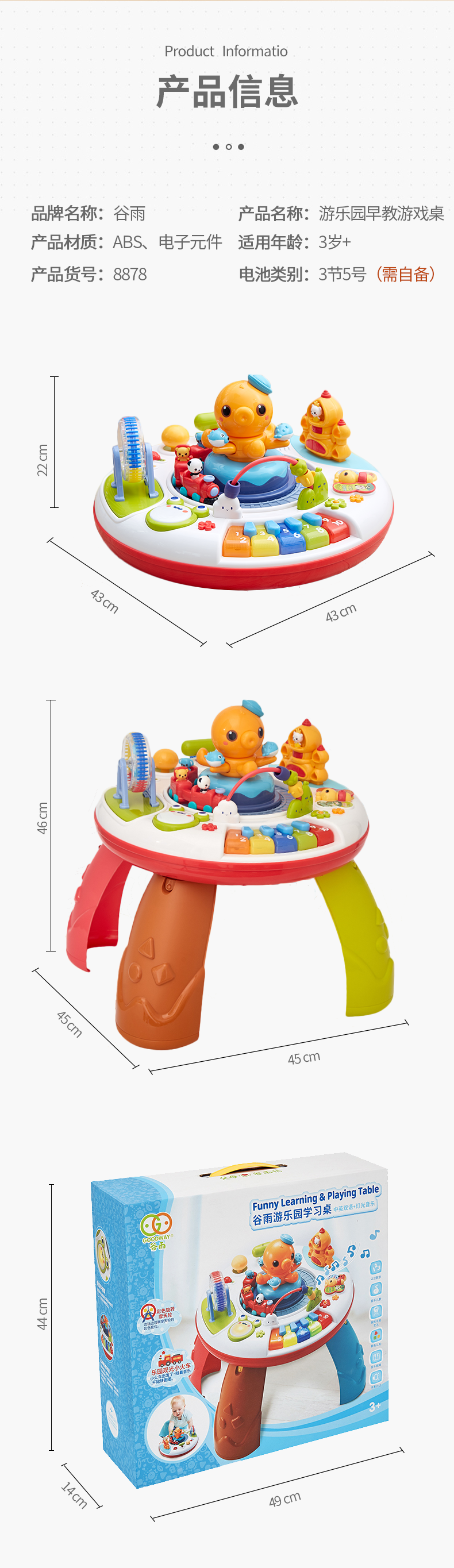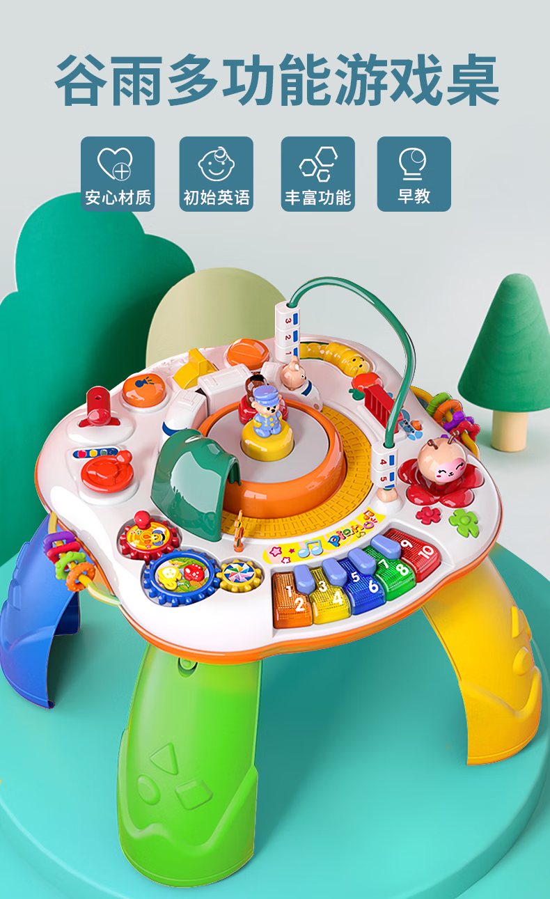 谷雨多功能游戏桌早教学习桌儿童玩具婴儿宝宝六一儿童节礼物 谷雨游戏桌-配充电套装
