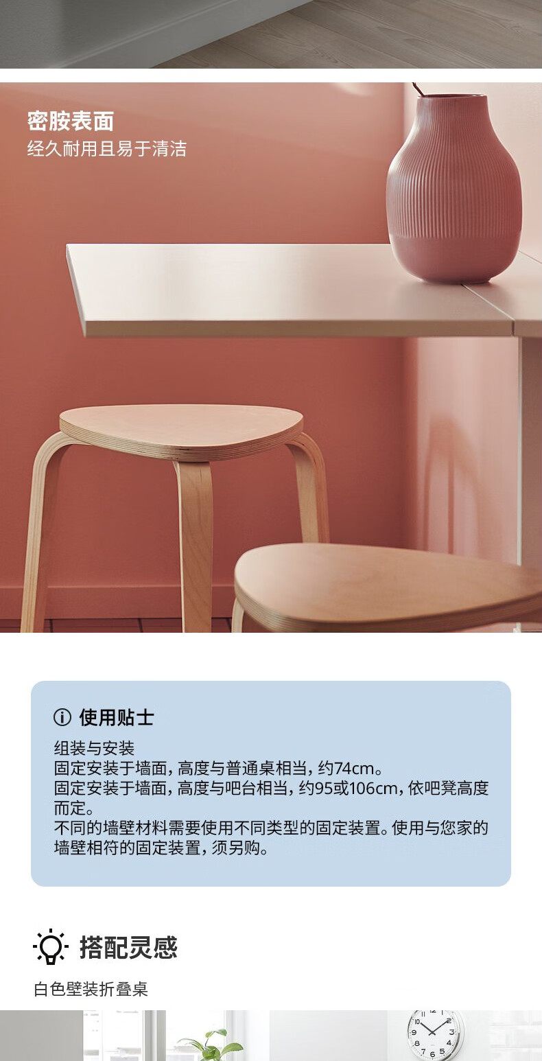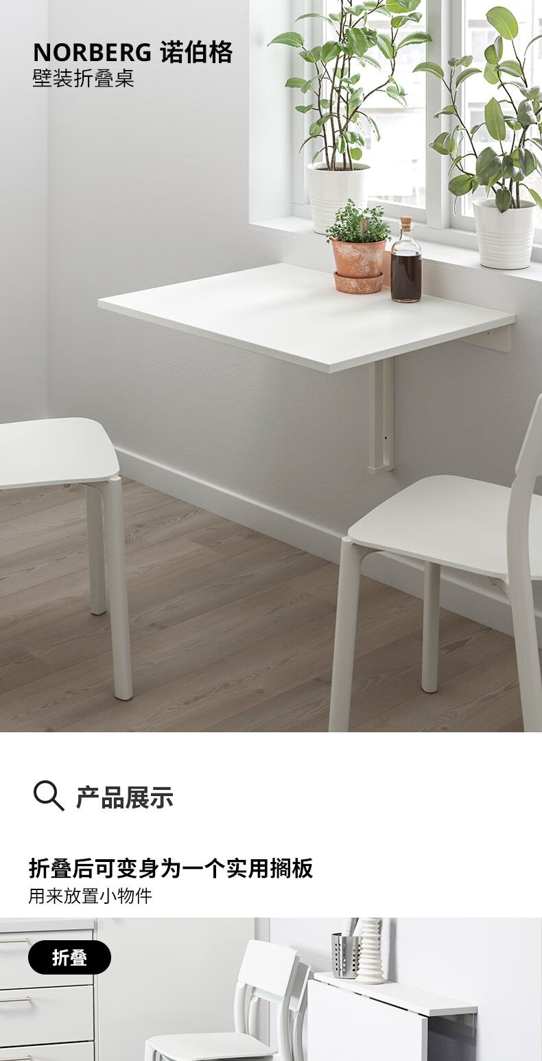 宜家(IKEA)NORBERG诺伯格壁装折叠桌子长方形吃饭家用小餐桌现代 白色壁装折叠桌