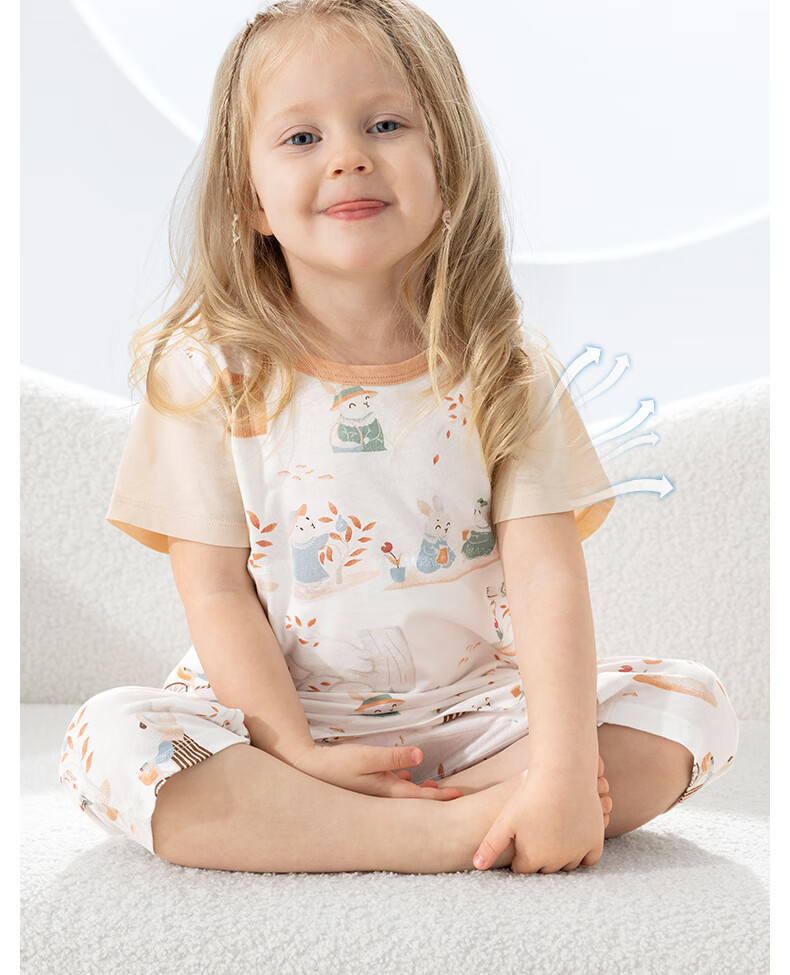 贝肽斯儿童睡衣夏季薄款纯棉2025新款男女儿童家居服连体衣服套装