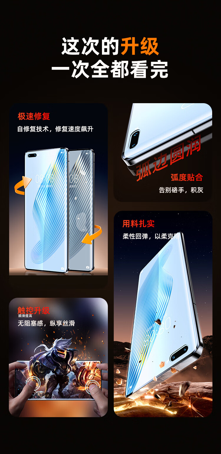 毕亚兹【极速修复2片】适用荣耀Magic5Pro/至臻版水凝软膜 magic4pro手机贴膜 高清非钢化防刮指纹 JM130