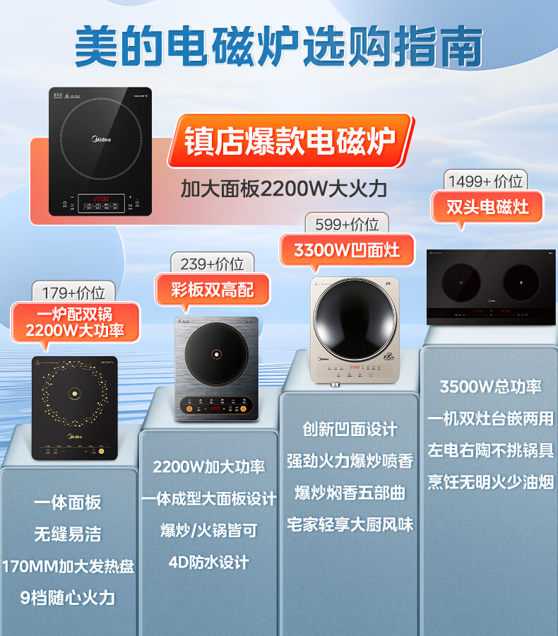 美的(Midea)电磁炉带锅套装可选单锅/双锅大火力家用大功率电磁灶电火锅一体可选可煮小米粥 【分体面板】2200W加大功率