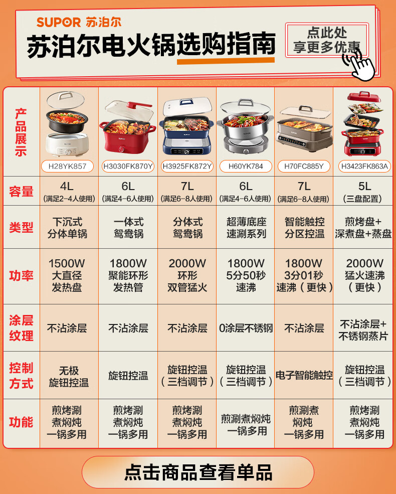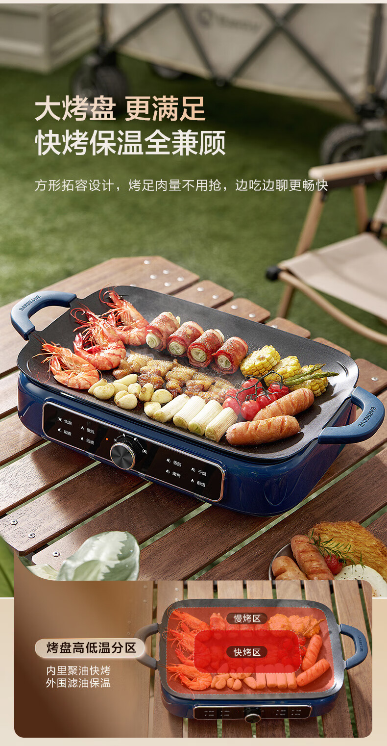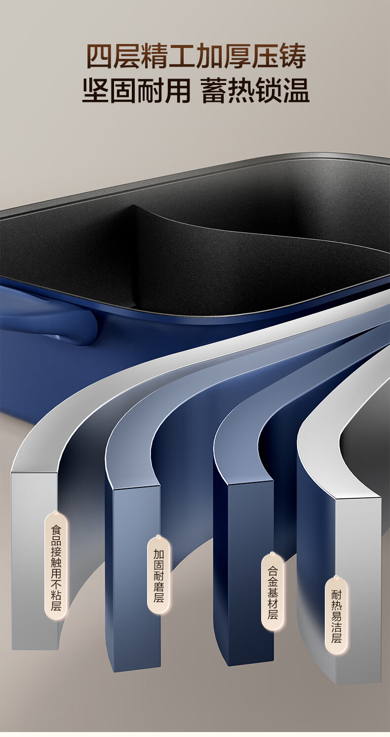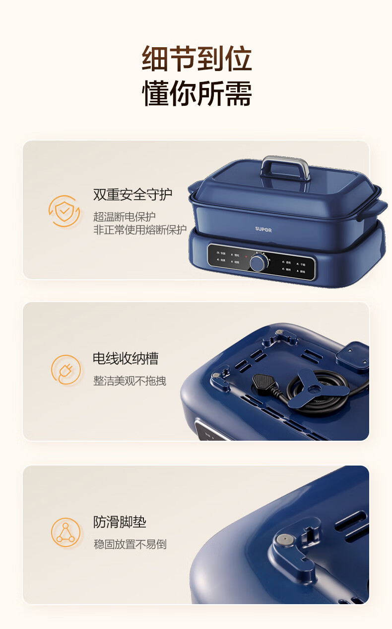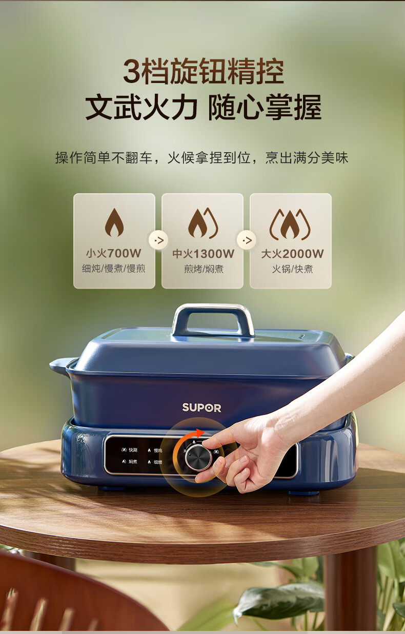 苏泊尔(SUPOR)鸳鸯电火锅 多功能电烤盘烤肉锅 火锅专用锅 分体家用涮肉电煮锅 7L多用途H3925FK872AY