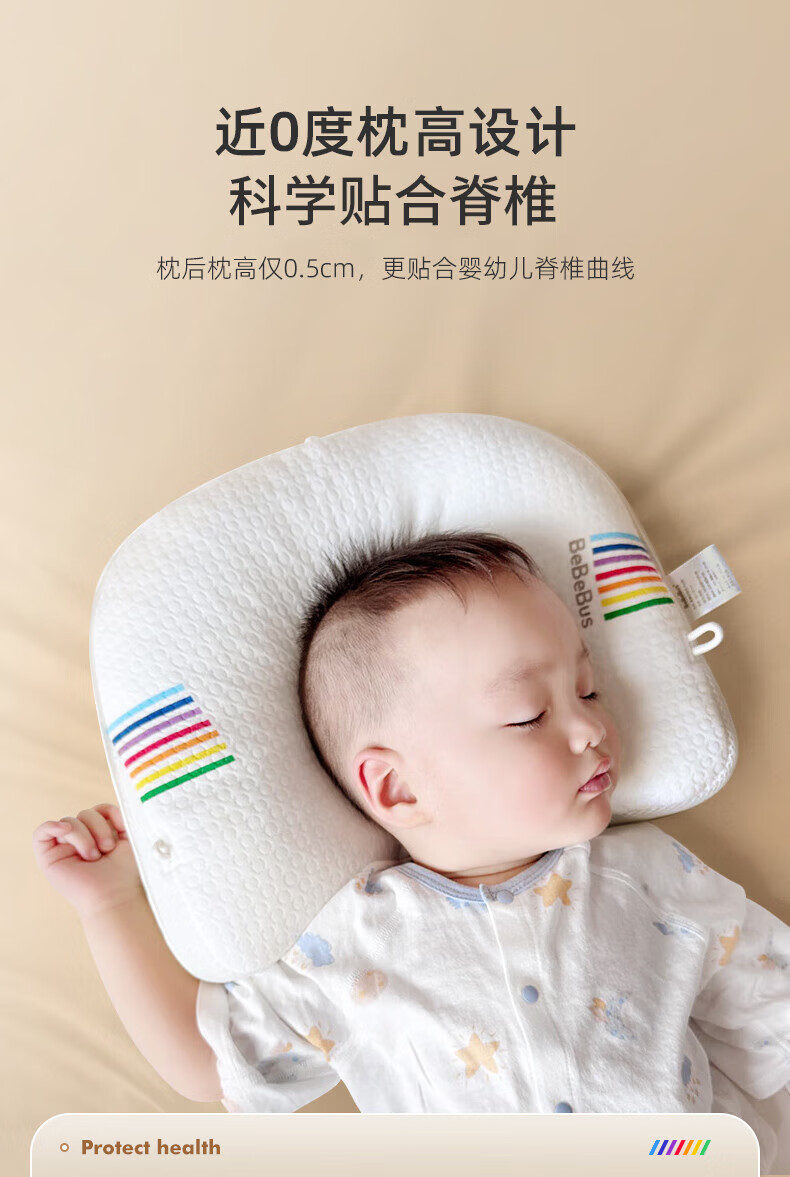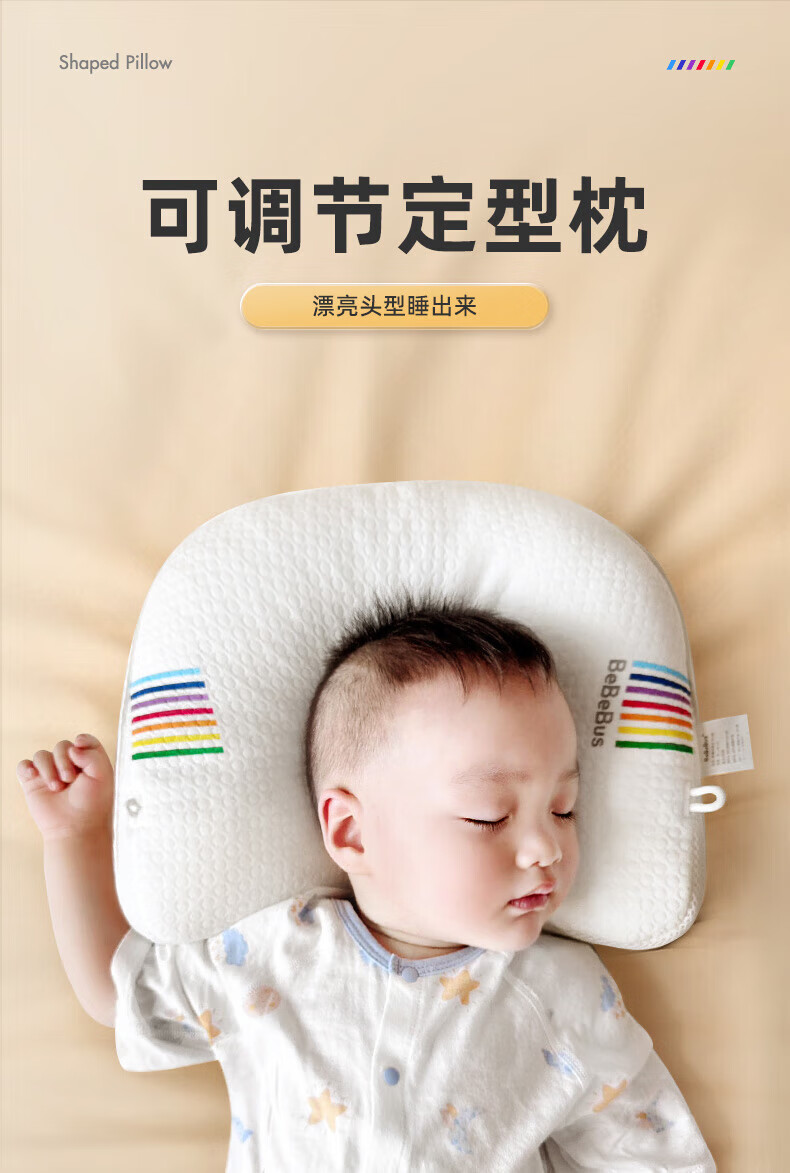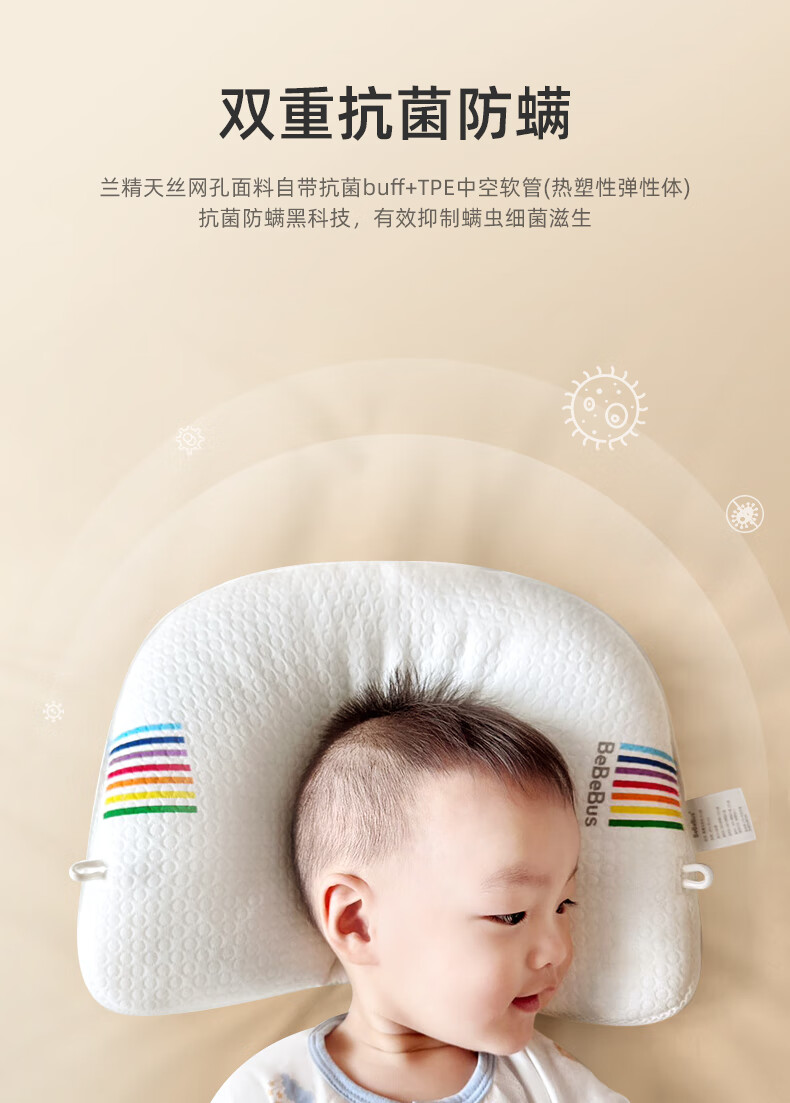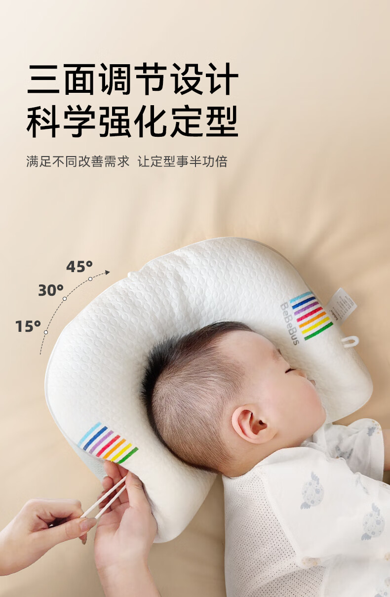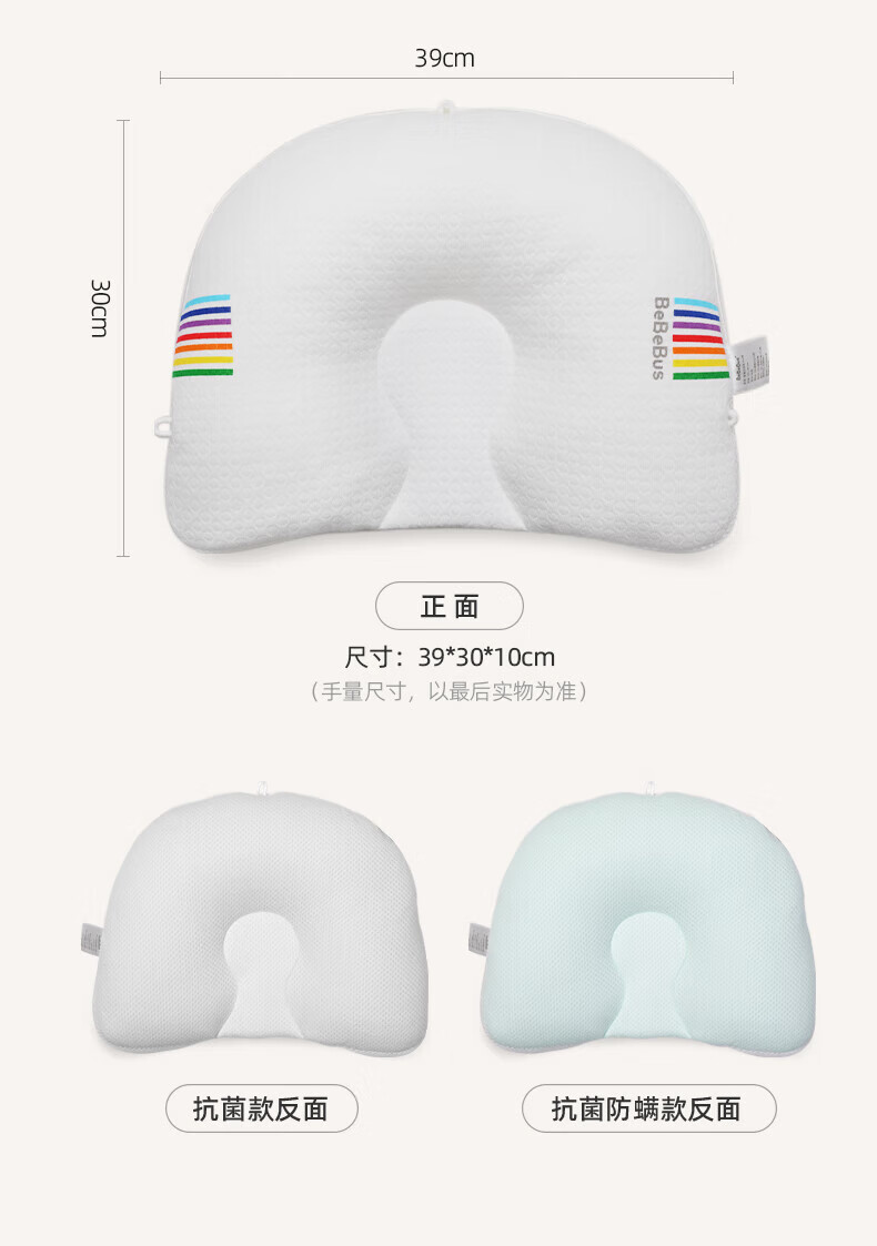 bebebus婴儿枕头定型枕防偏头纠正头型0-1岁宝宝枕头四季透气 升级抑菌款 纯色
