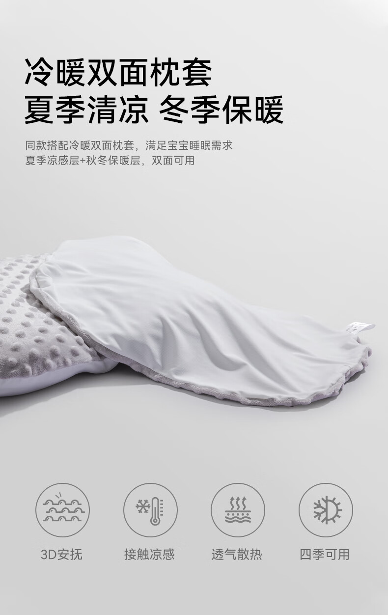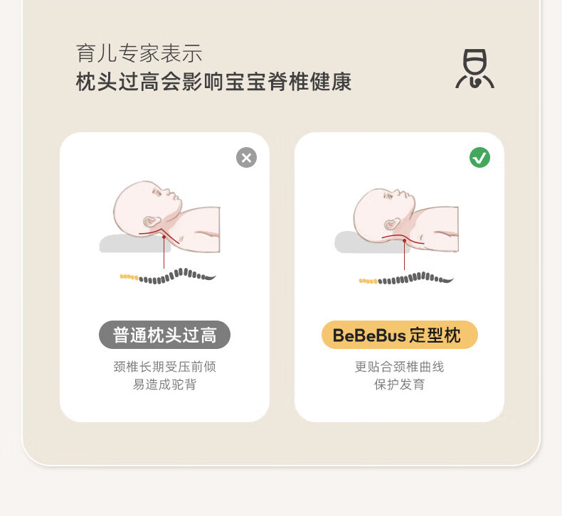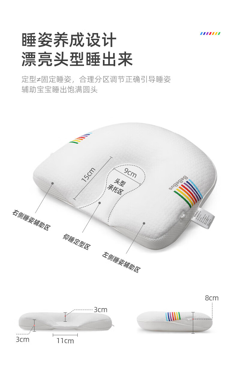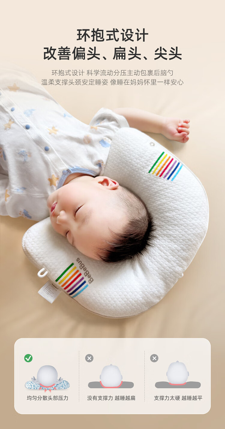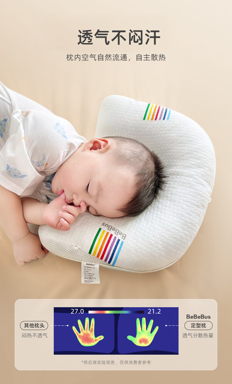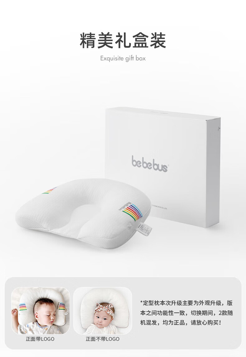 bebebus婴儿枕头定型枕防偏头纠正头型0-1岁宝宝枕头四季透气 升级抑菌款 纯色