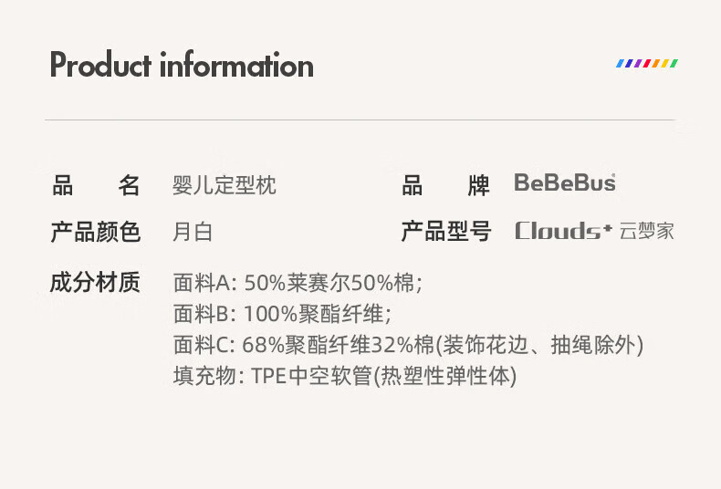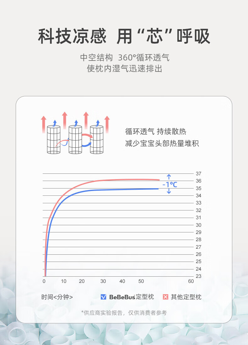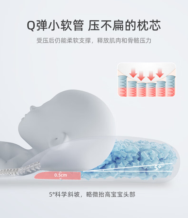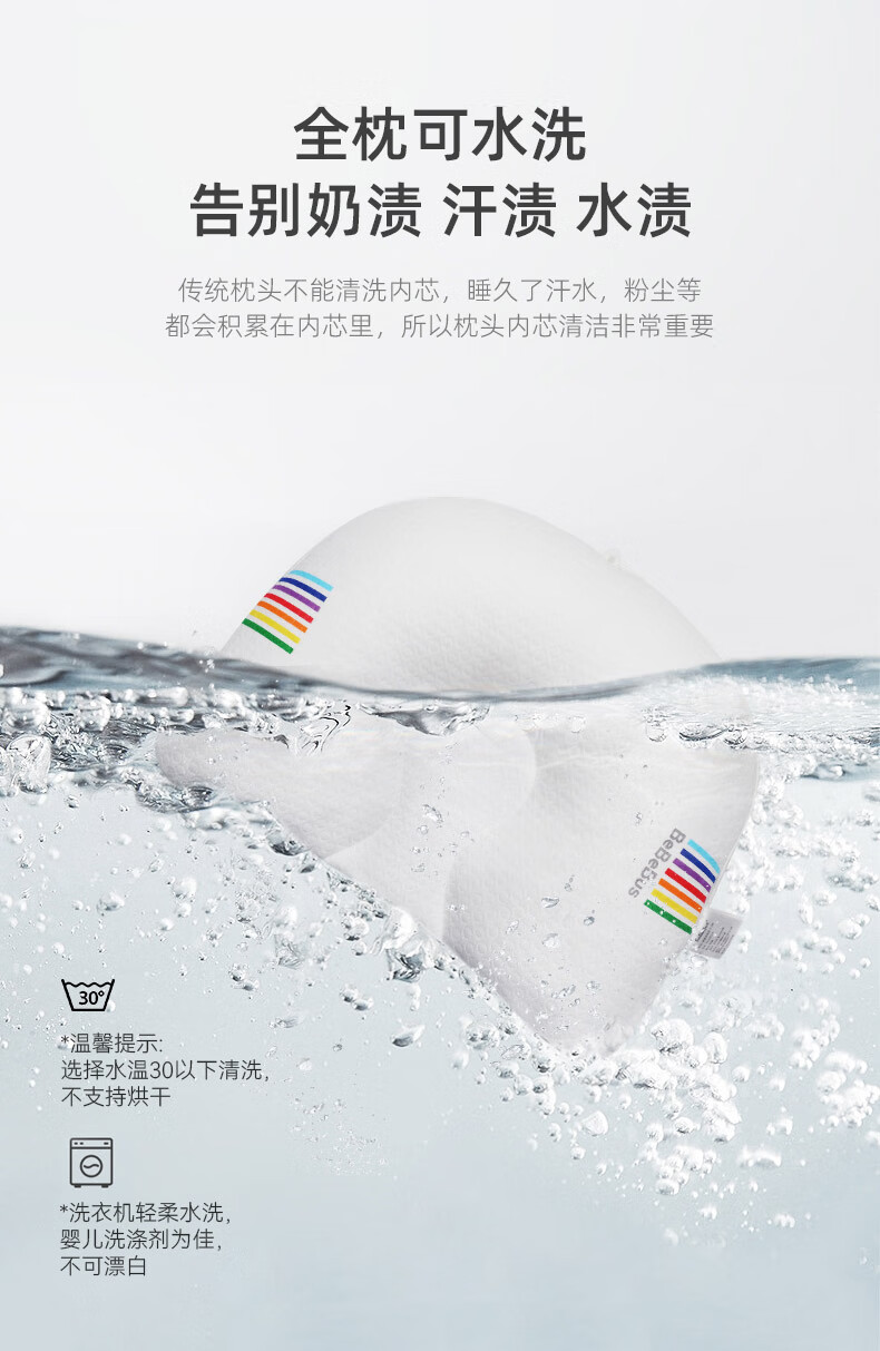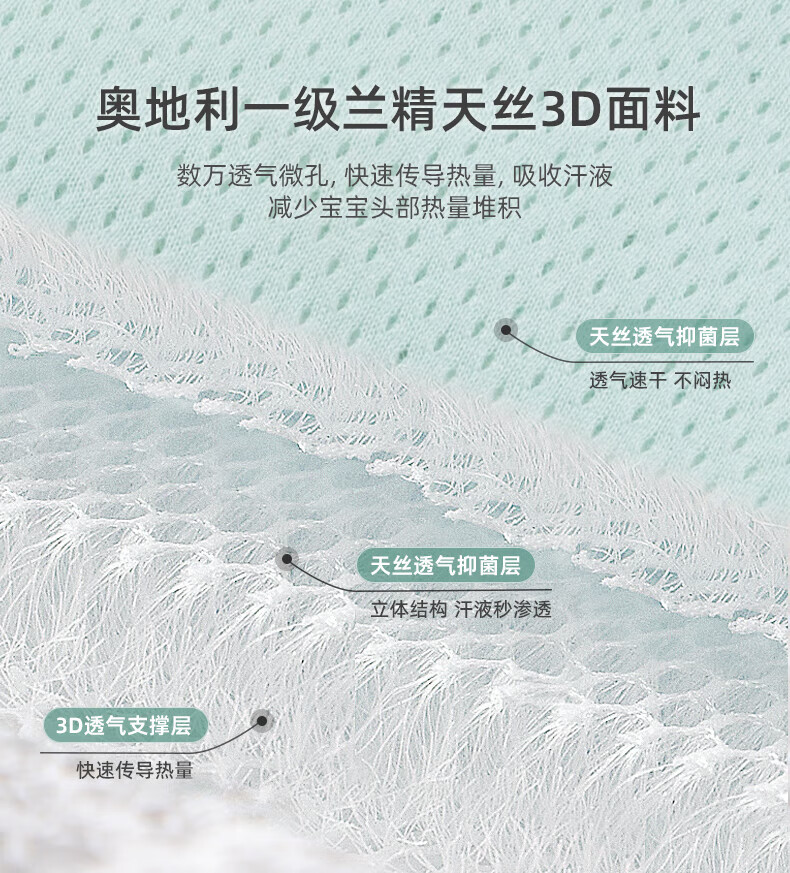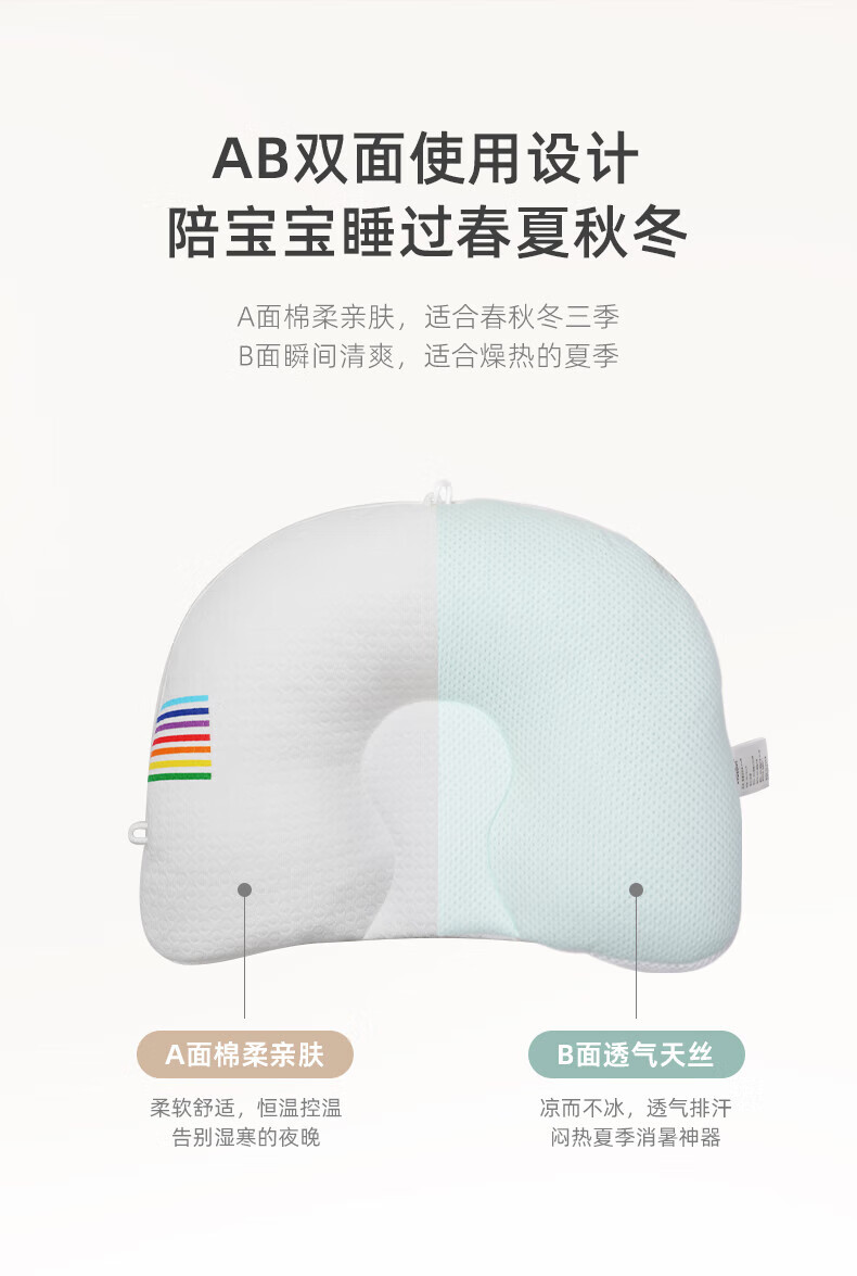 bebebus婴儿枕头定型枕防偏头纠正头型0-1岁宝宝枕头四季透气 升级抑菌款 纯色