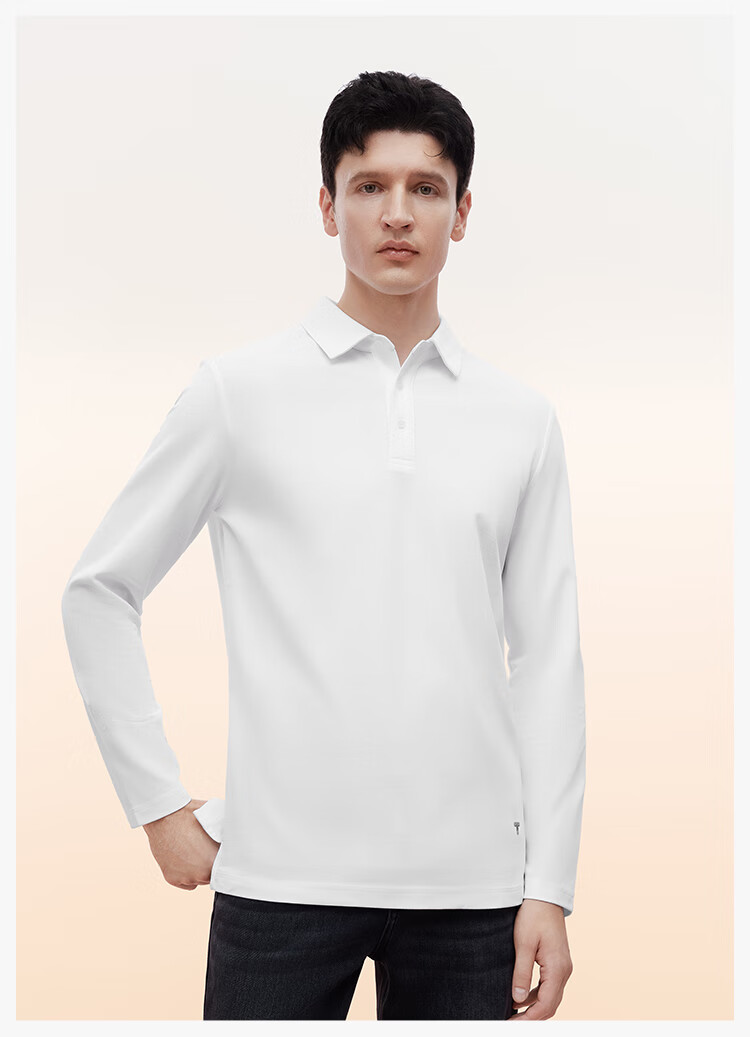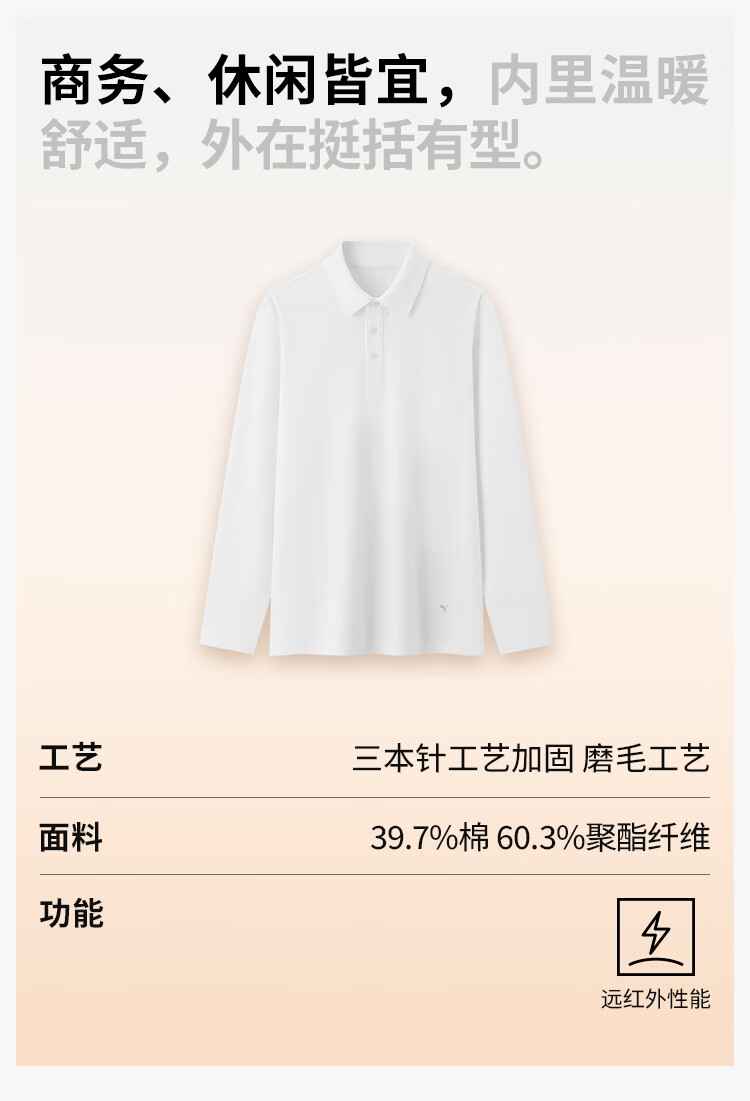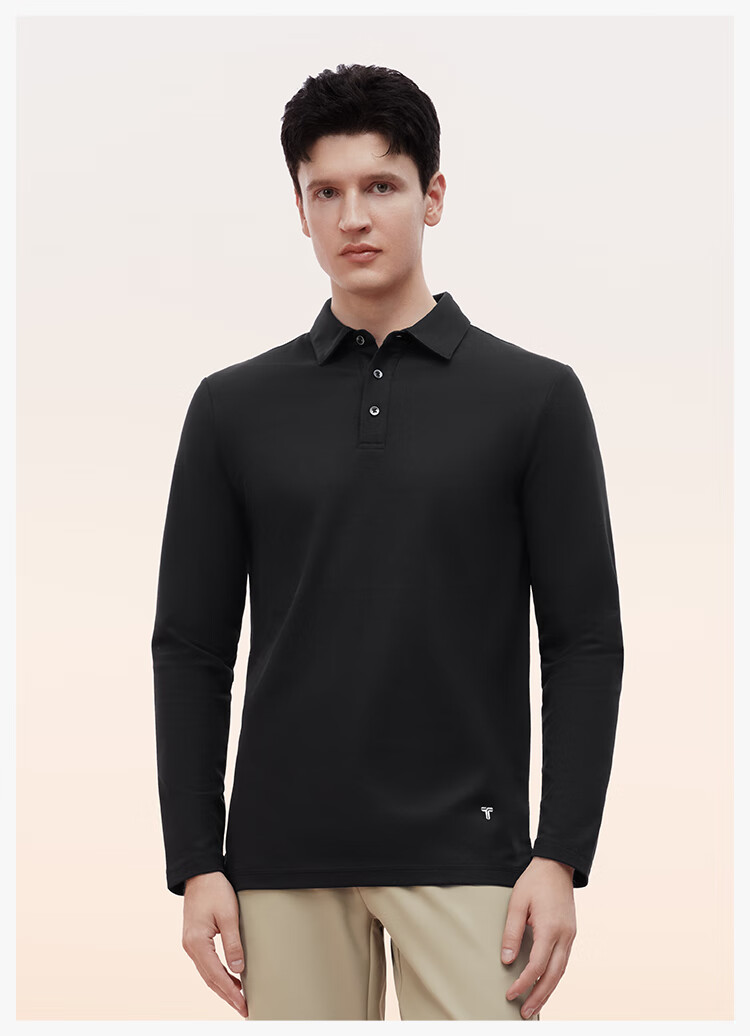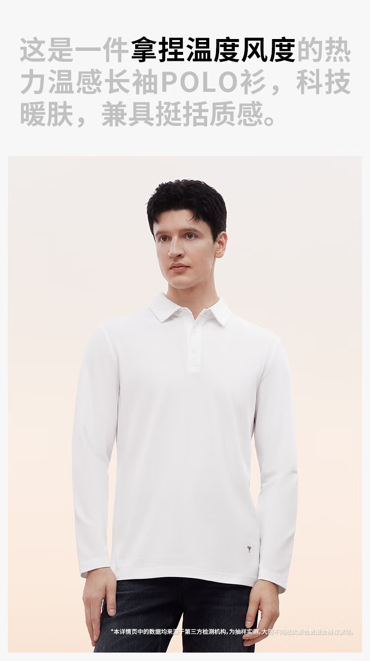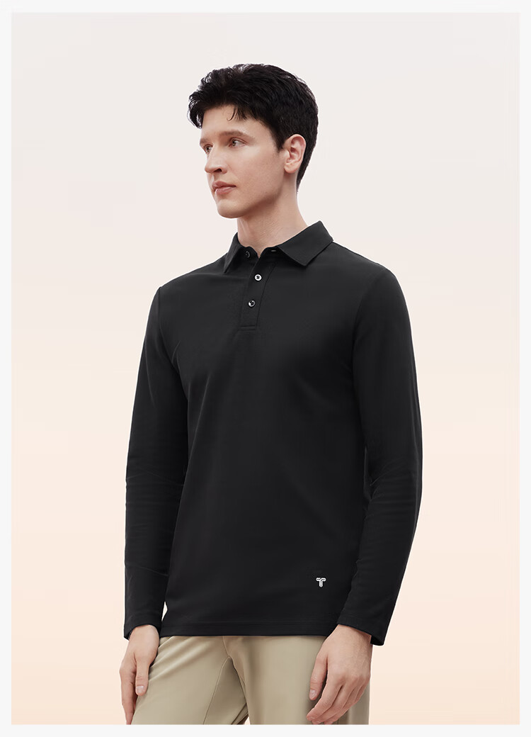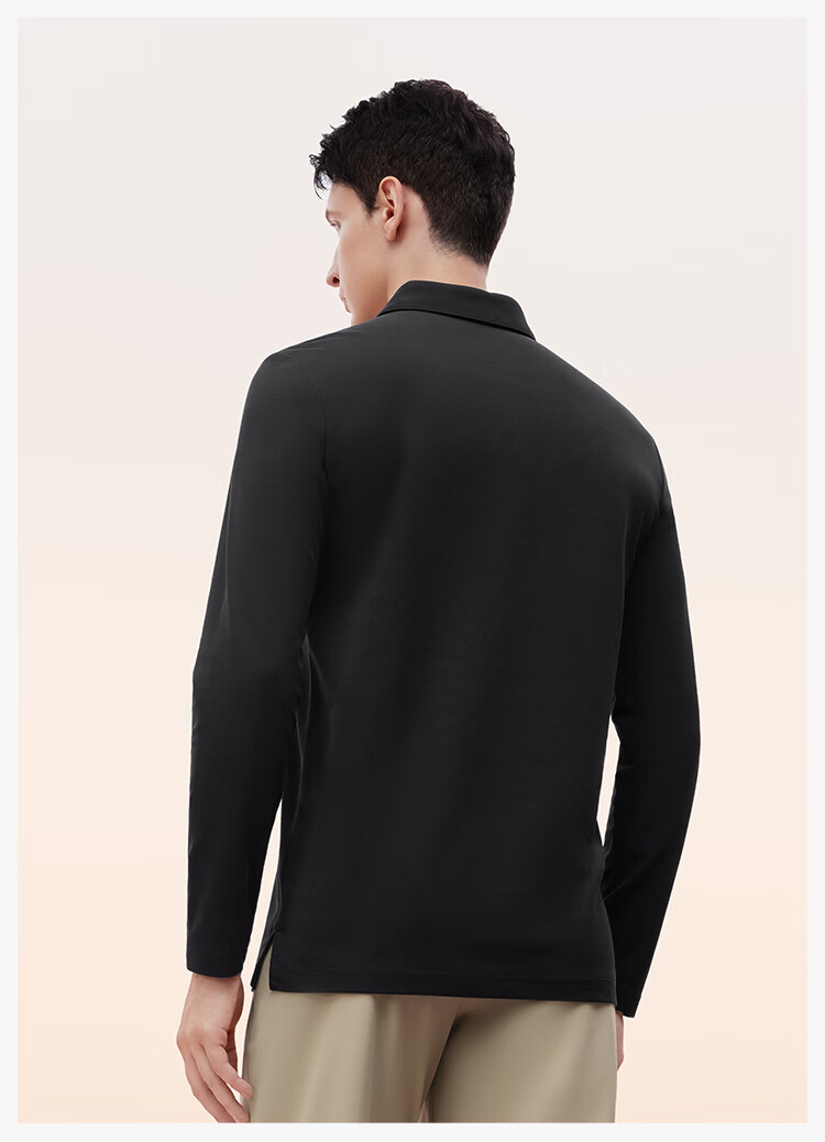 拇指白小T2025秋季新品长袖POLO衫男士热力温感打底衫内搭秋冬翻领商务休闲 墨黑 XL