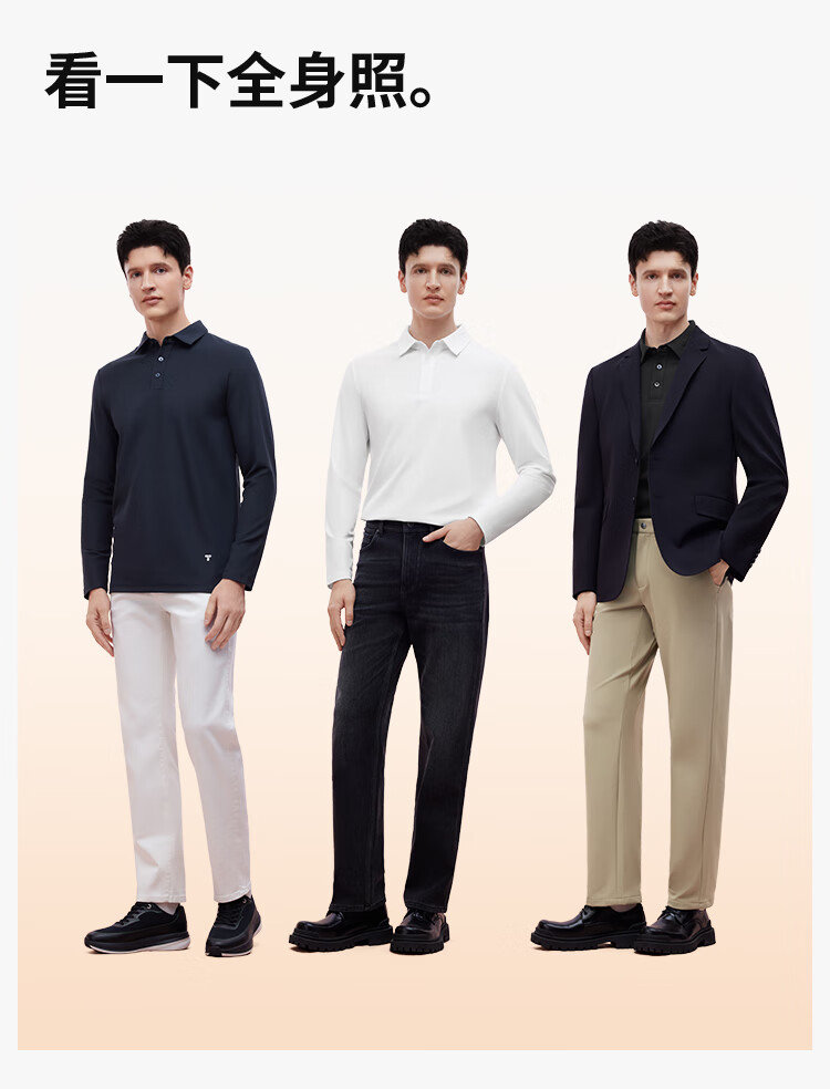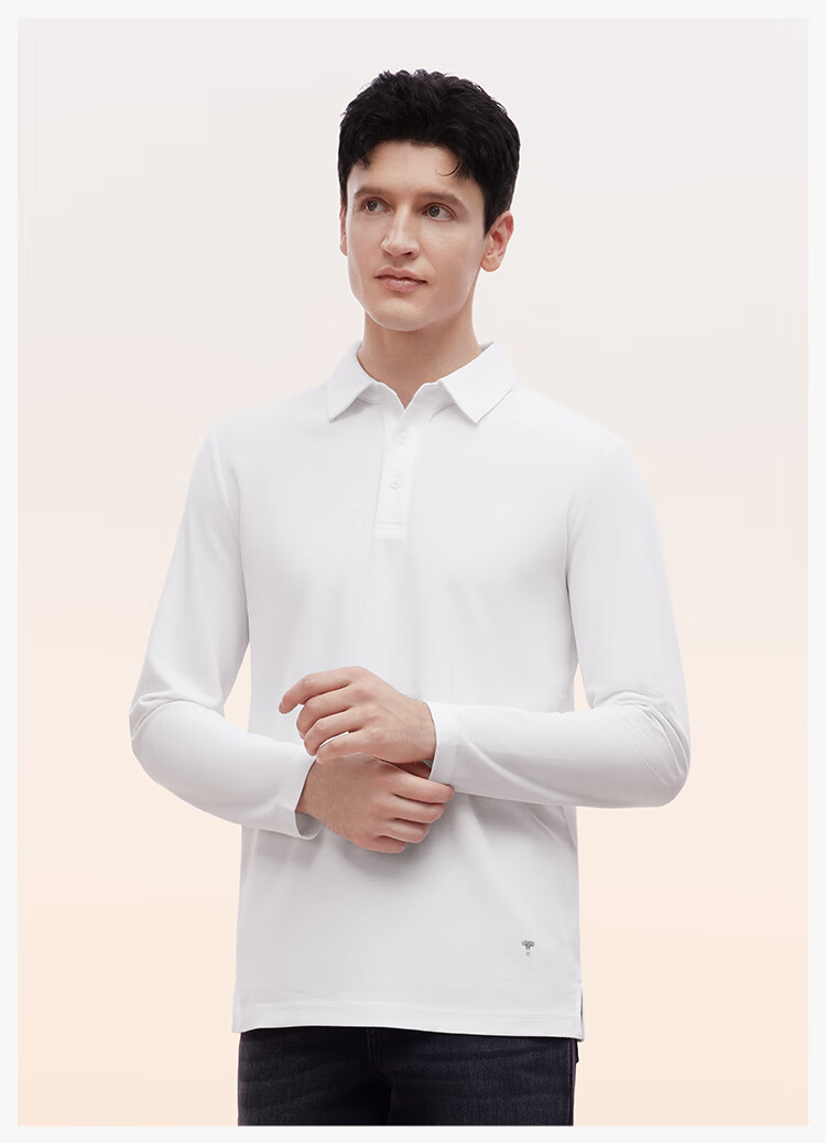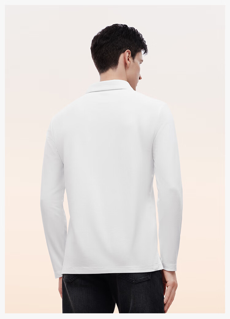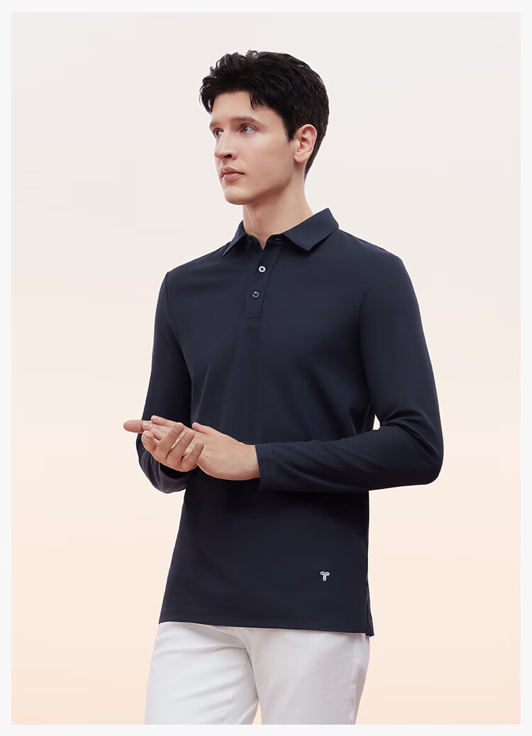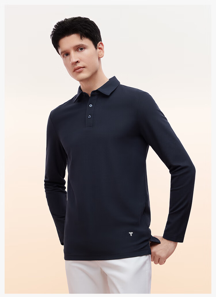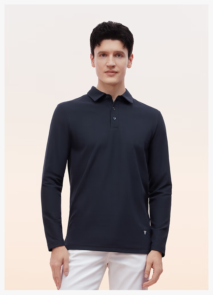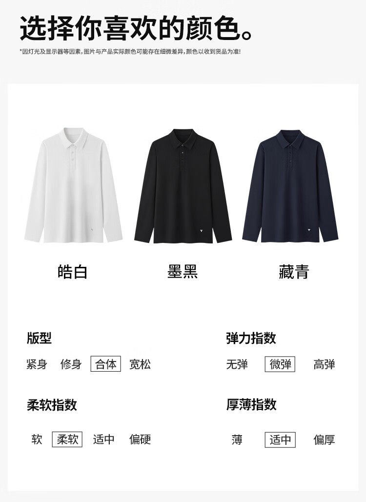 拇指白小T2025秋季新品长袖POLO衫男士热力温感打底衫内搭秋冬翻领商务休闲 墨黑 XL