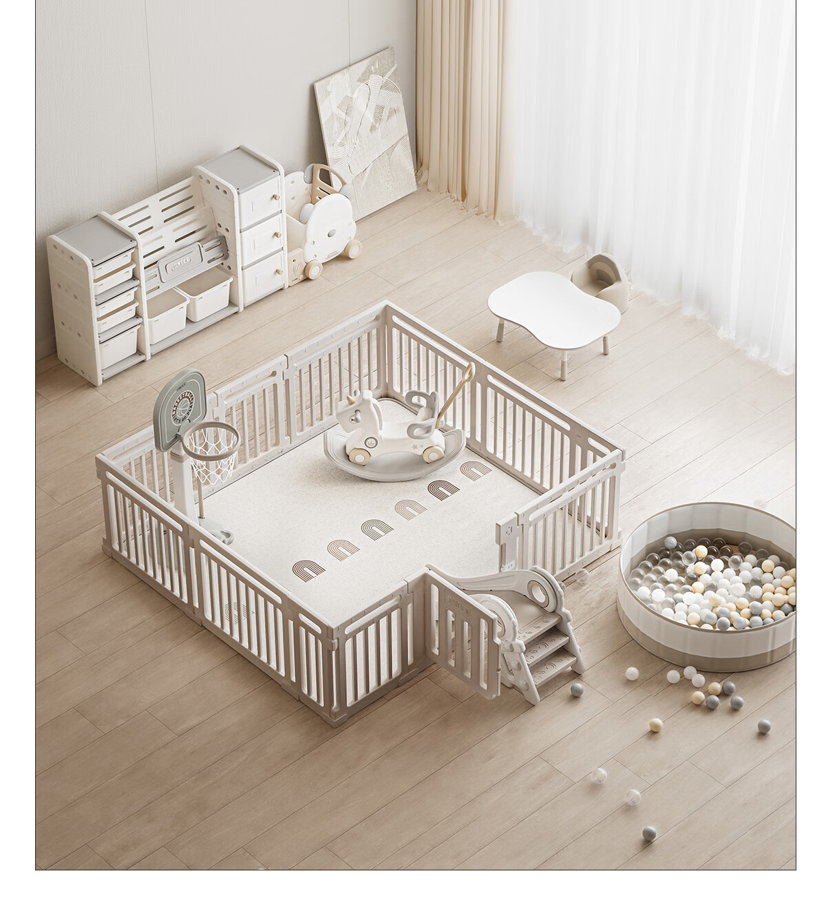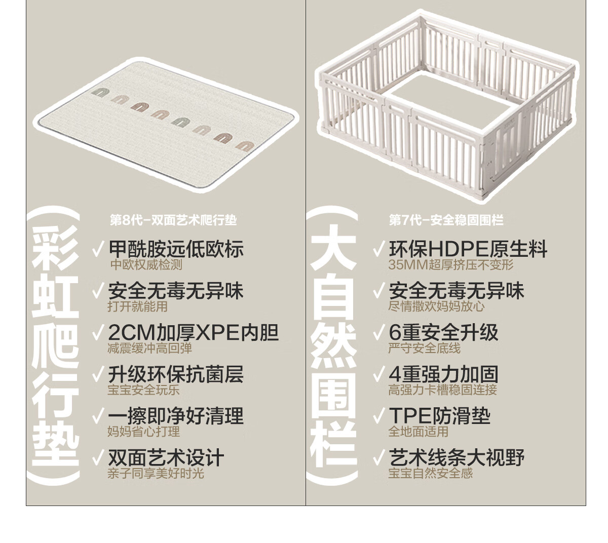 贝易(BeiE)大自然围栏地上爬爬垫婴儿客厅室内宝宝爬行垫儿童游戏围栏地垫 180*200-围栏+XPE卷筒垫2cm-童话星空