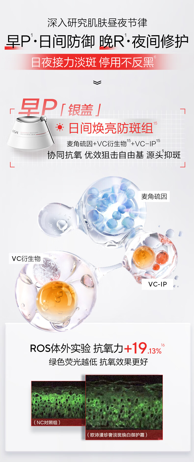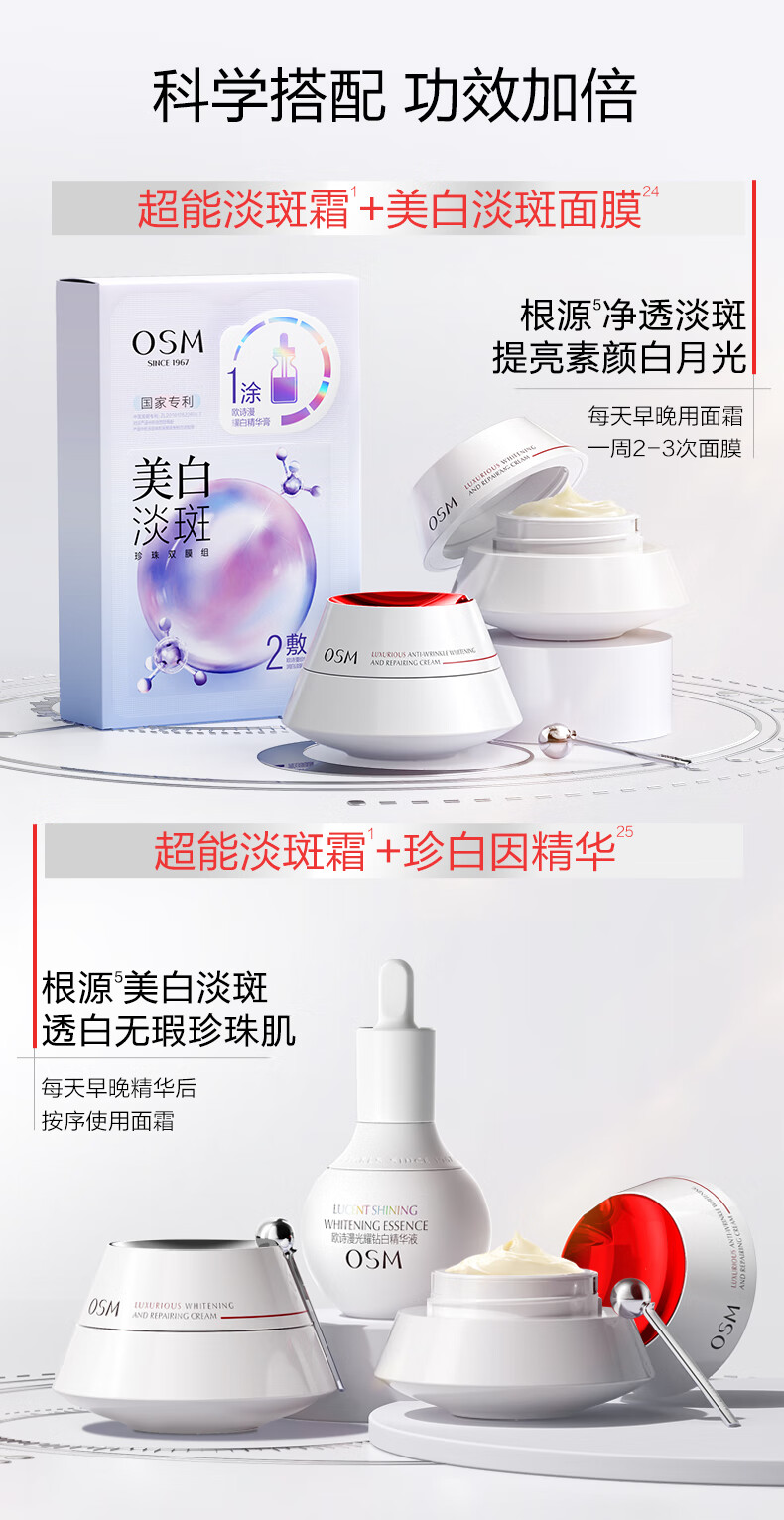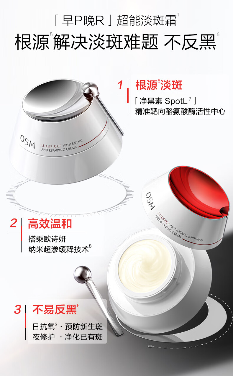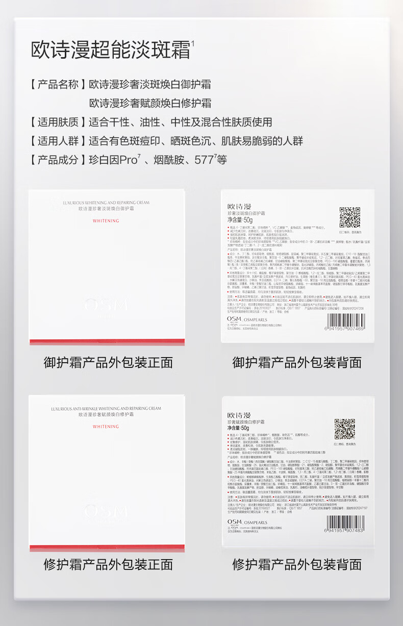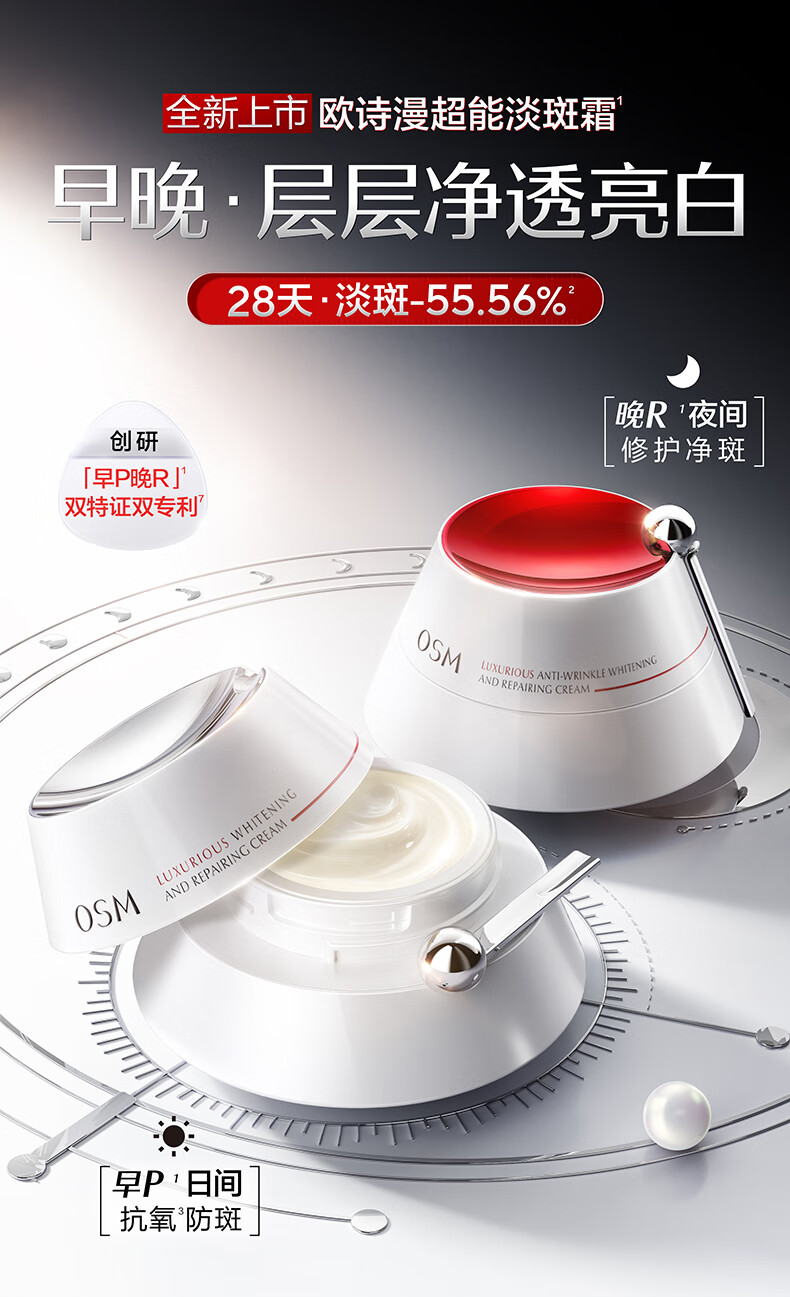欧诗漫(OSM)珍奢淡斑早霜50g+晚霜50g套装补水修护护肤品女 中秋礼物