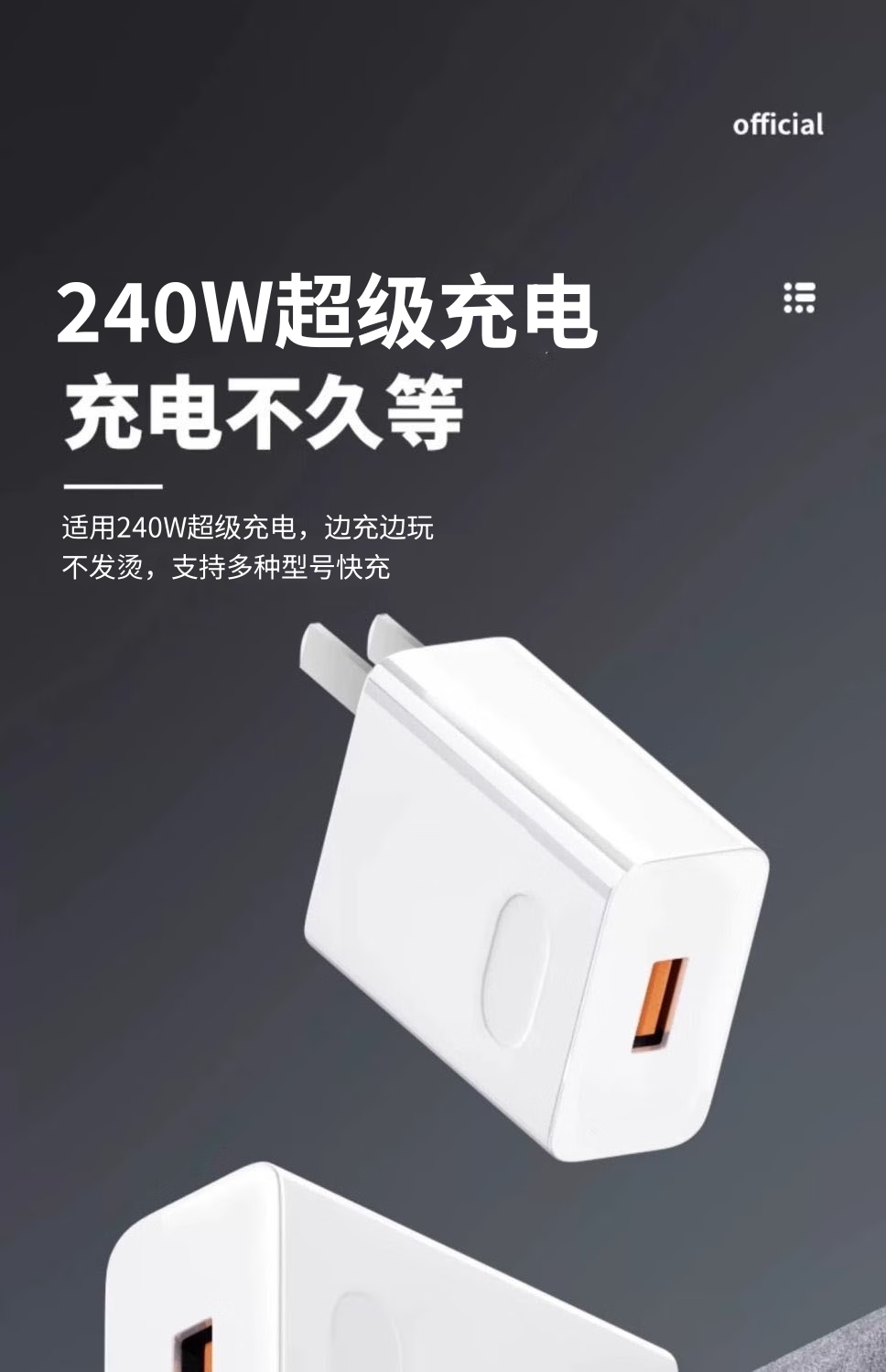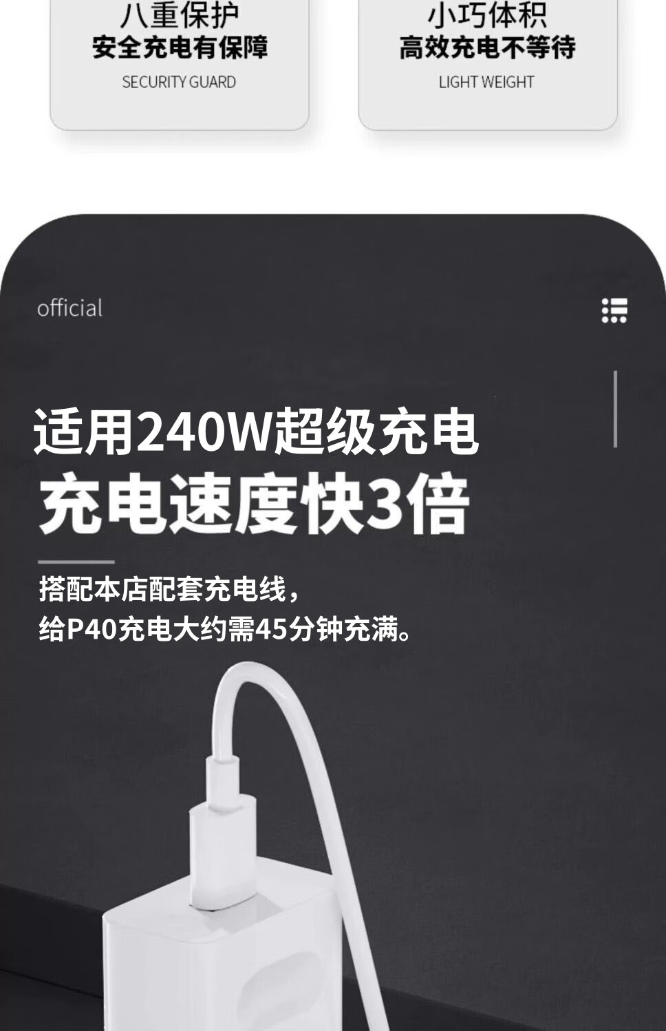 简雷240W超级充电适用华为充电器Mate60pro手机充电头闪充插头mate50pro/30/40适用荣耀nova8/9数据线 240W超级充电头+2米6A快充线
