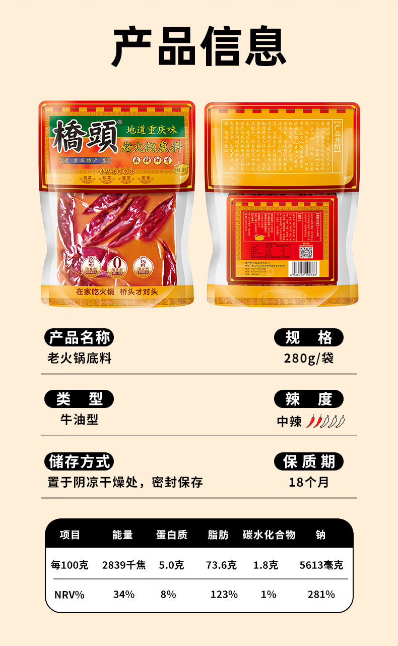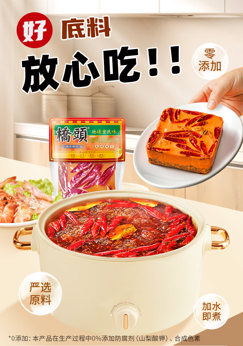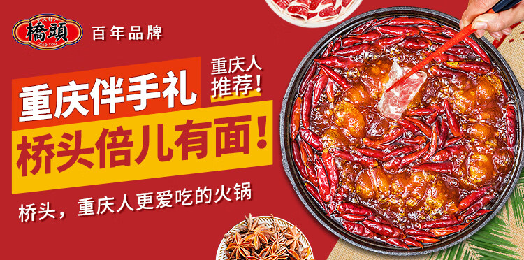桥头重庆特产火锅料底料280g2麻辣香锅冒菜调料四川串串锅底炒料 中麻中辣500g*2袋