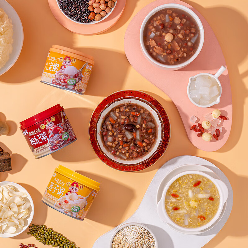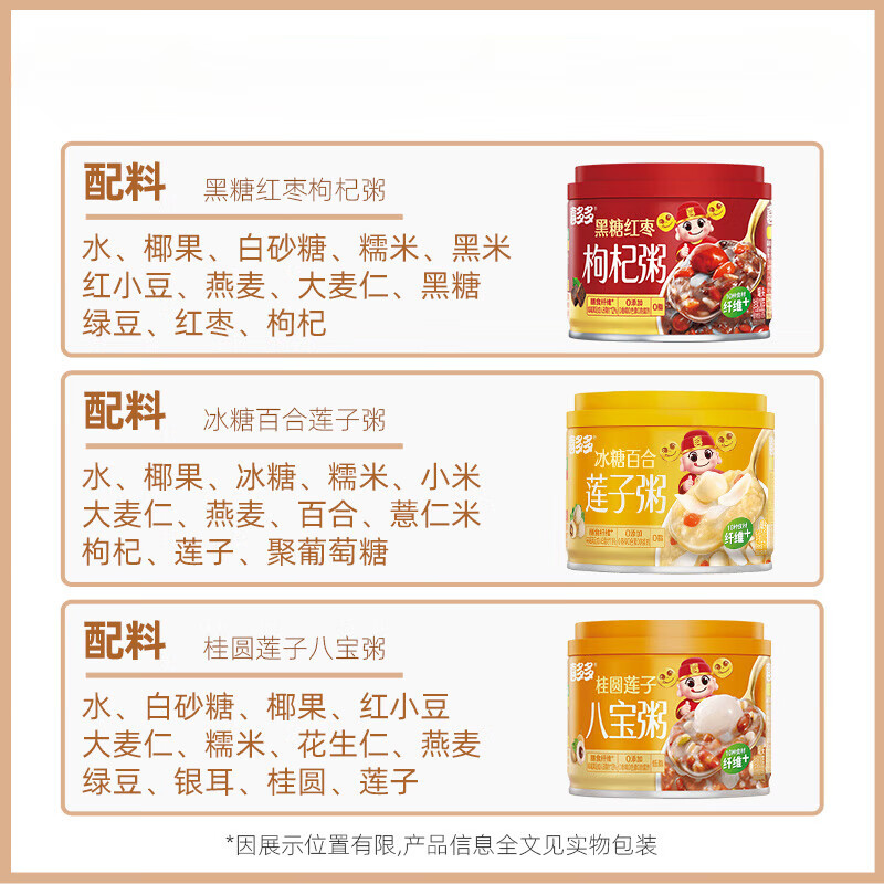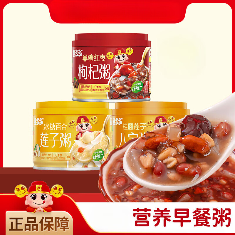 喜多多黑糖红枣八宝粥桂圆莲子罐头营养早餐速食小米粥整箱 280g*6罐混合装