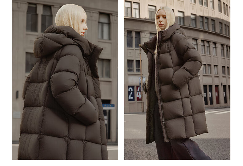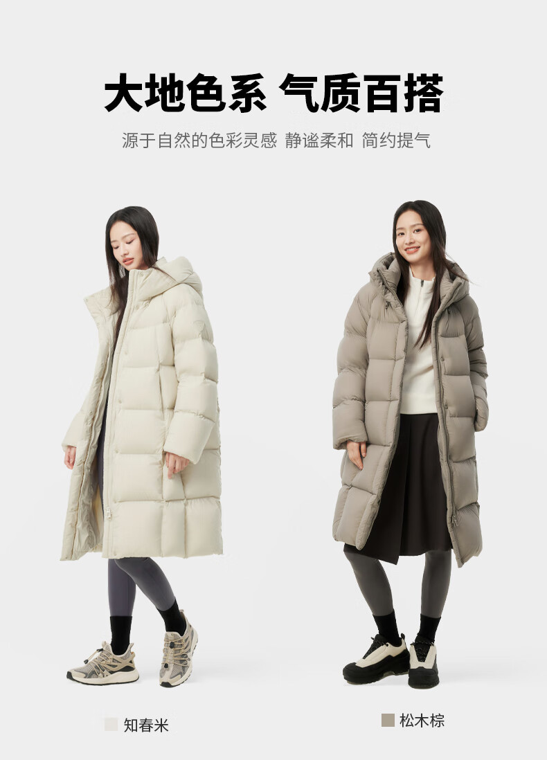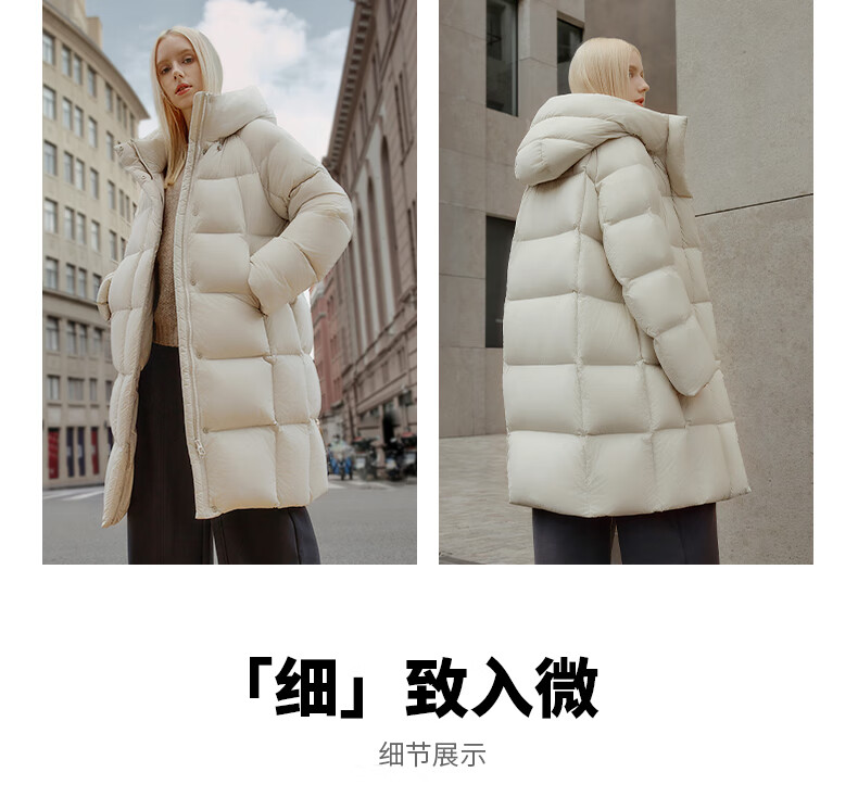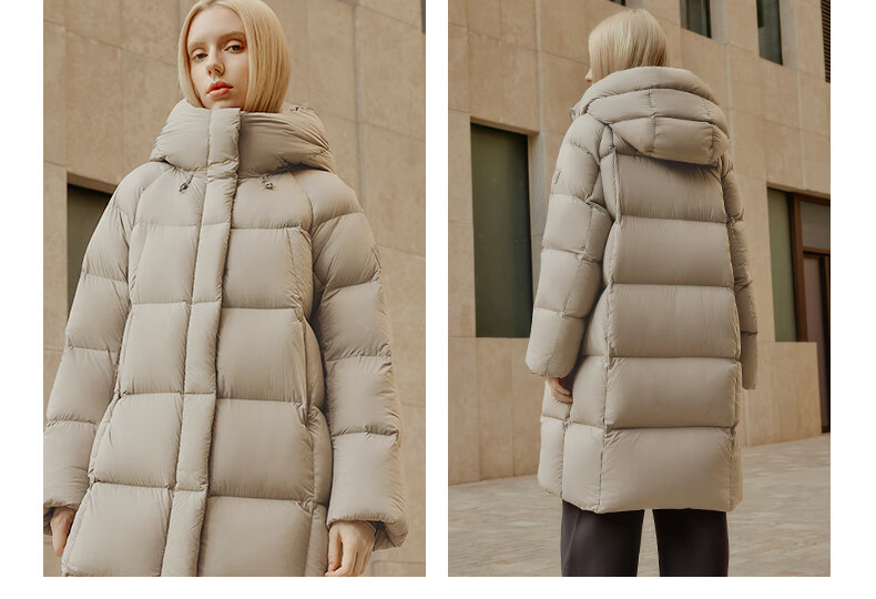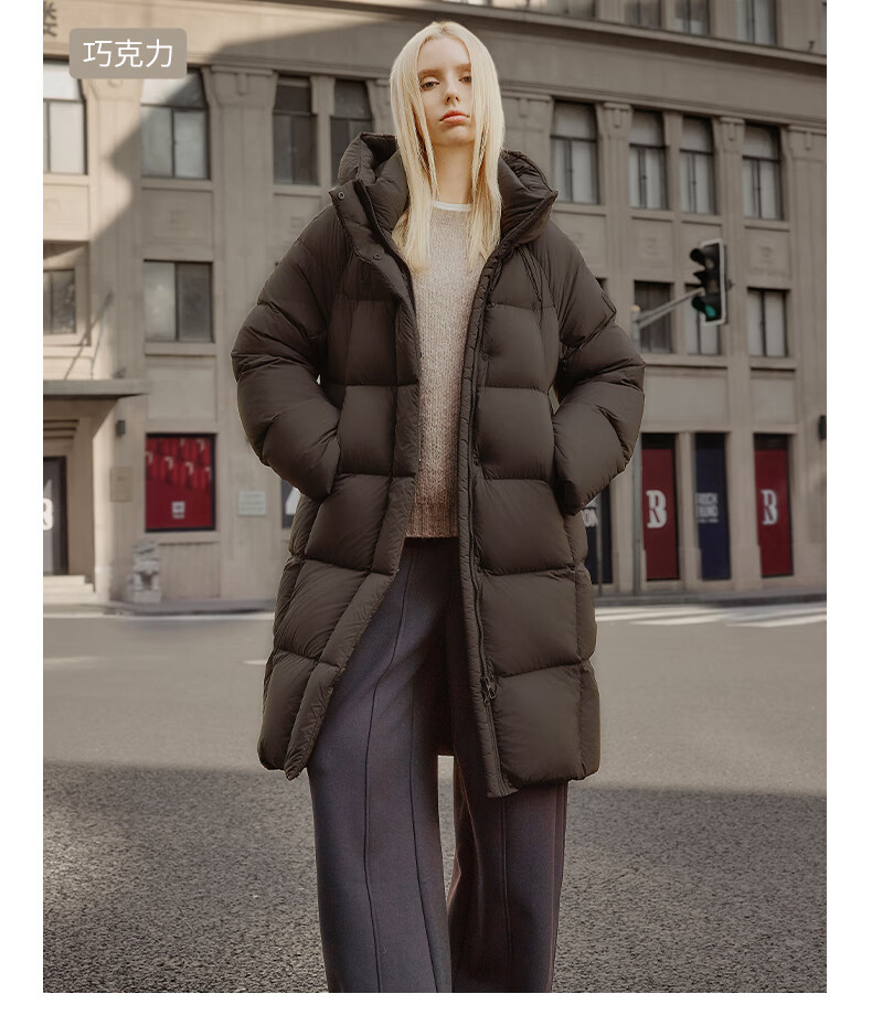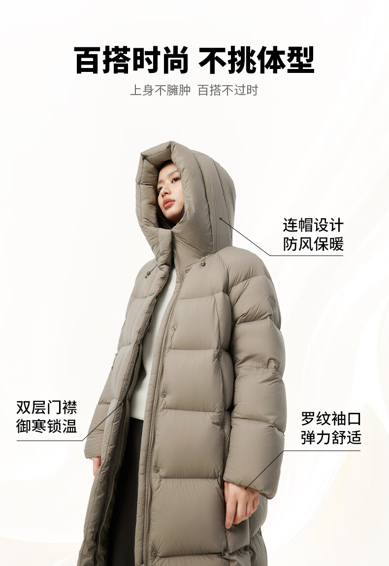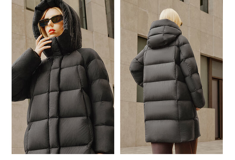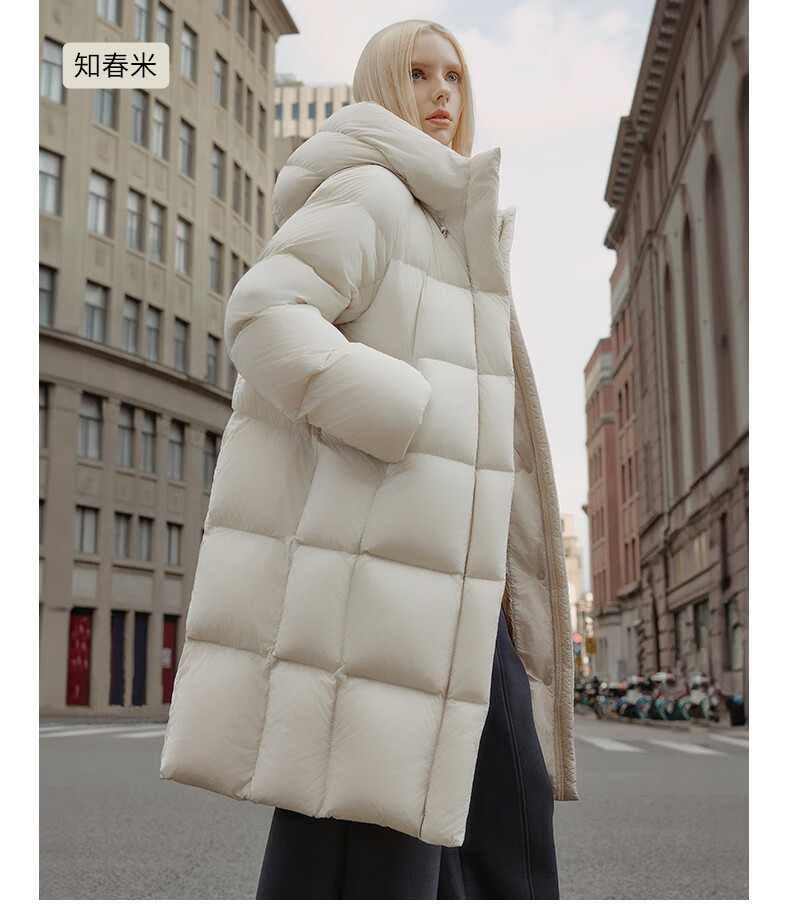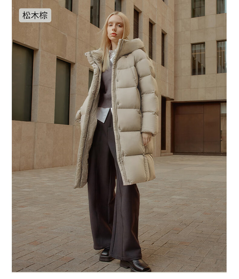坦博尔泡芙羽绒服女反季中长款鸭绒连帽舒适百搭廓形保暖外套