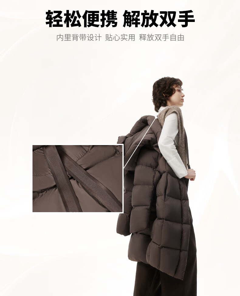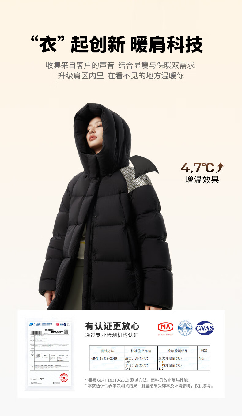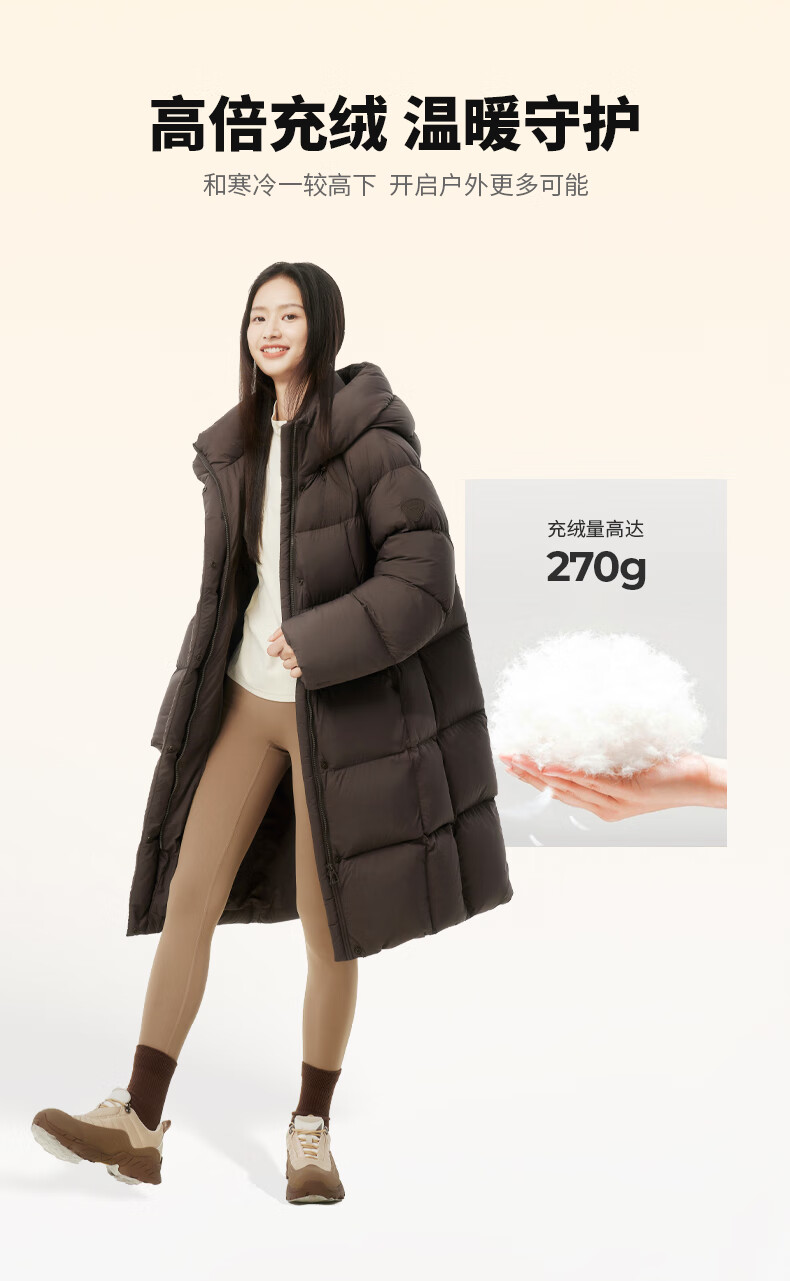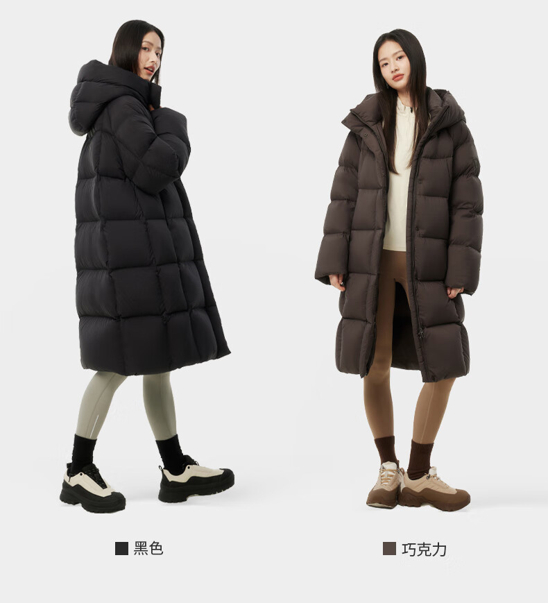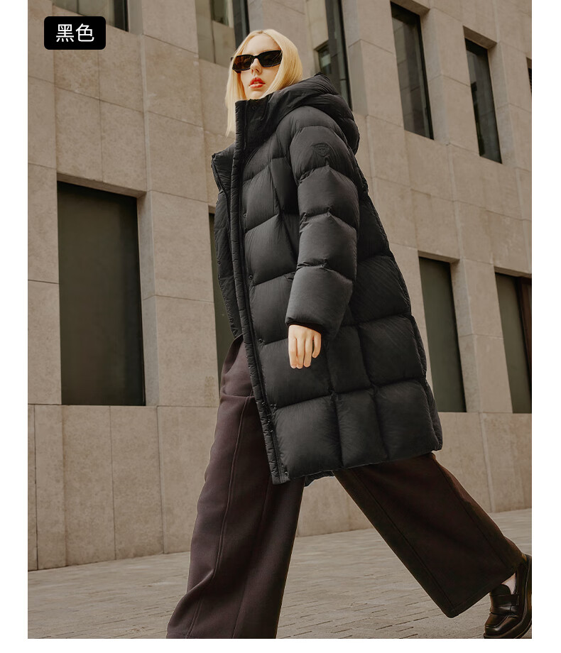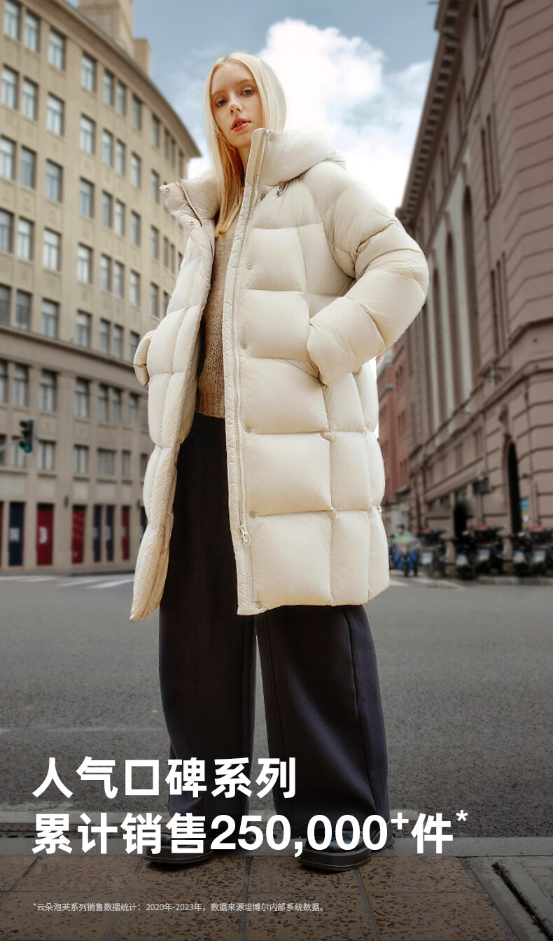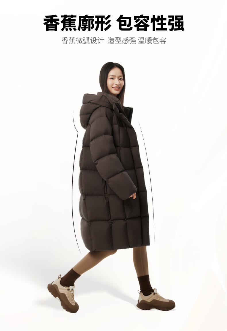 坦博尔泡芙羽绒服女反季中长款鸭绒连帽舒适百搭廓形保暖外套