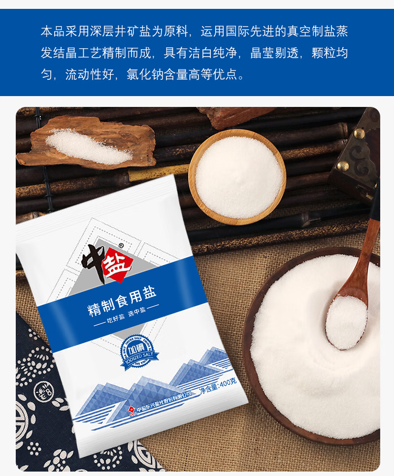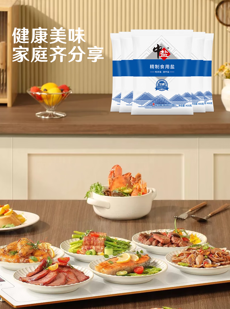 中盐精制食用盐400g*7袋 井盐调味品火锅炒菜 400g*7包装