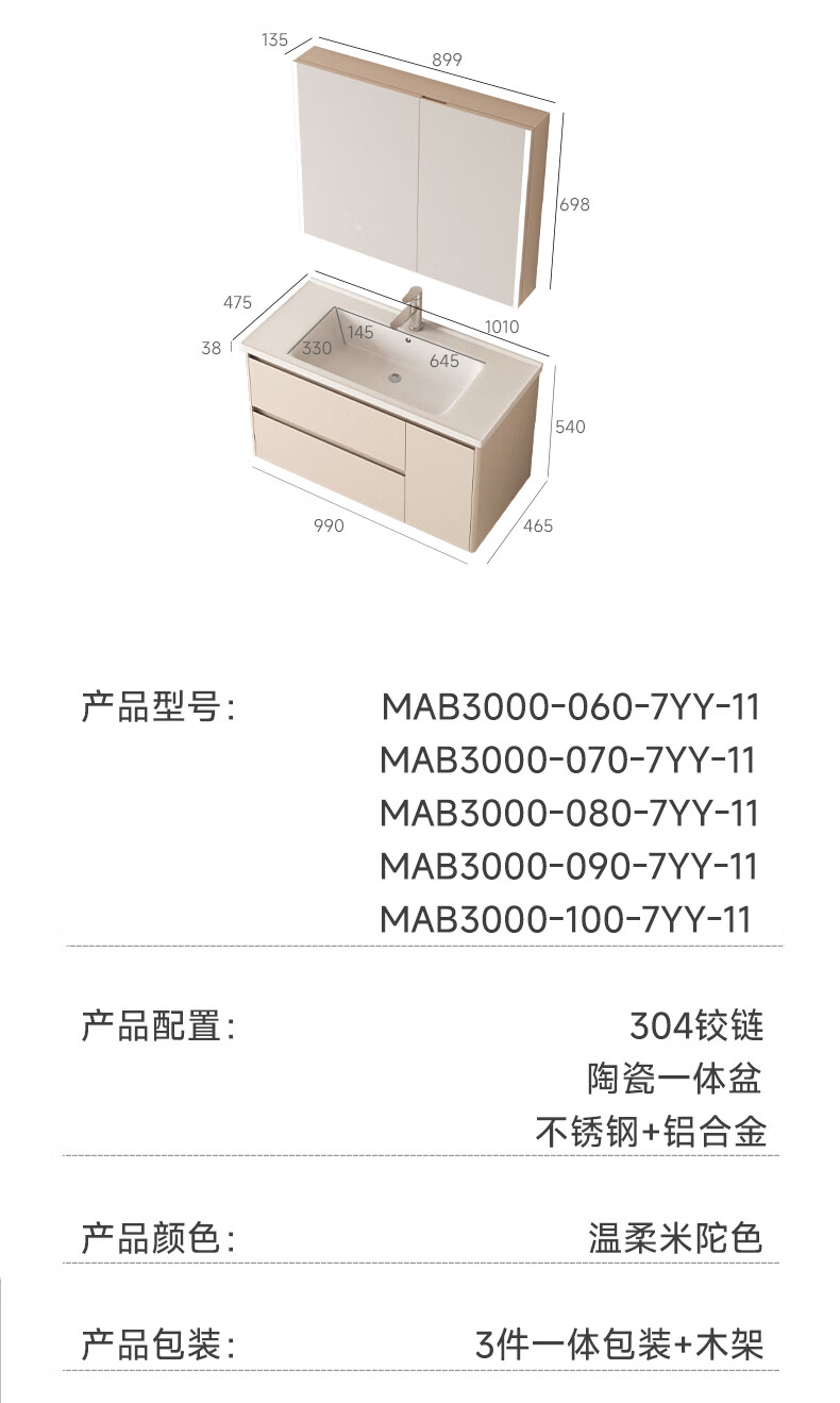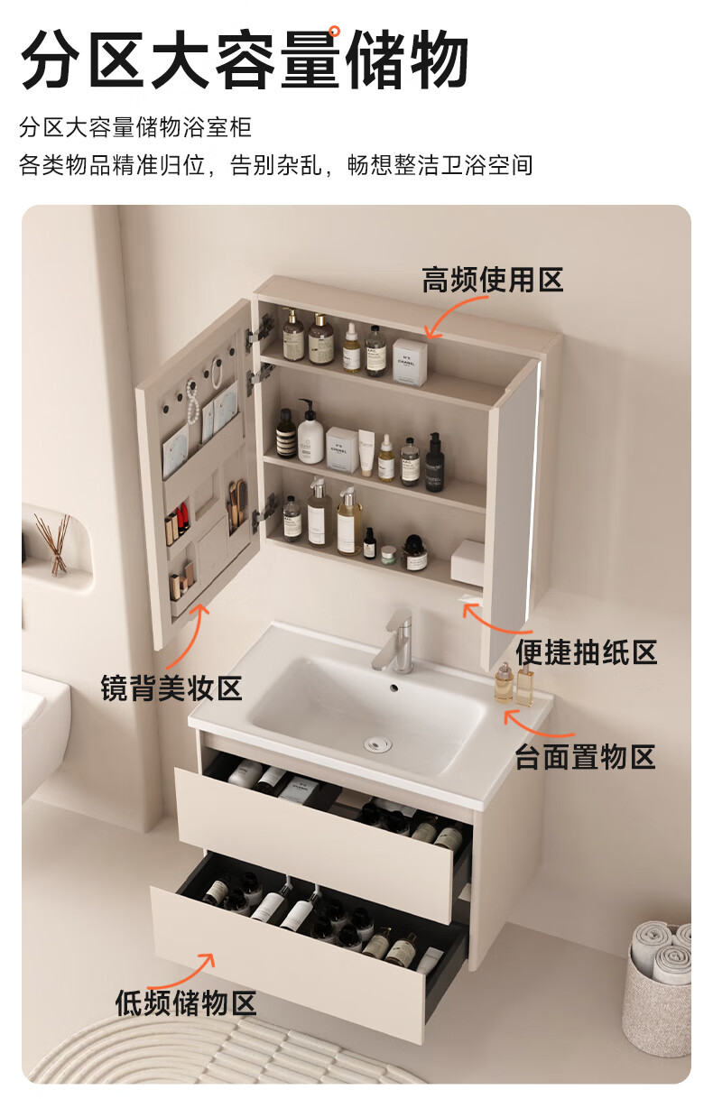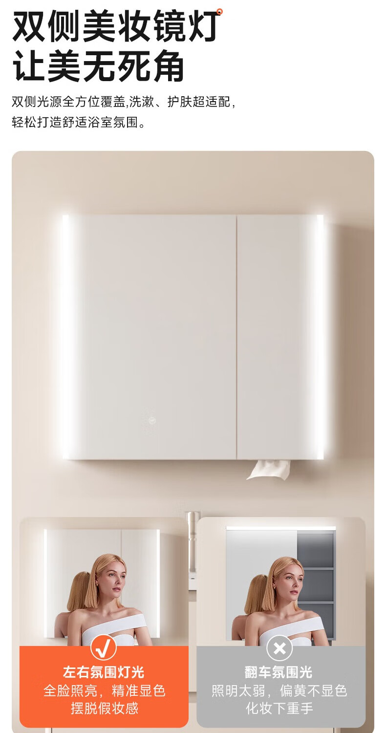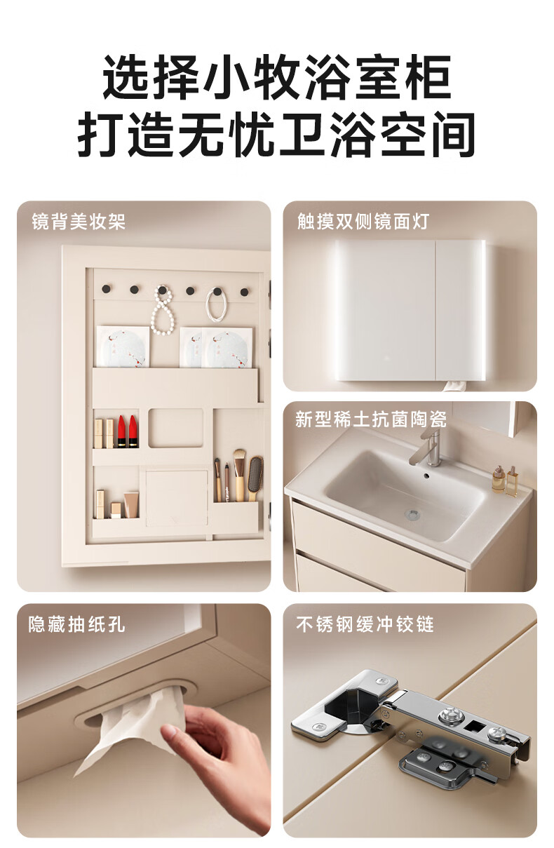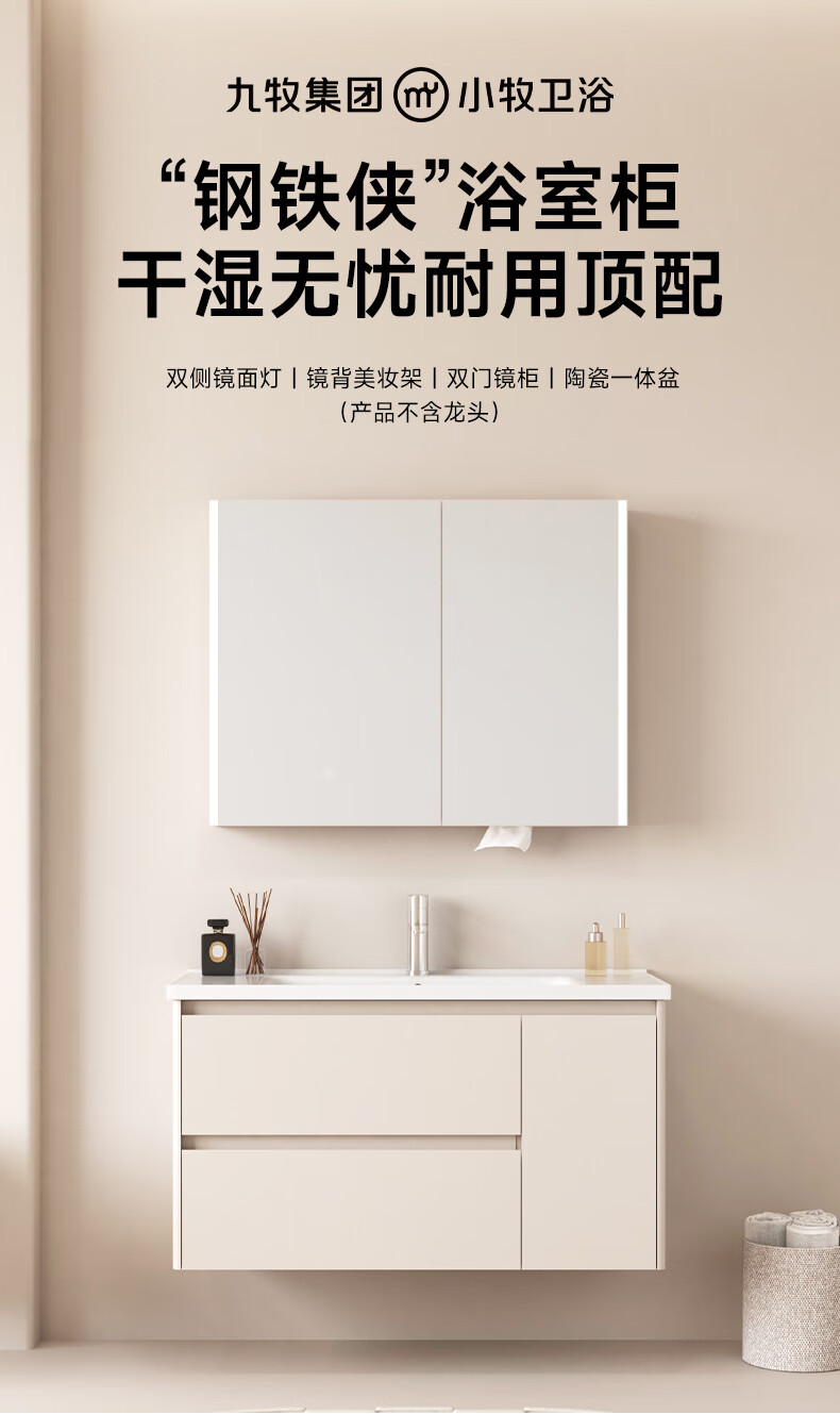 九牧(JOMOO)浴室柜小牧卫浴卫生间洗手脸盆柜组合陶瓷洗漱台镜柜MAB3000 隐藏抽纸口+美妆架+双侧镜灯80cm