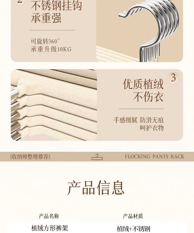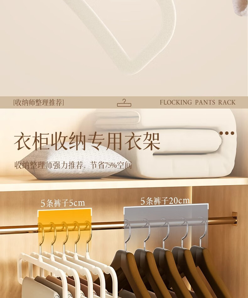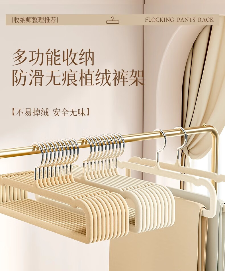 星坊植绒衣架无痕裤架子整理师专用收纳架衣柜收纳神器 10只