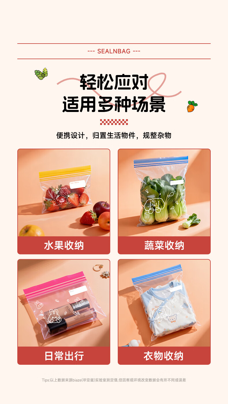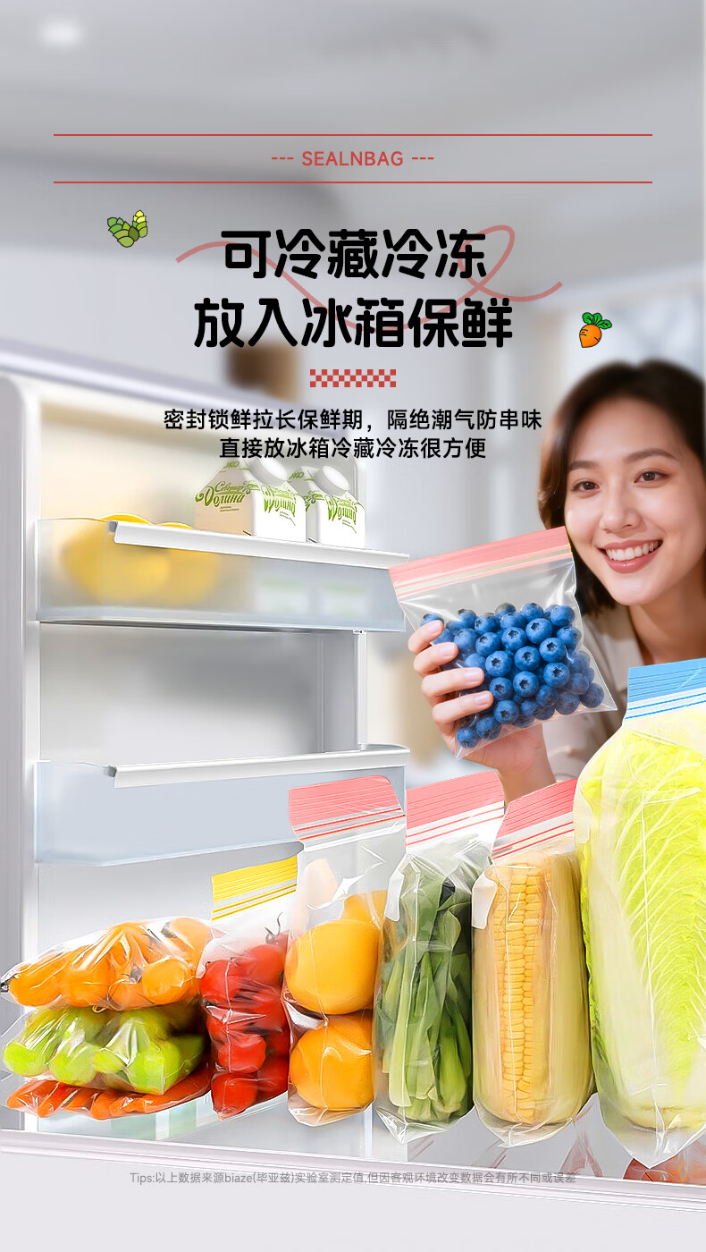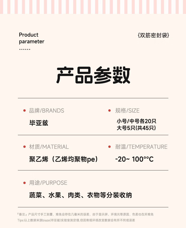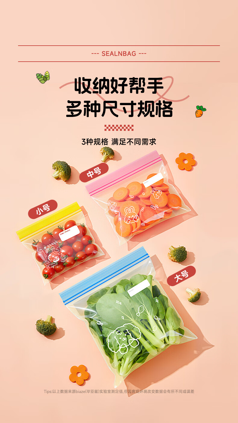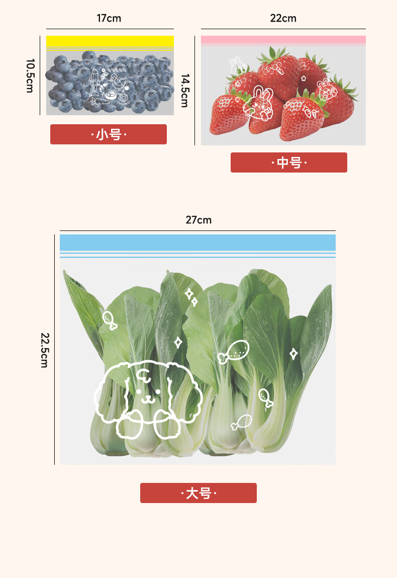 毕亚兹密封袋大中小号45只密实封口袋食品级保鲜自封口塑拉链分装收纳袋