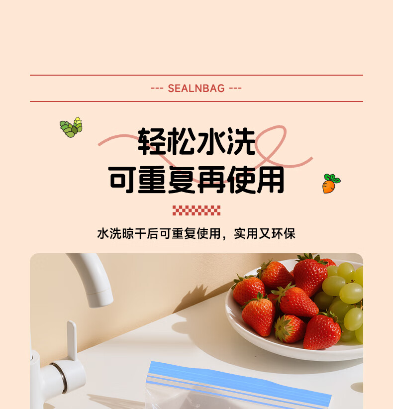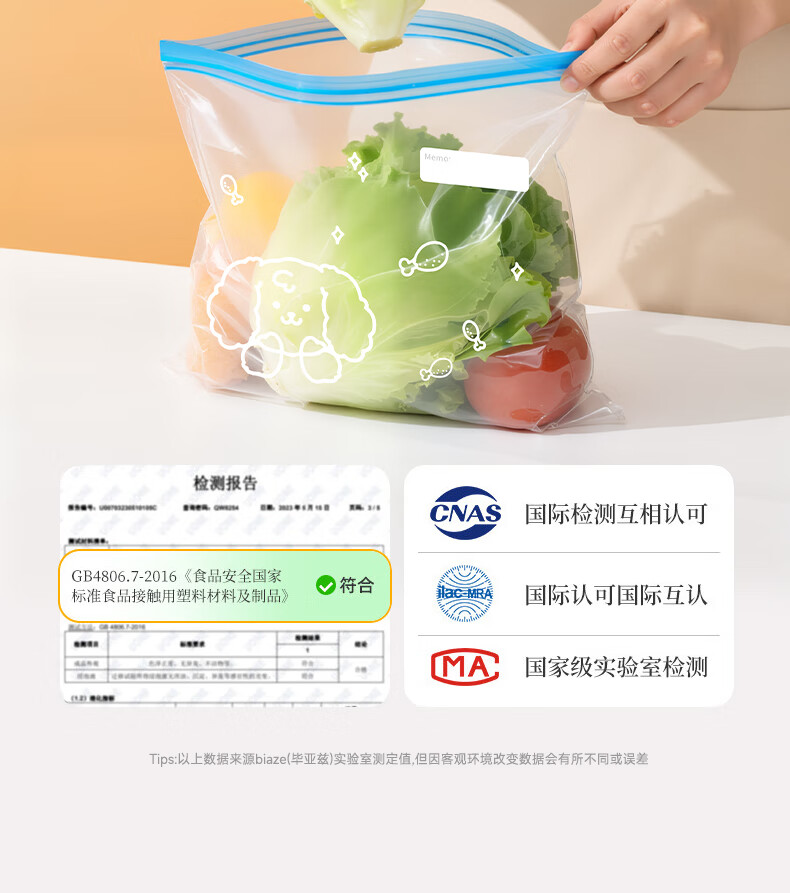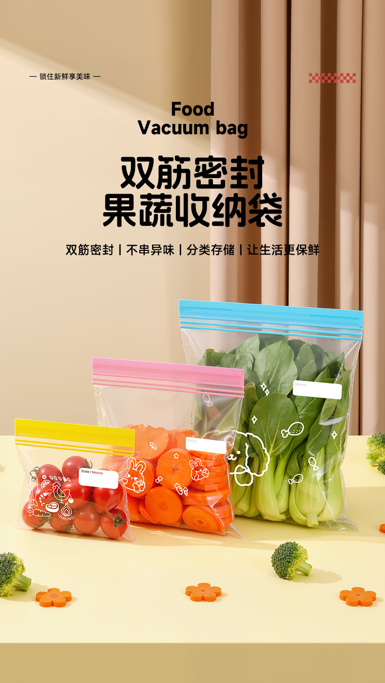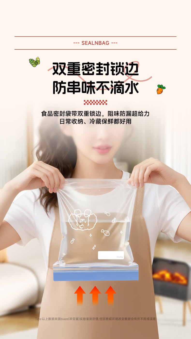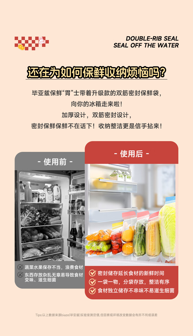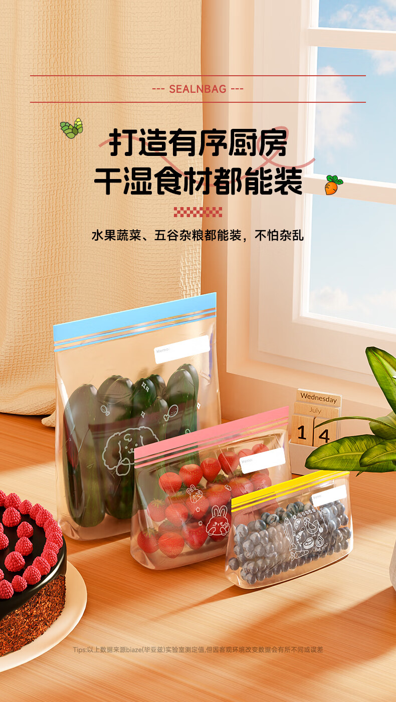 毕亚兹密封袋大中小号45只密实封口袋食品级保鲜自封口塑拉链分装收纳袋