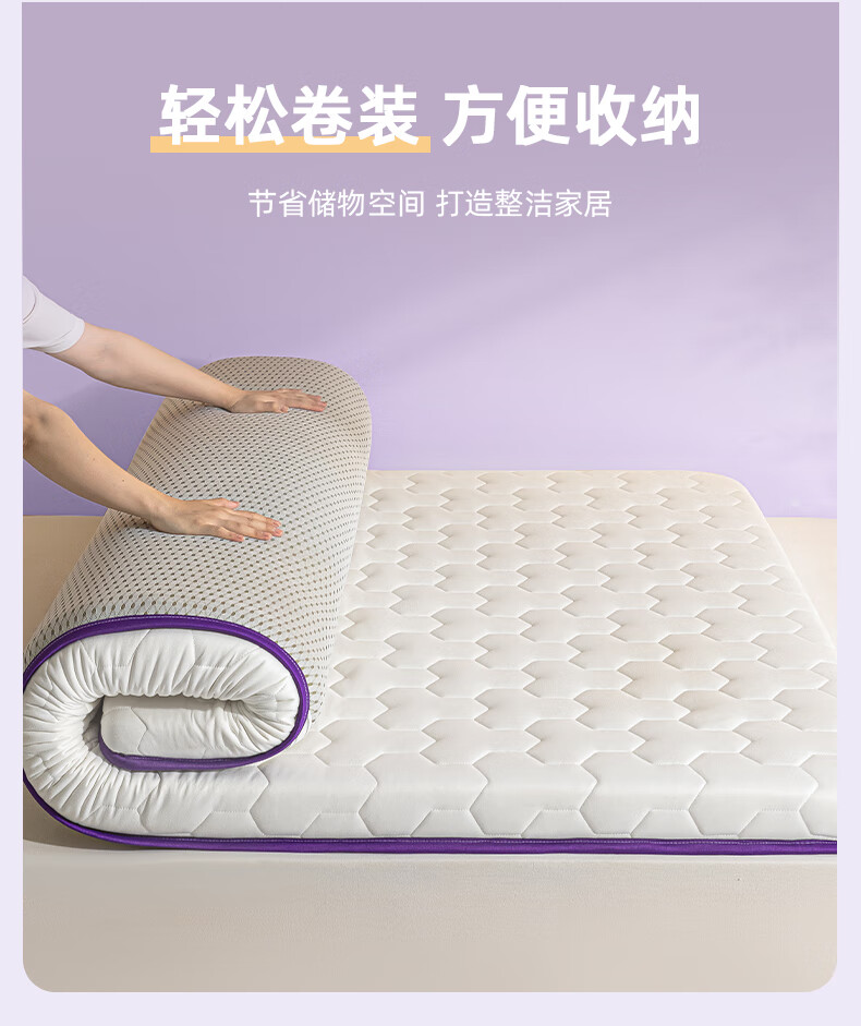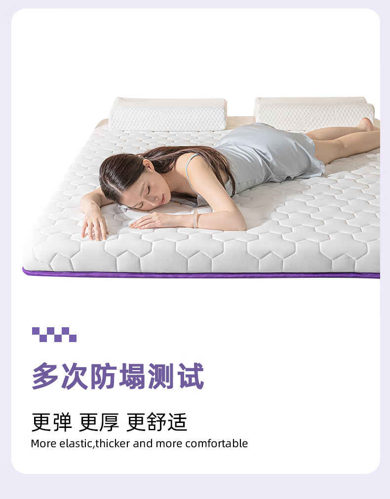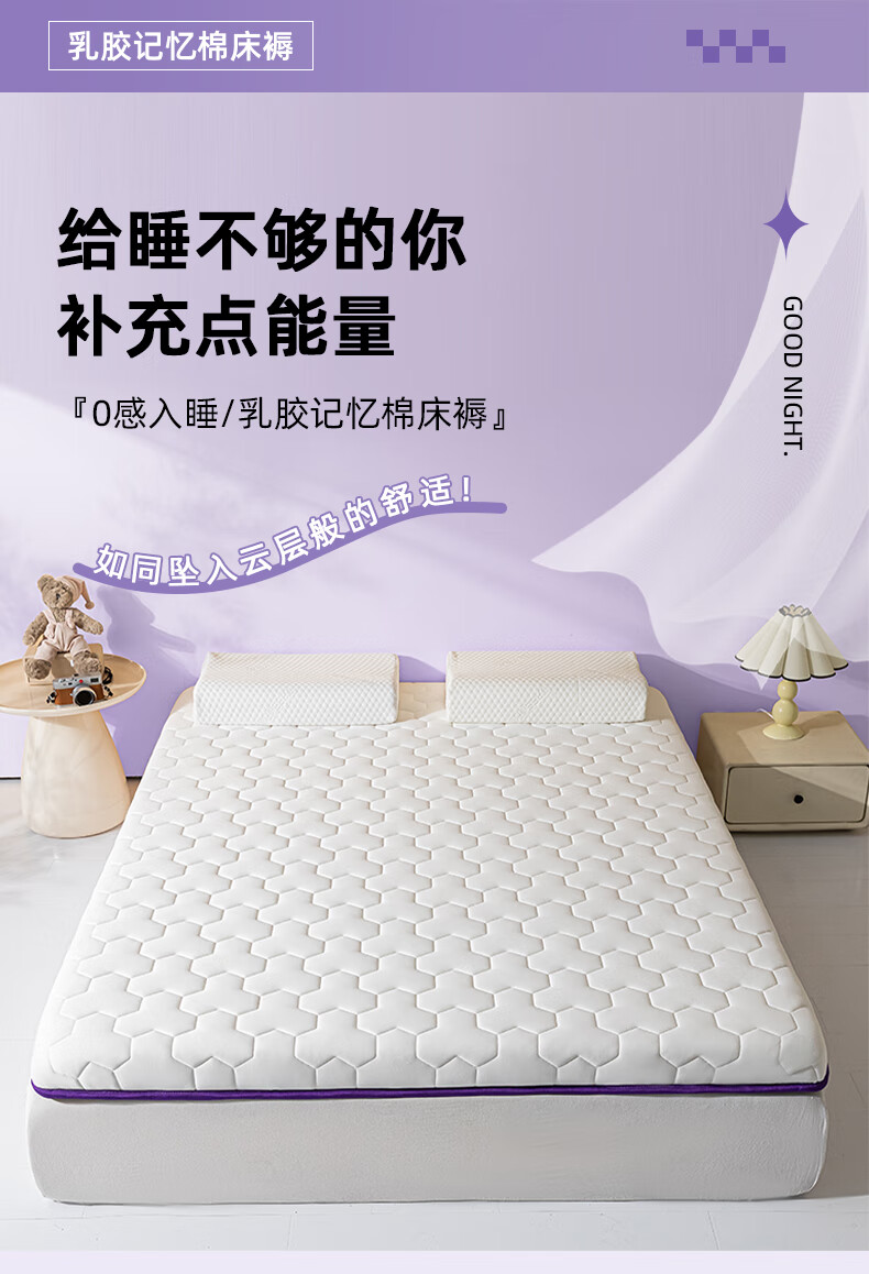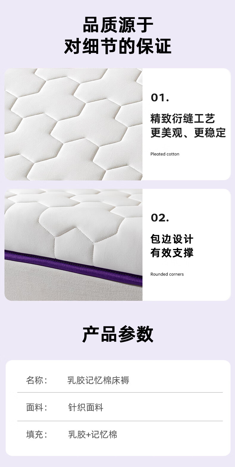 猫人(MiiOW)乳胶记忆棉床垫遮盖物1.5米x2米褥子家用床褥垫1.8米x2米宿舍软垫 三菱格紫-厚约9cm【天然乳胶+记忆棉填充】 150*190cm-多层设计/久睡不易塌