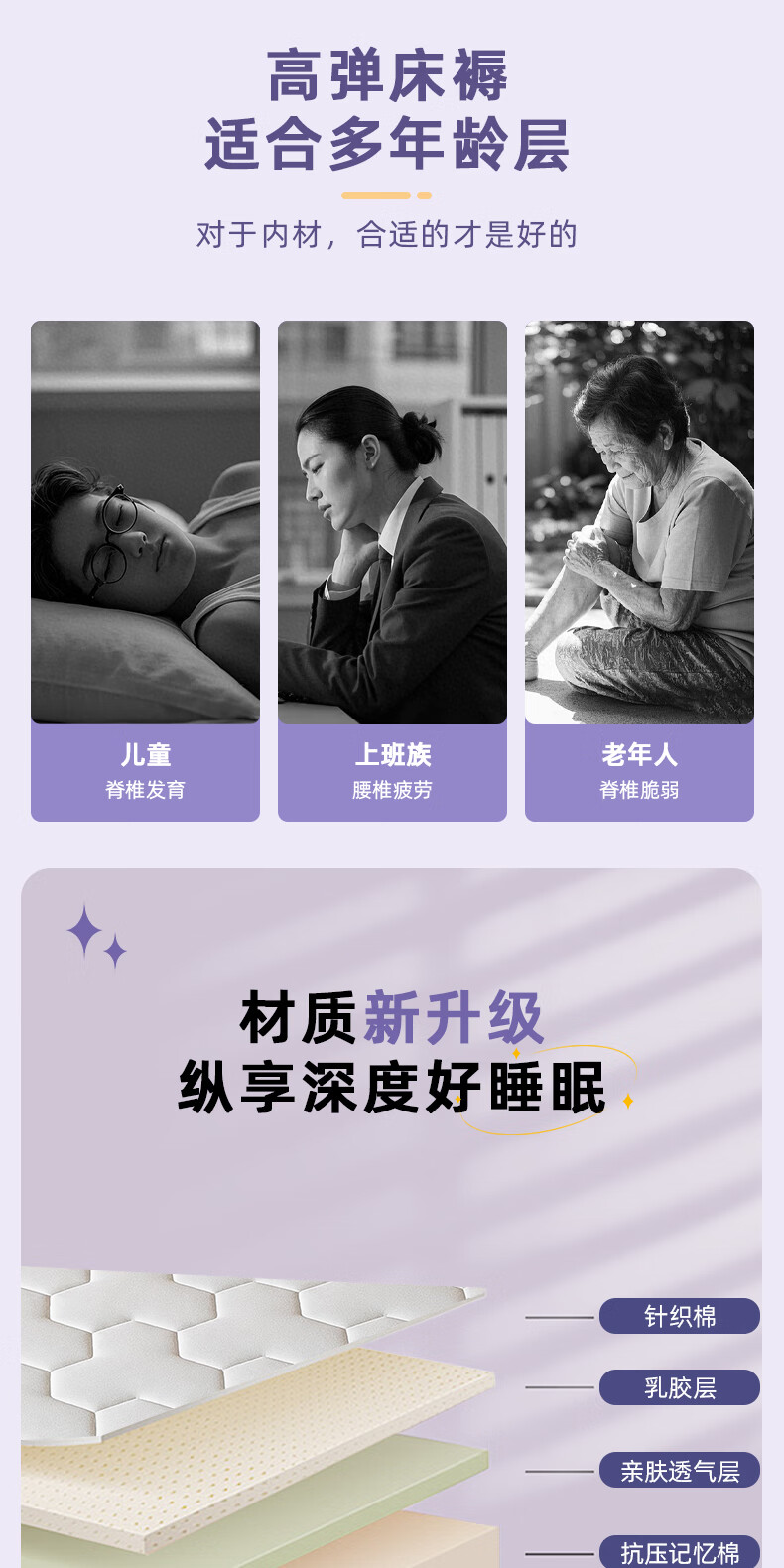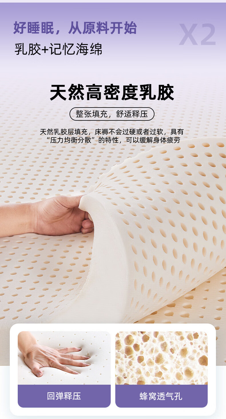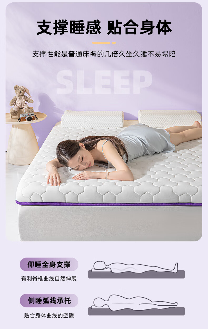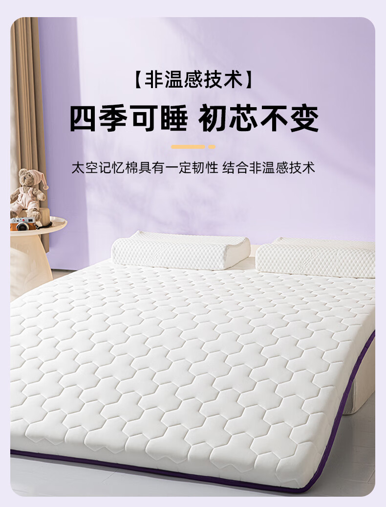 猫人(MiiOW)乳胶记忆棉床垫遮盖物1.5米x2米褥子家用床褥垫1.8米x2米宿舍软垫 三菱格紫-厚约9cm【天然乳胶+记忆棉填充】 150*190cm-多层设计/久睡不易塌