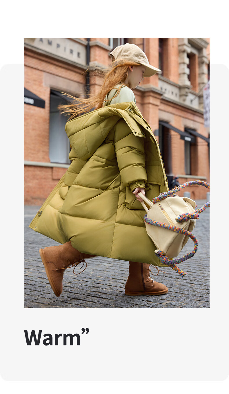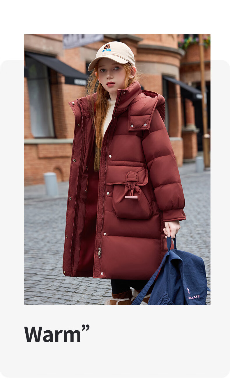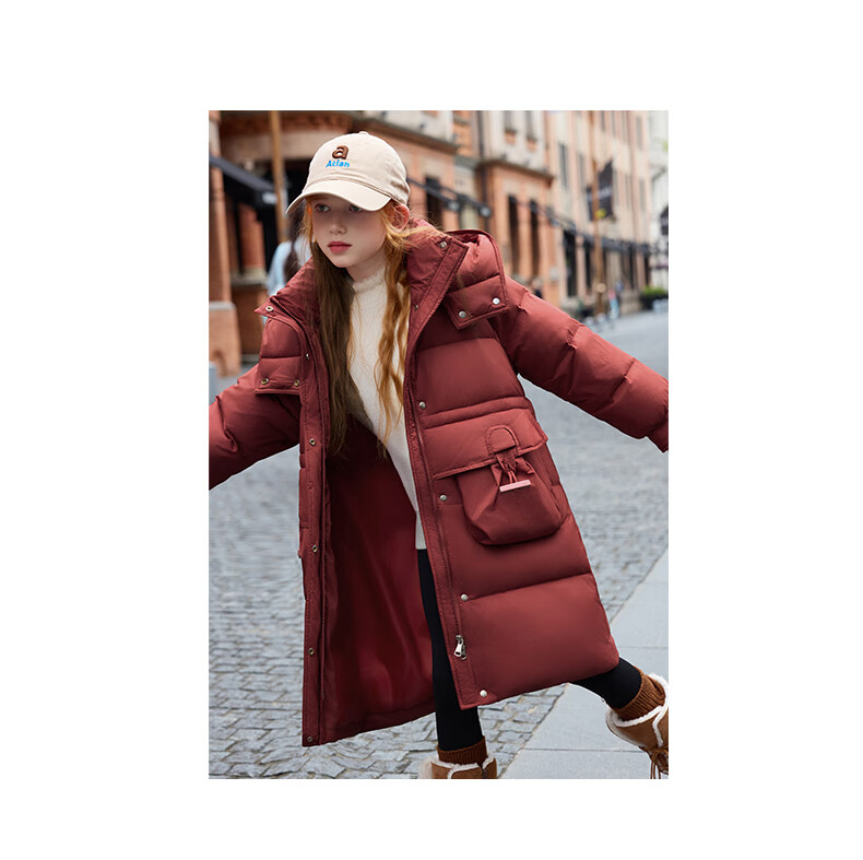 ABC KAIA儿童长款羽绒服2025新款男童女童过膝加厚新款冬装中大童宝宝外套 枚红色(女童) 120