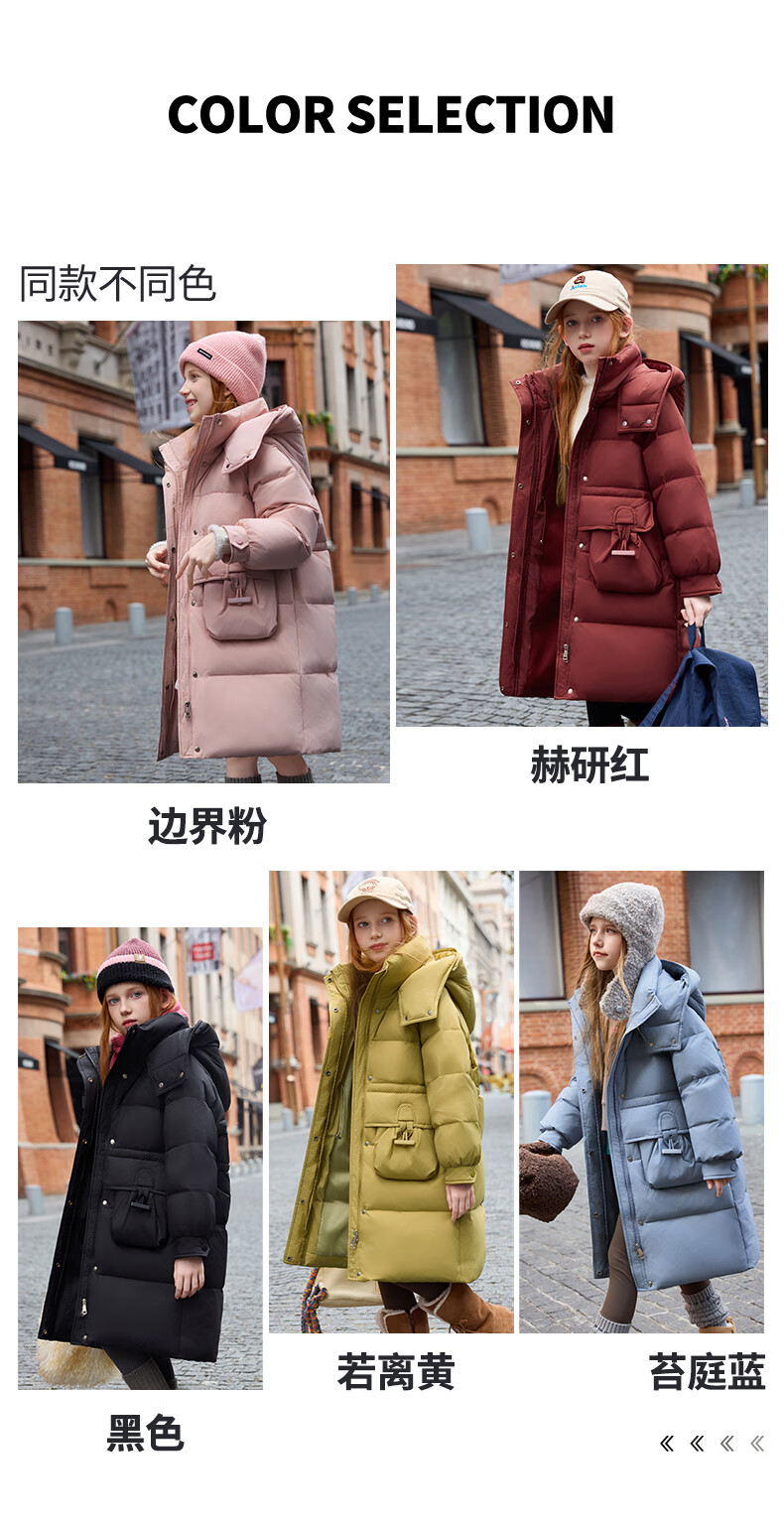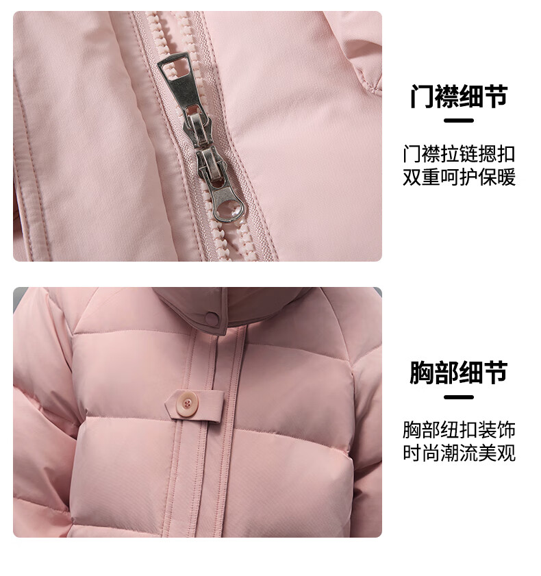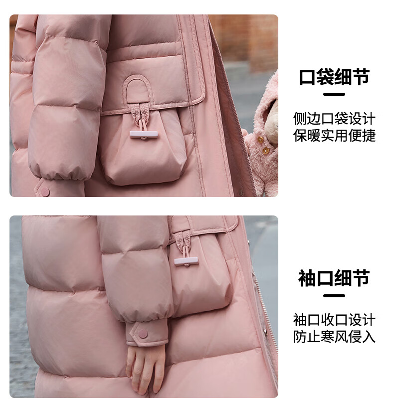 ABC KAIA女童羽绒服中长款2025新款洋气儿童正品品牌加厚外套女孩大童冬装 粉色(带毛领) 120