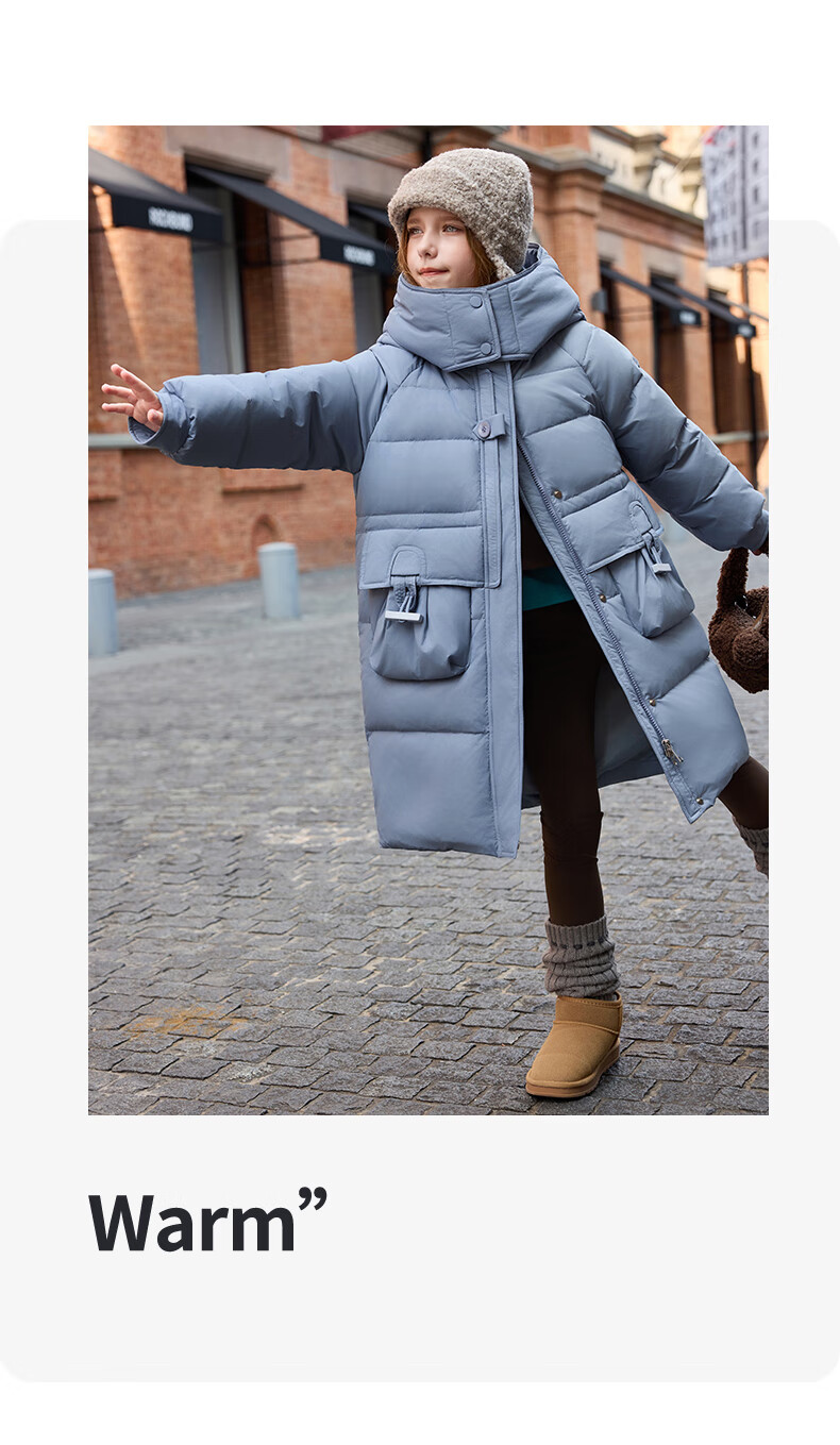 ABC KAIA儿童长款羽绒服女童2025新款中大童过膝加厚韩版洋气童装冬季外套 蓝色 120