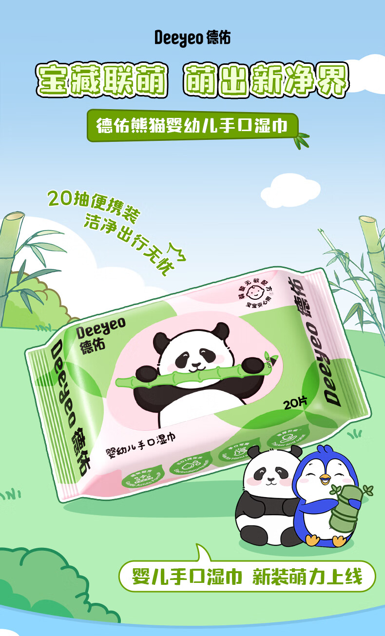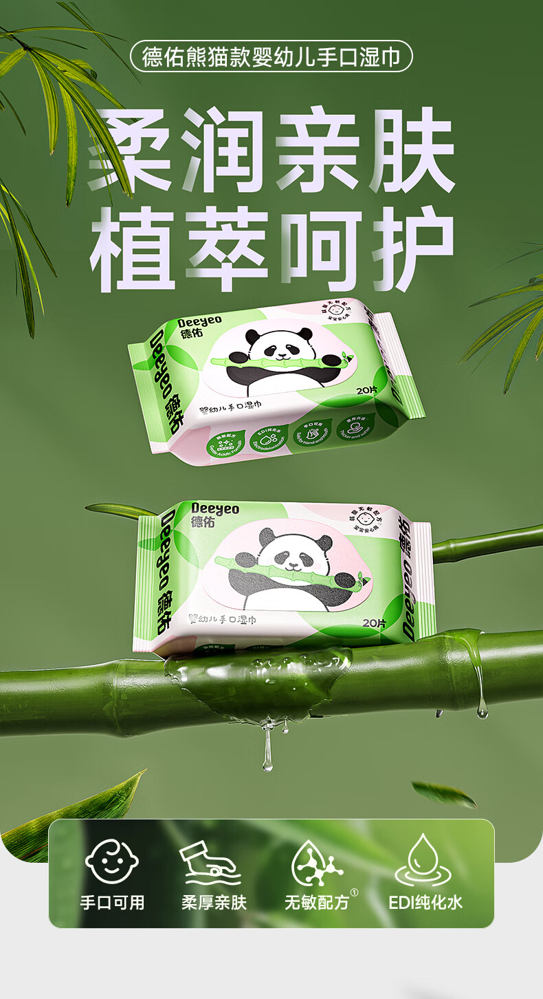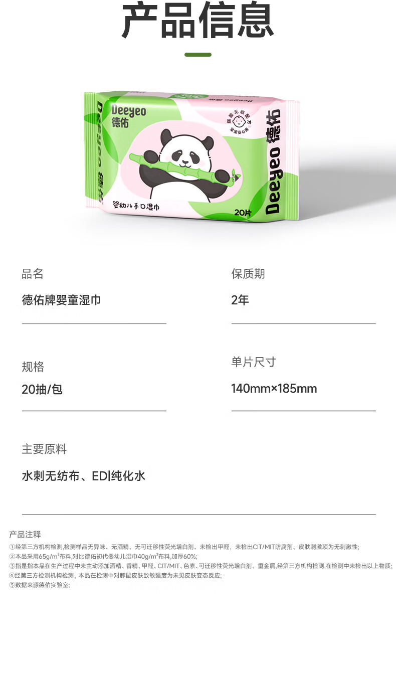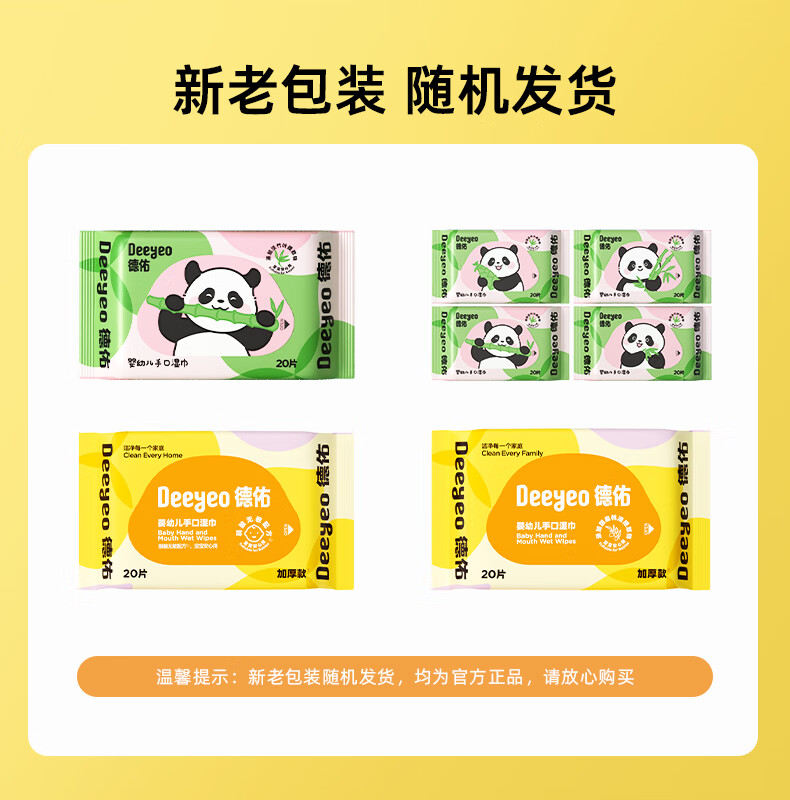 德佑婴儿手口湿巾加厚宝宝湿巾湿纸巾 擦手口屁屁 便携装20抽*16包