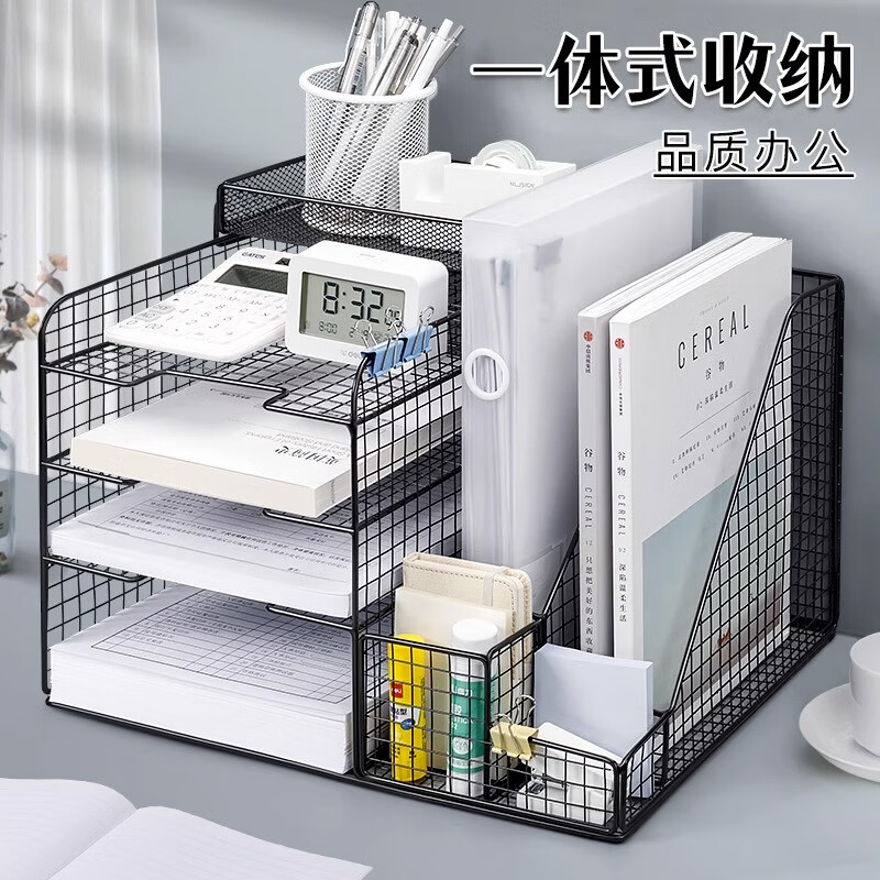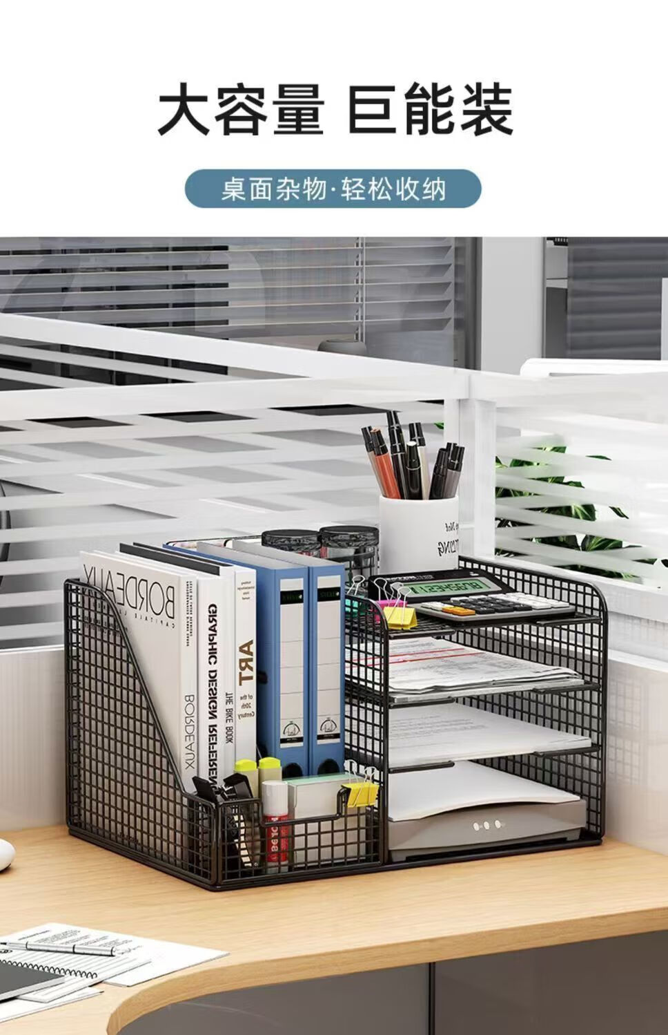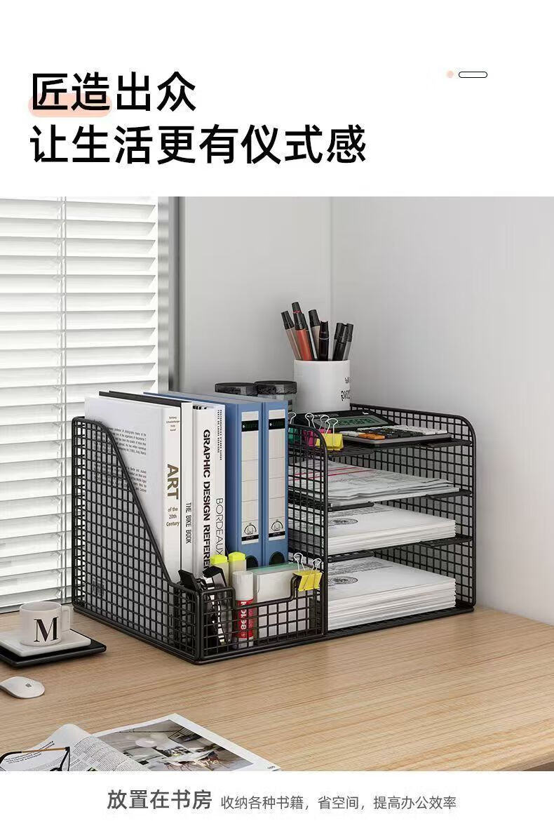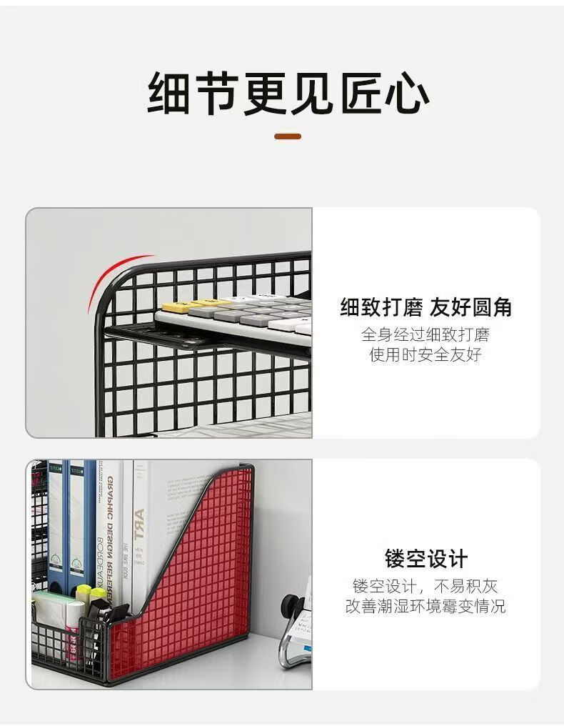 四季年华办公桌面置物架文件收纳盒办公用品文件架桌面收纳盒书架多层大容量金属文件框资料档案整理架 雅典黑-置物架在左-一体式加厚 无规格