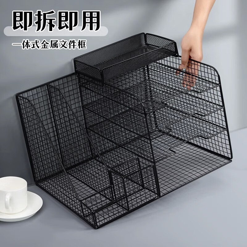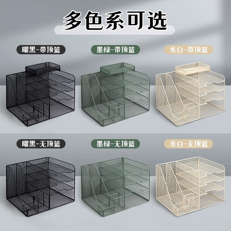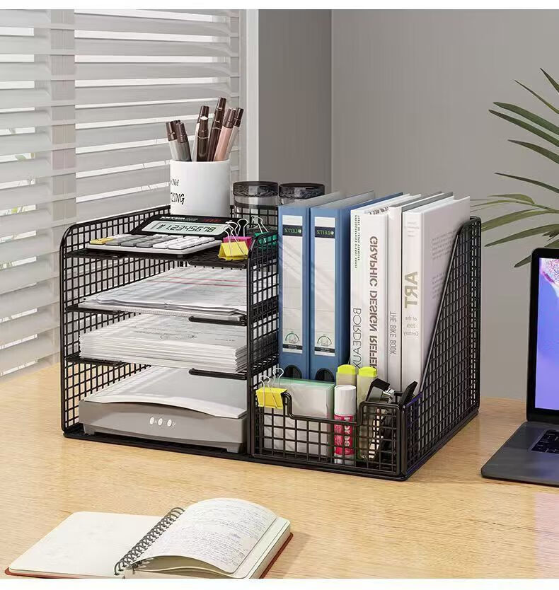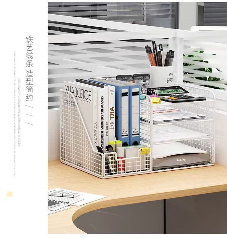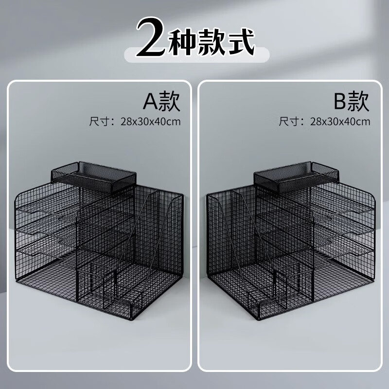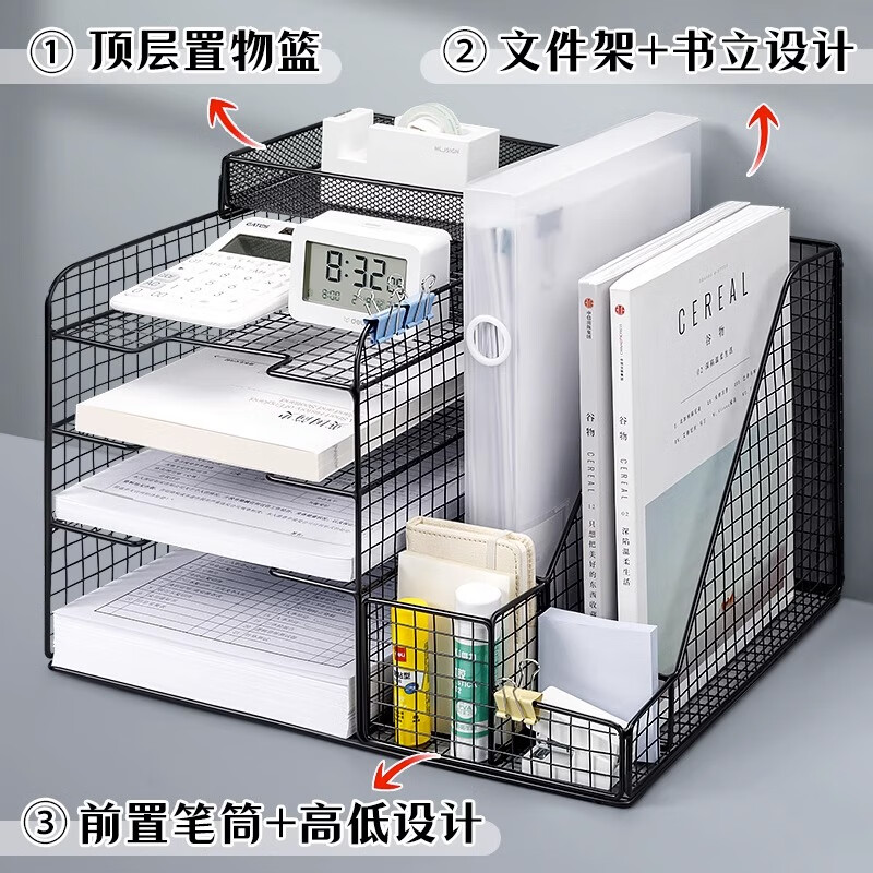 四季年华办公桌面置物架文件收纳盒办公用品文件架桌面收纳盒书架多层大容量金属文件框资料档案整理架 雅典黑-置物架在左-一体式加厚 无规格