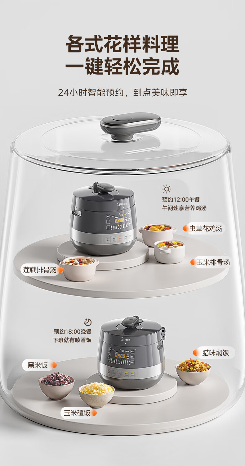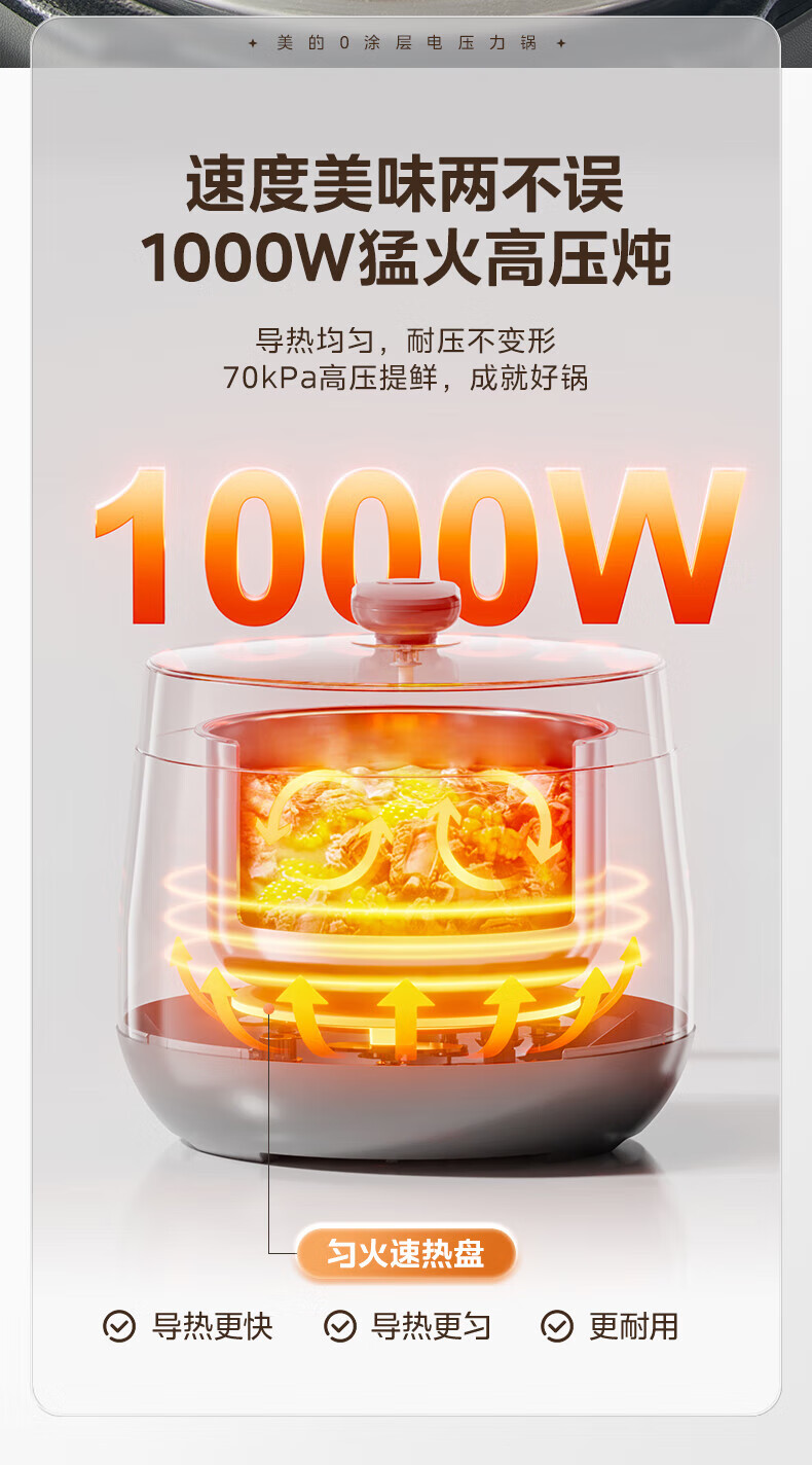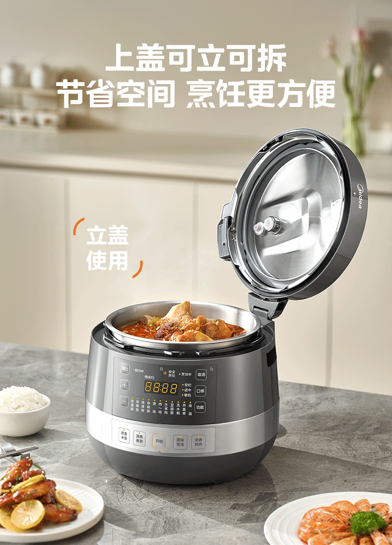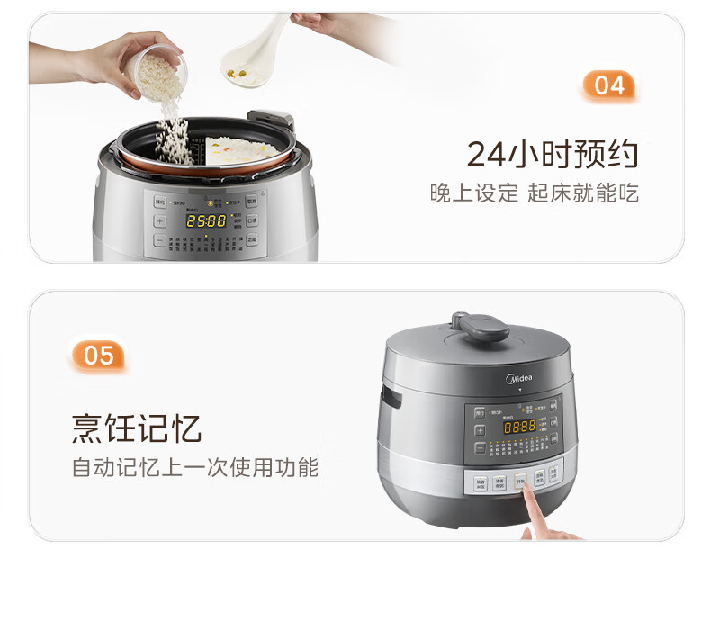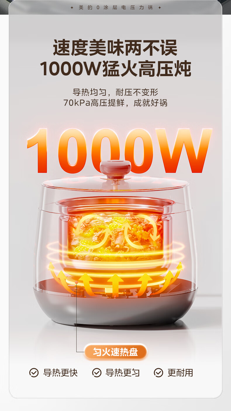美的(Midea)电压力锅0涂层系列304不锈钢内胆电高压锅双胆 电饭煲稳定控压技术高压电饭锅 【精钢厚釜】0涂层 健康煮 5L