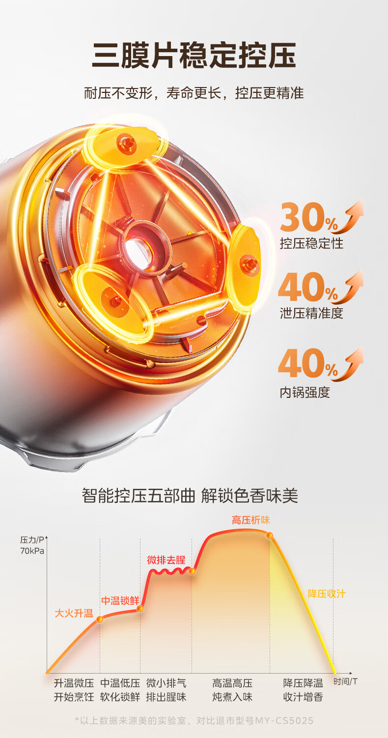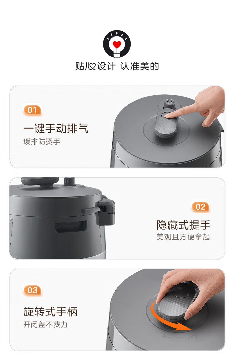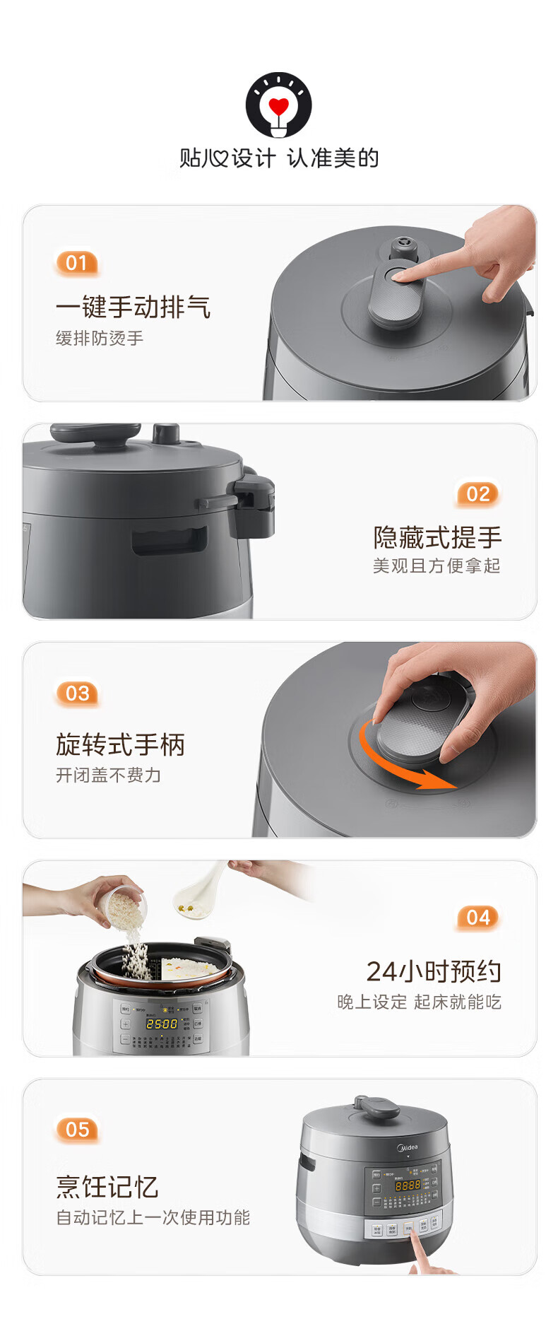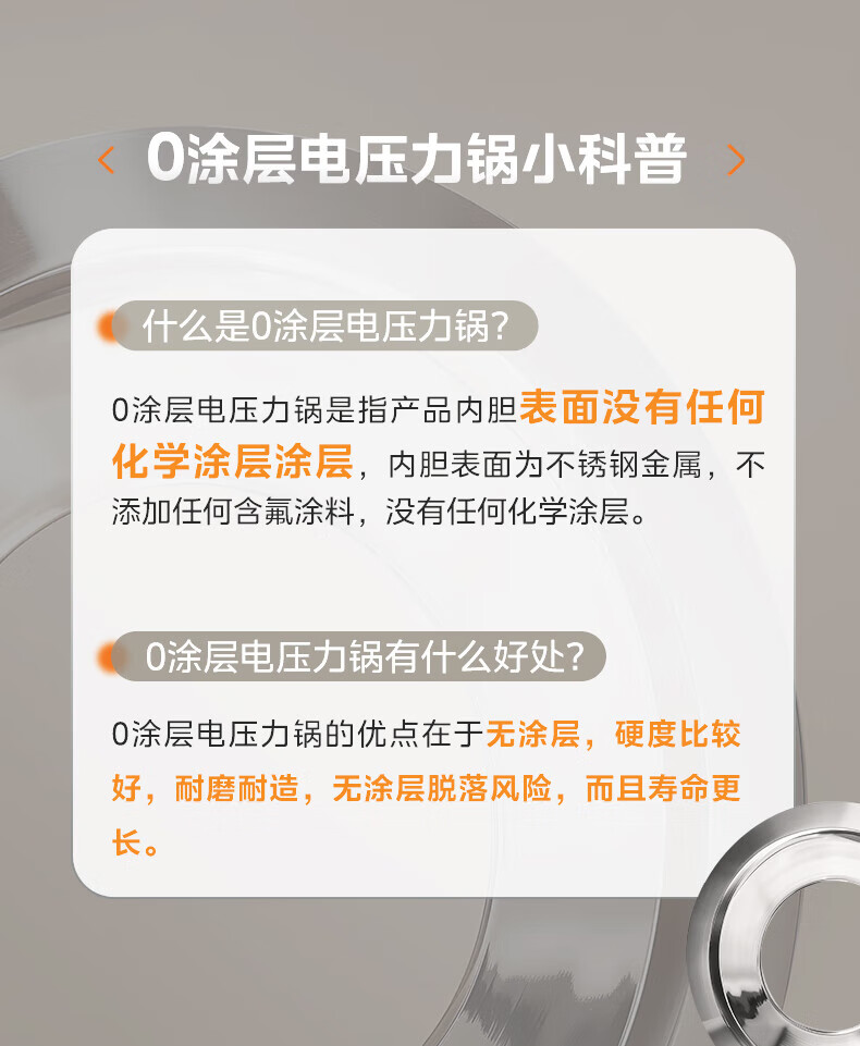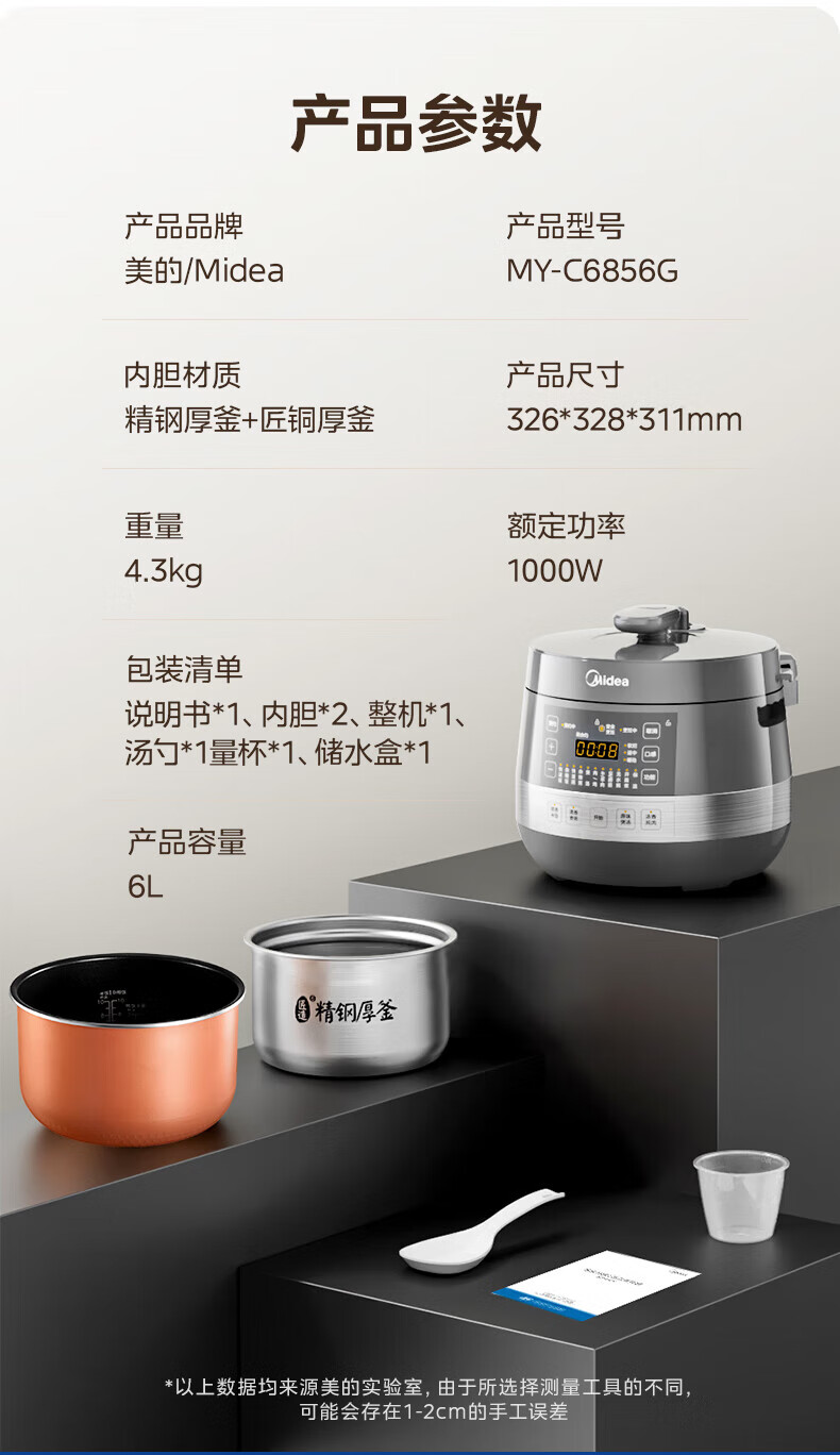 美的(Midea)电压力锅0涂层系列304不锈钢内胆电高压锅双胆 电饭煲稳定控压技术高压电饭锅 【精钢厚釜】0涂层 健康煮 5L