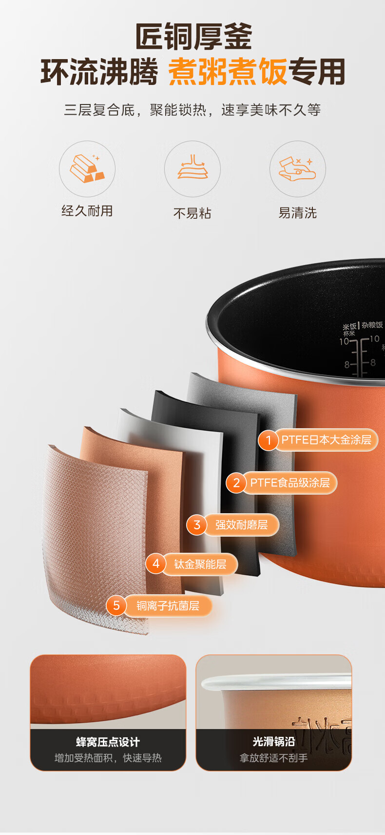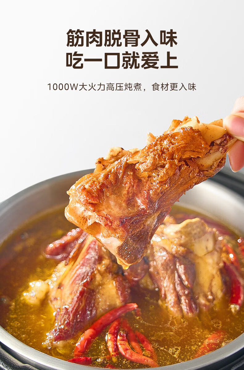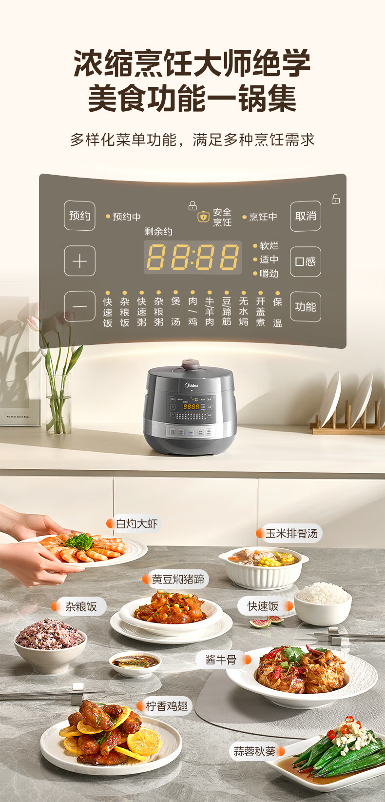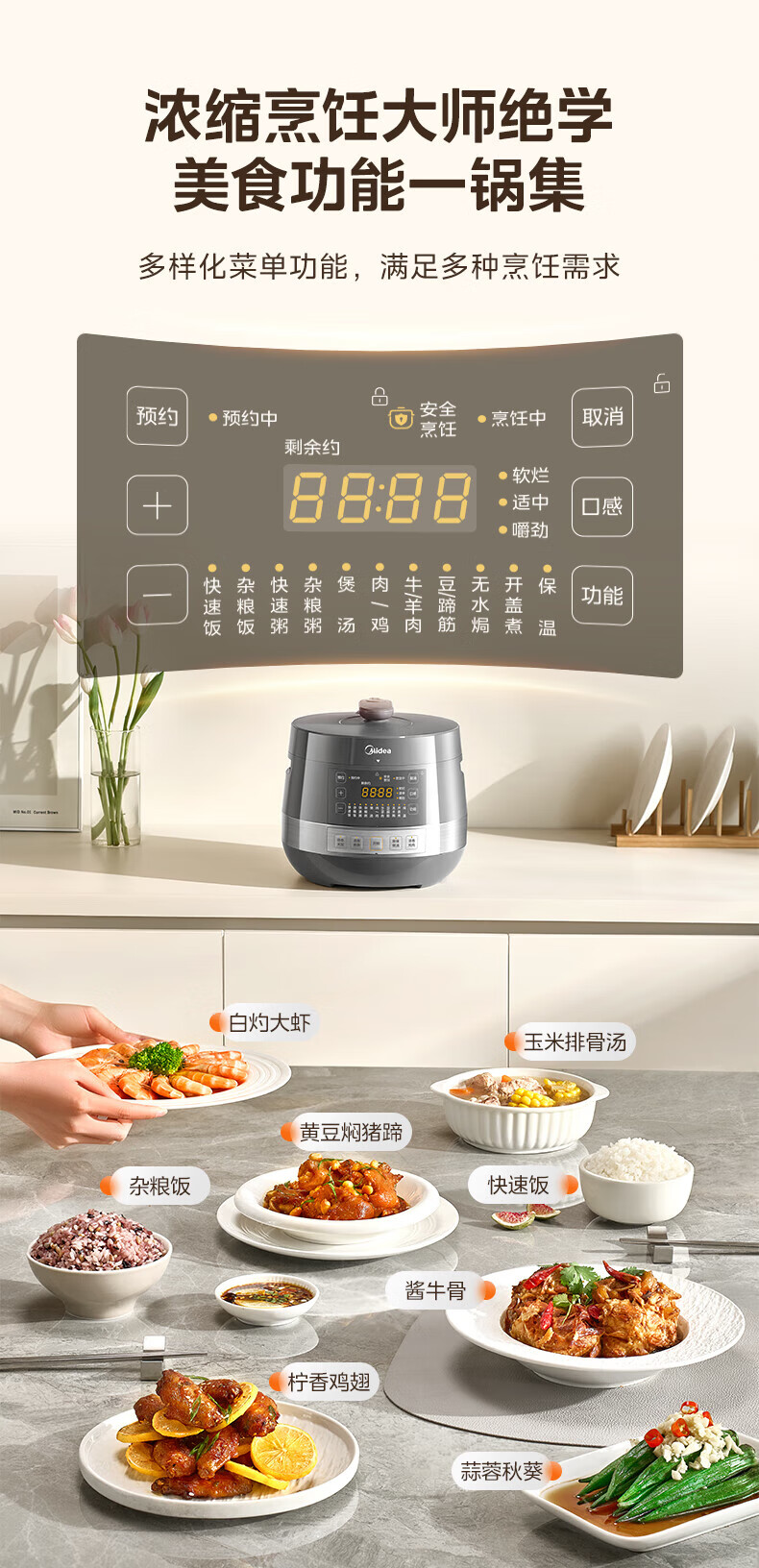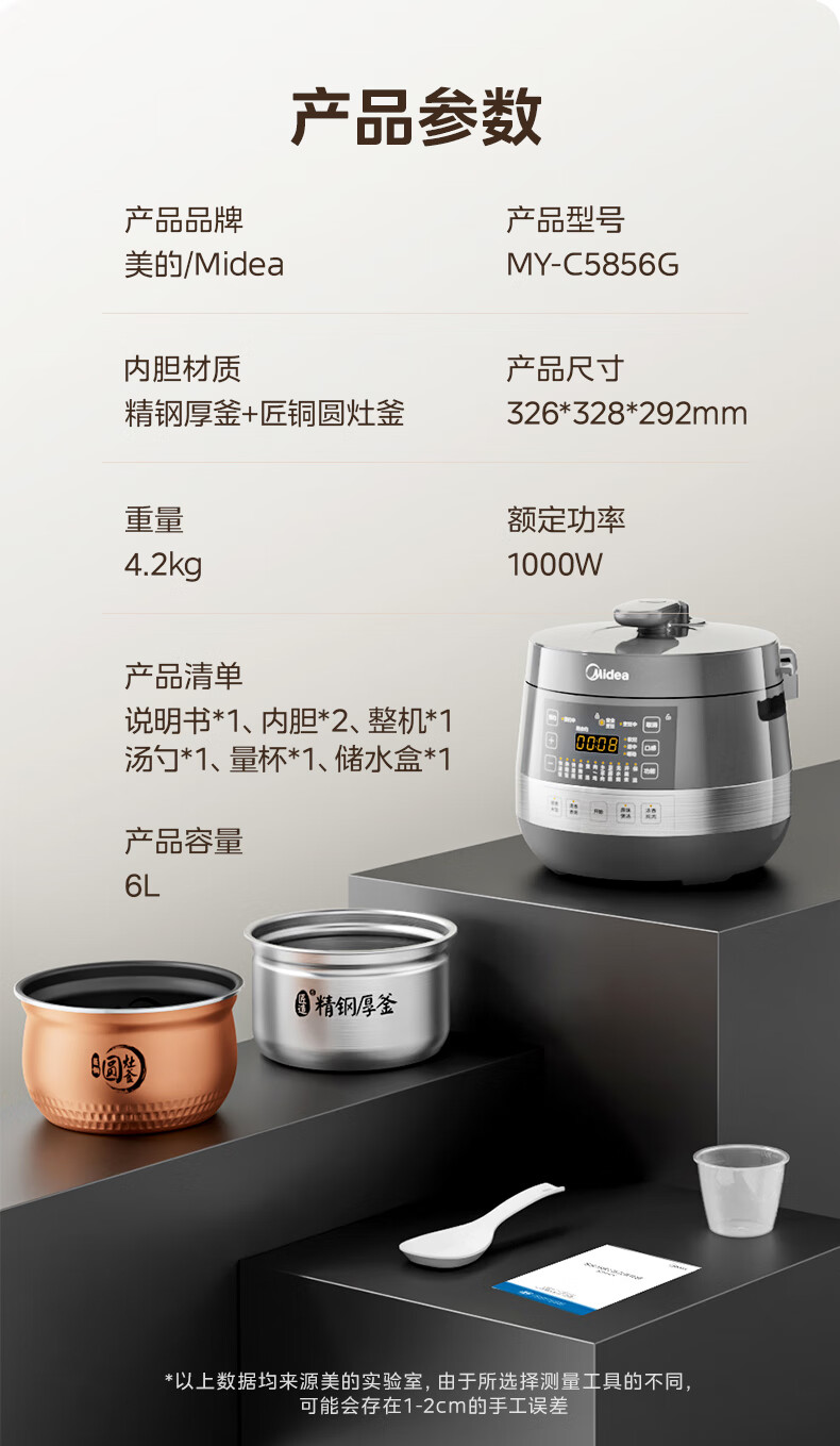 美的(Midea)电压力锅0涂层系列304不锈钢内胆电高压锅双胆 电饭煲稳定控压技术高压电饭锅 【精钢厚釜】0涂层 健康煮 5L