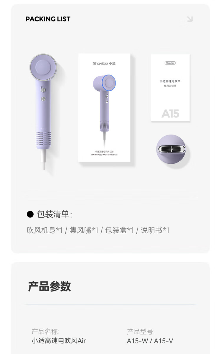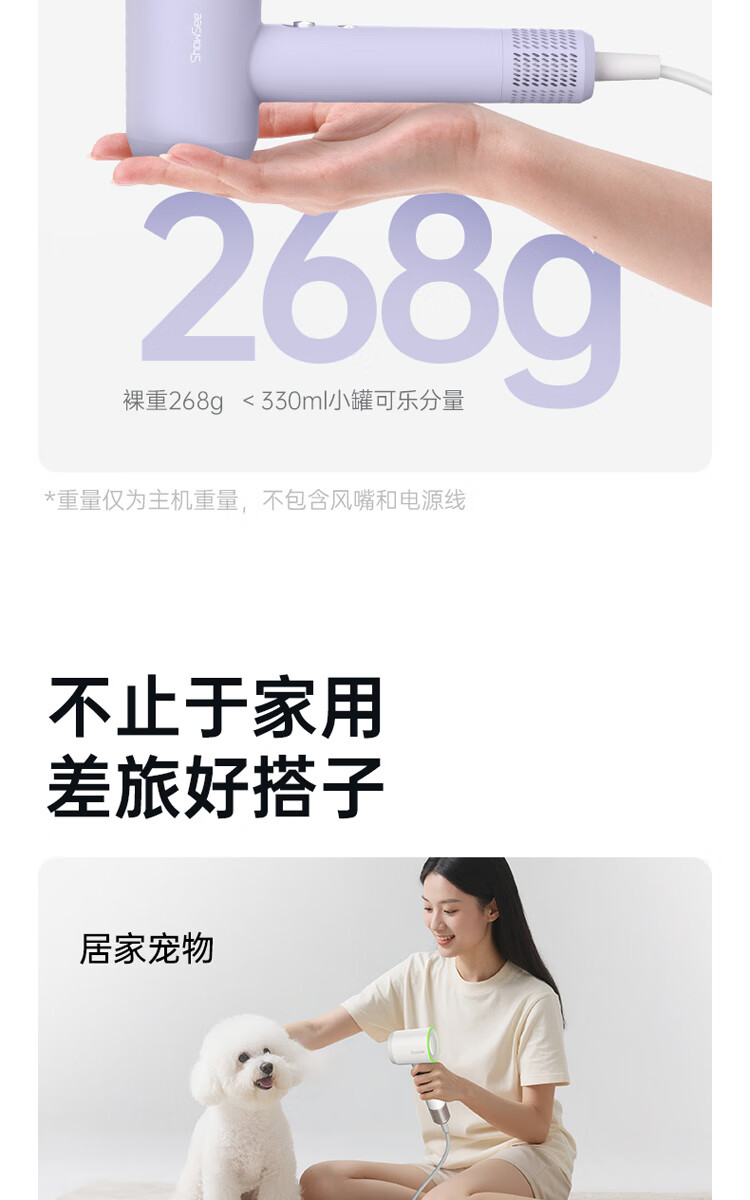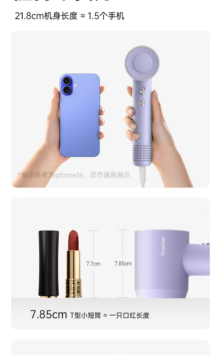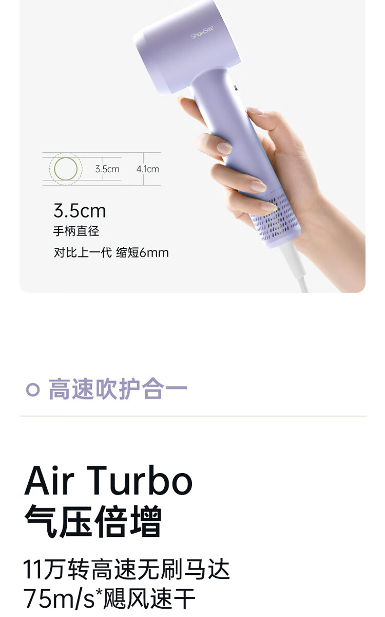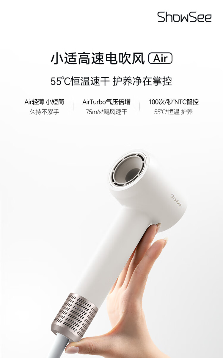小适(showsee)【新品】高速家用电吹风机筒 6亿级负离子恒温速干不伤发小巧轻薄出差便携送女友礼物A15-W温莎白