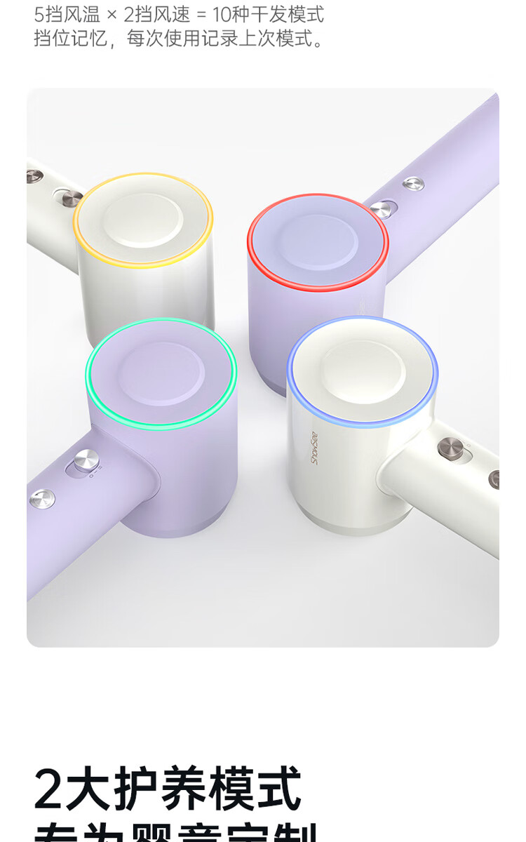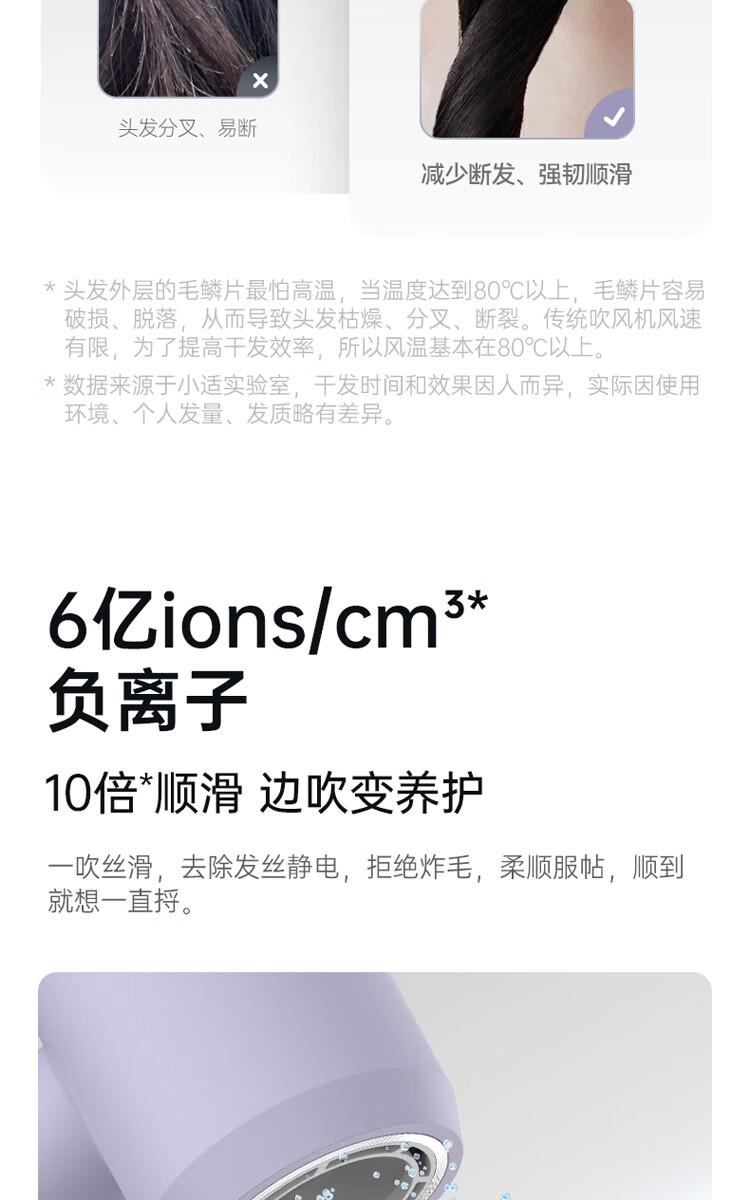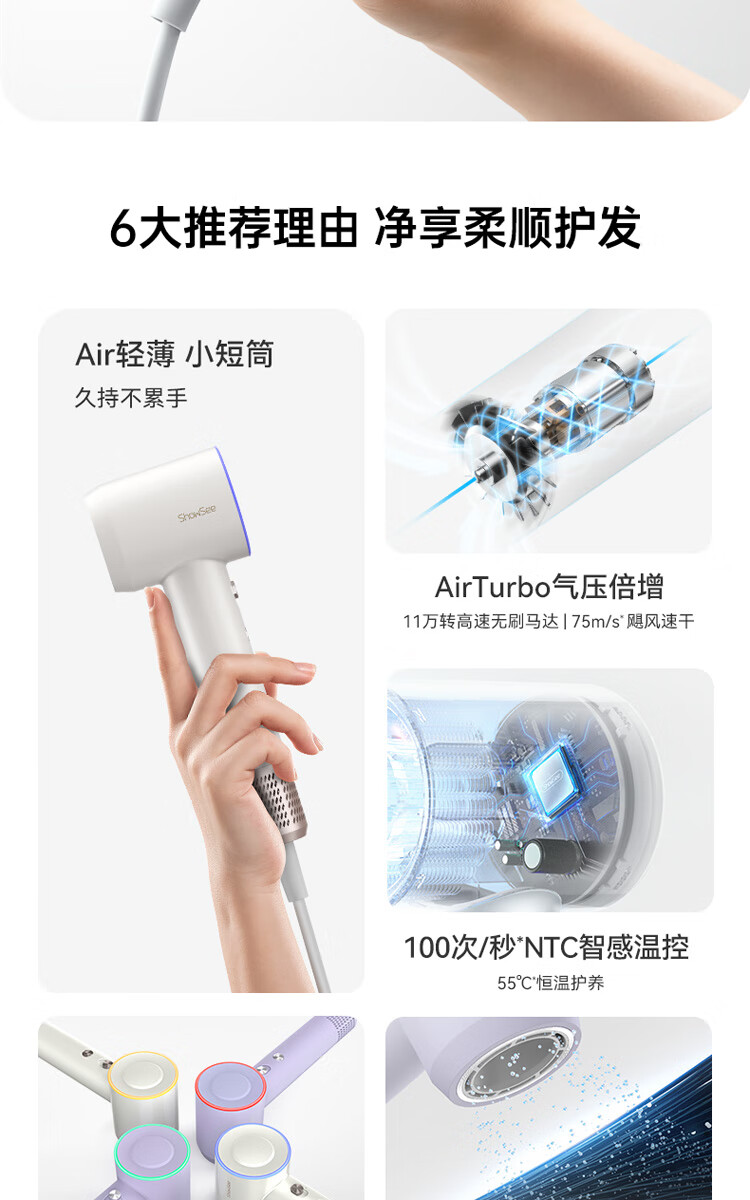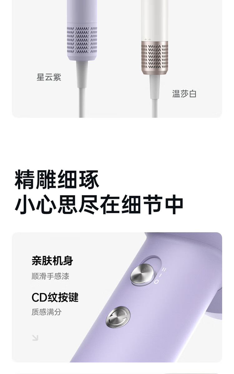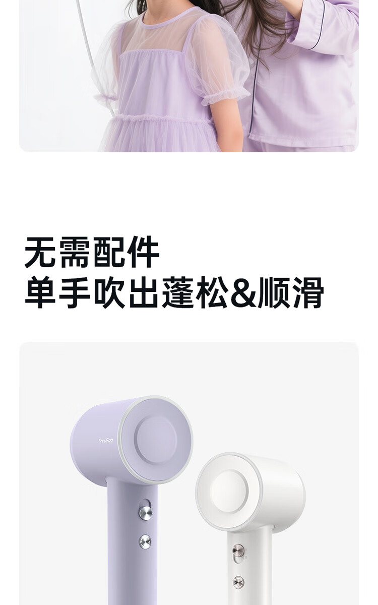 小适(showsee)【新品】高速家用电吹风机筒 6亿级负离子恒温速干不伤发小巧轻薄出差便携送女友礼物A15-W温莎白