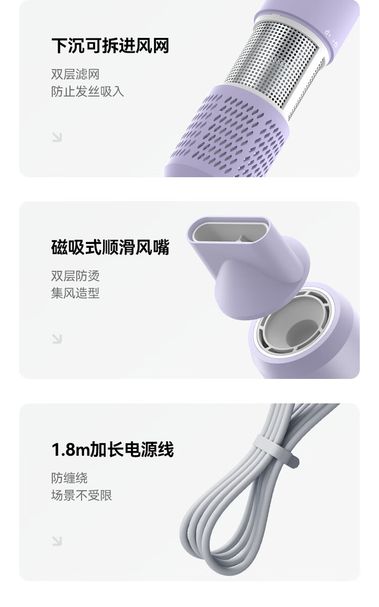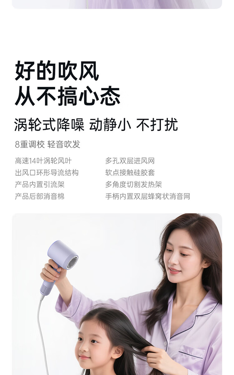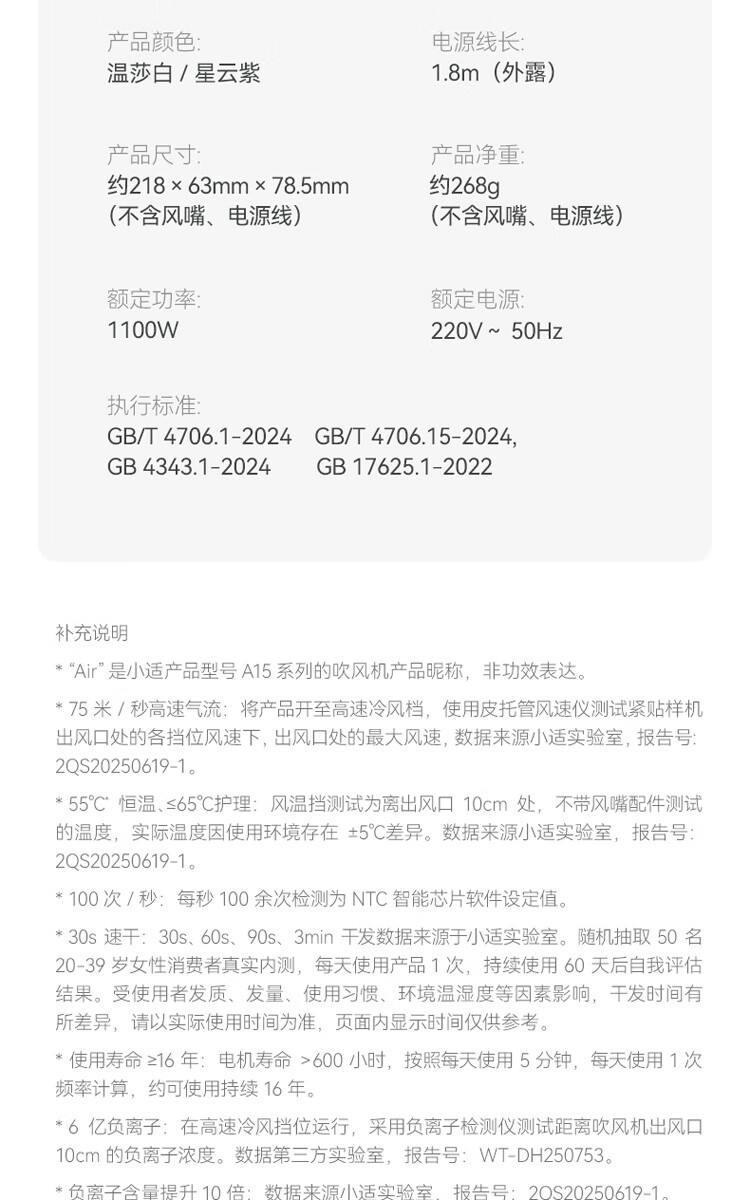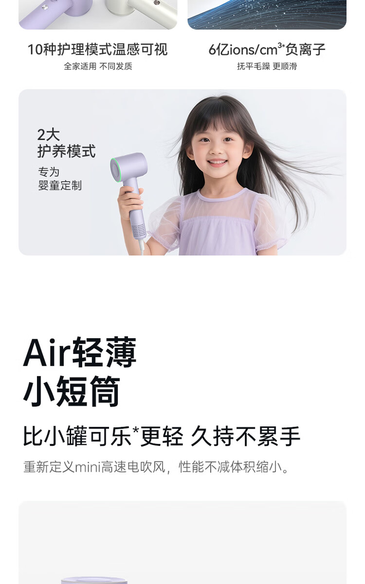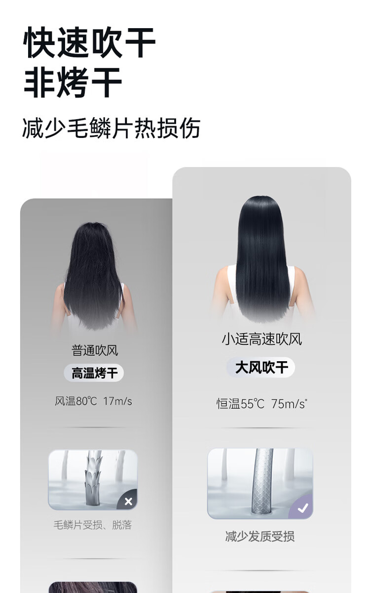 小适(showsee)【新品】高速家用电吹风机筒 6亿级负离子恒温速干不伤发小巧轻薄出差便携送女友礼物A15-W温莎白