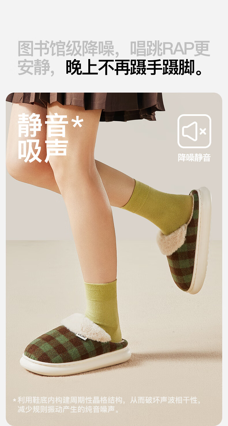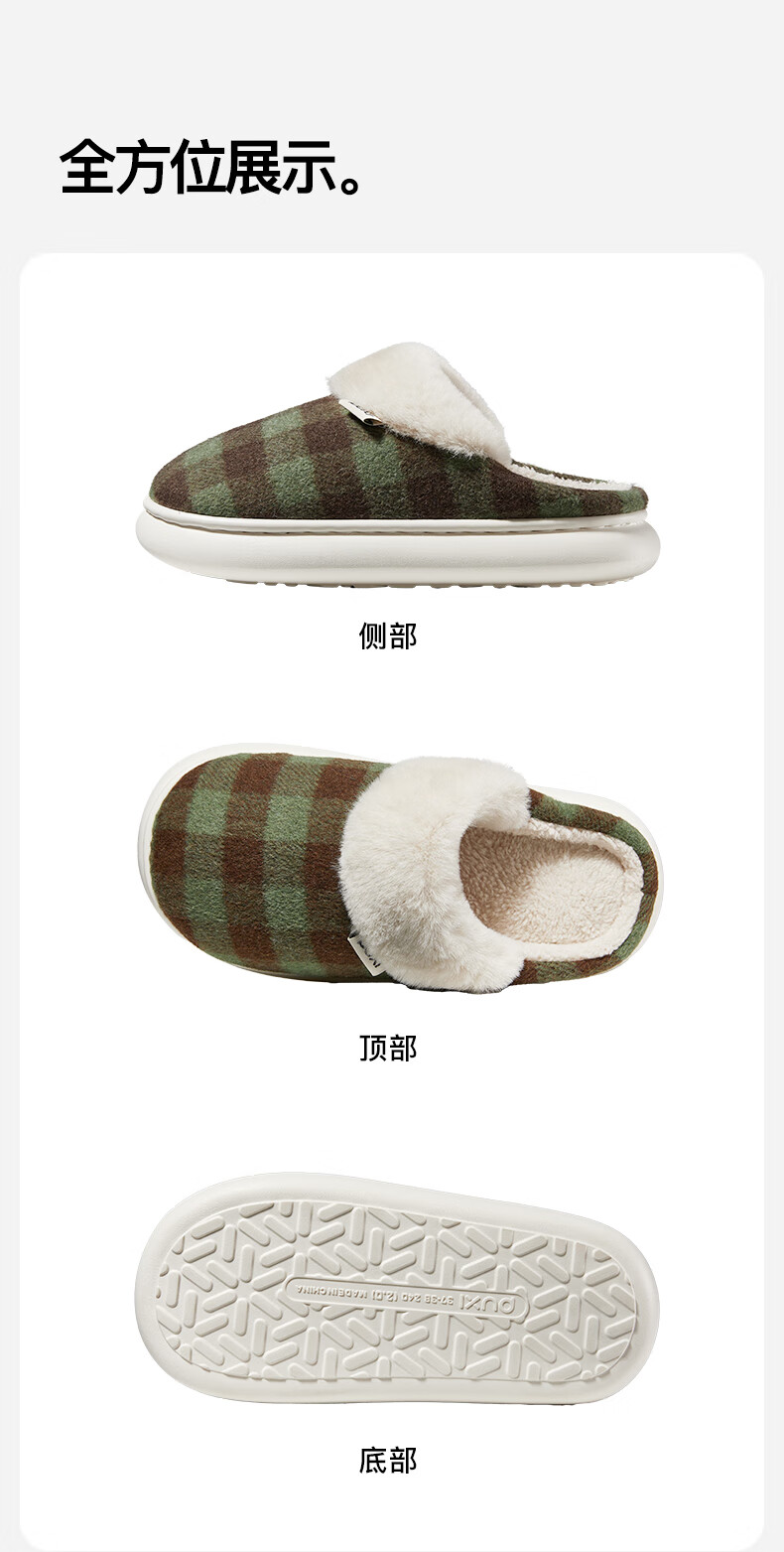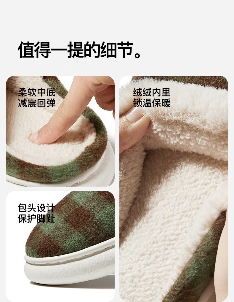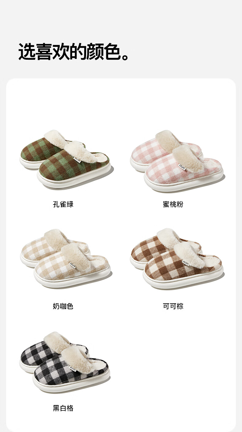 朴西2025冬季新款格子保暖防滑棉拖鞋室内厚底耐磨毛绒棉拖女 可可棕 42-43 【正常码】