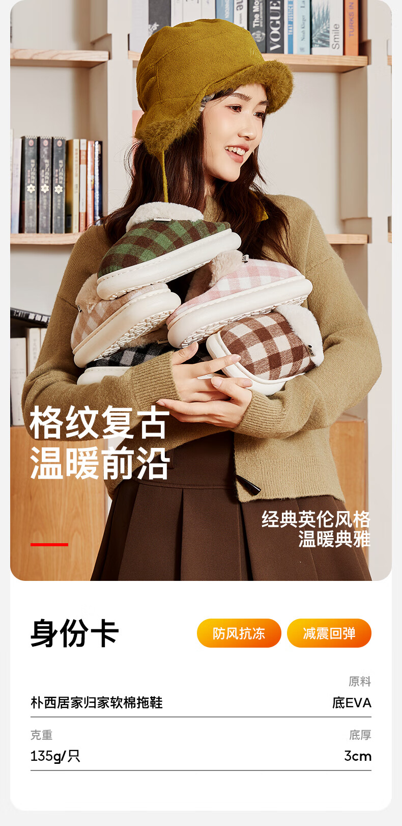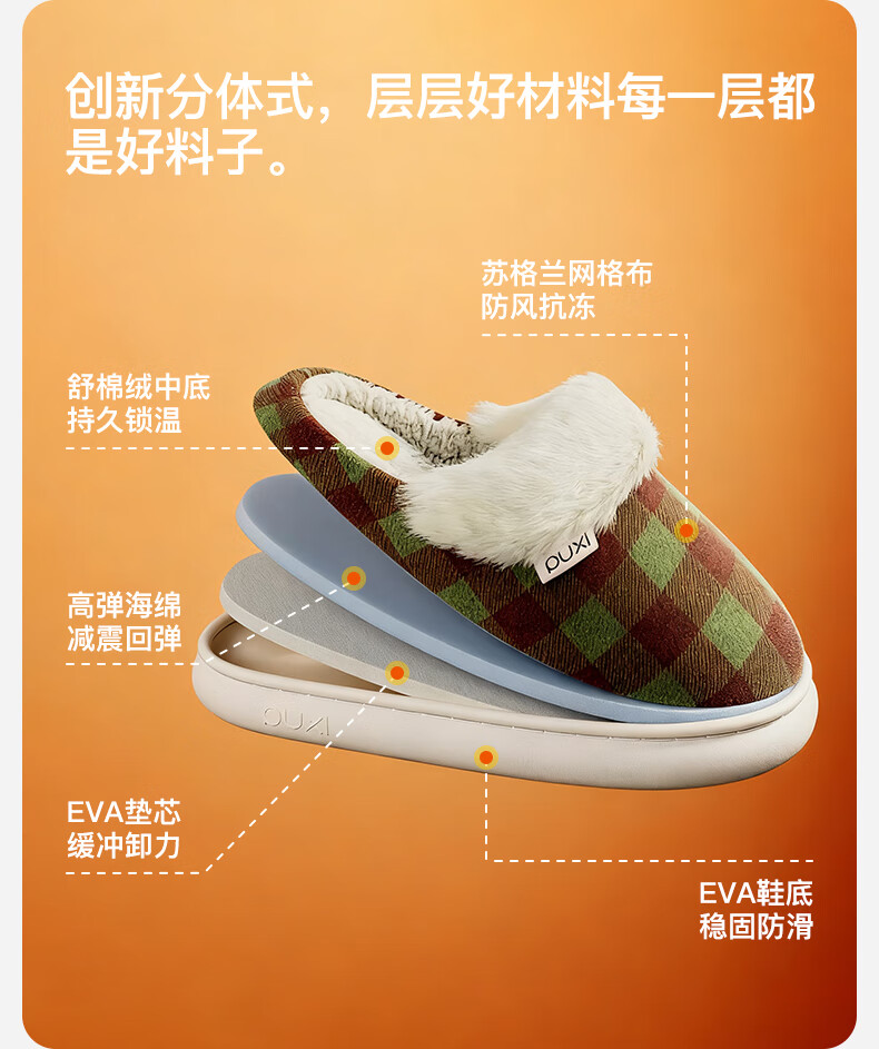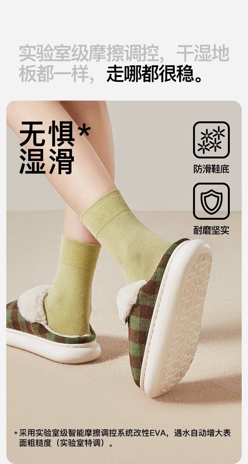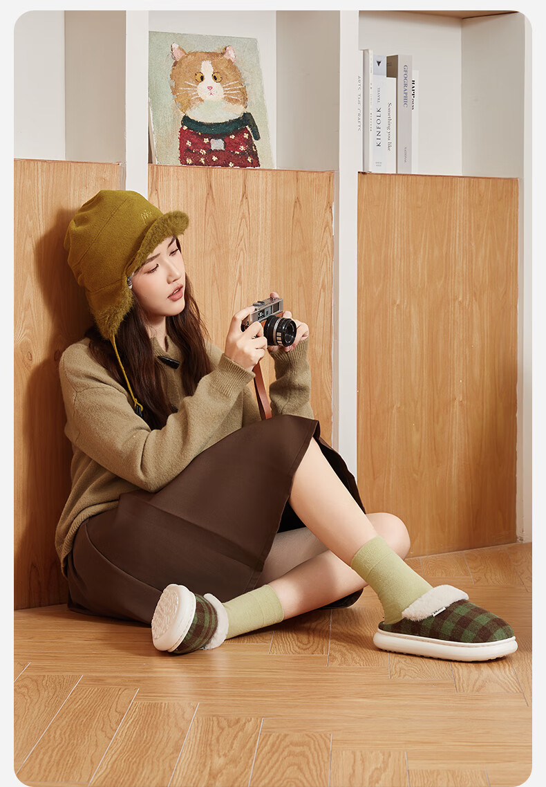 朴西2025冬季新款格子保暖防滑棉拖鞋室内厚底耐磨毛绒棉拖女 可可棕 42-43 【正常码】